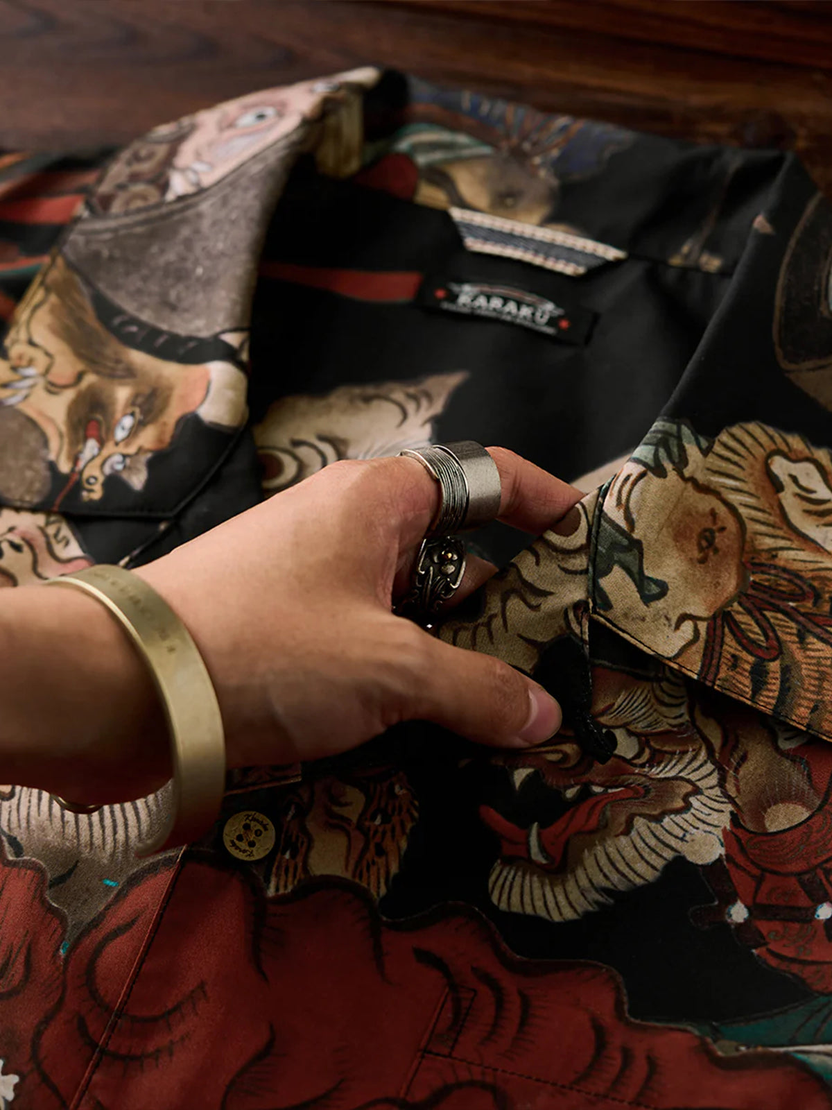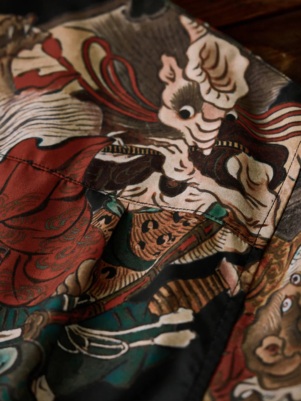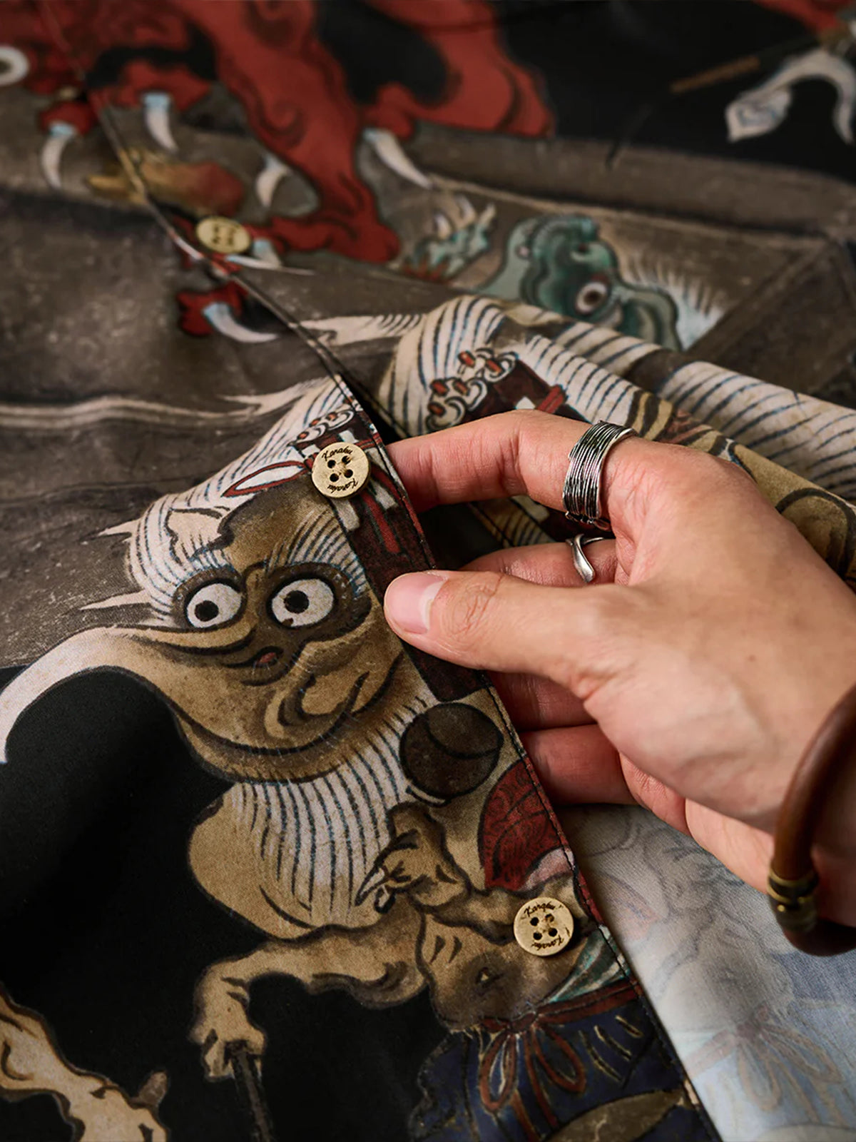 Muromachi Period "Yokai Picture Scroll" Ukiyo-e Pattern Open Collar Shirt