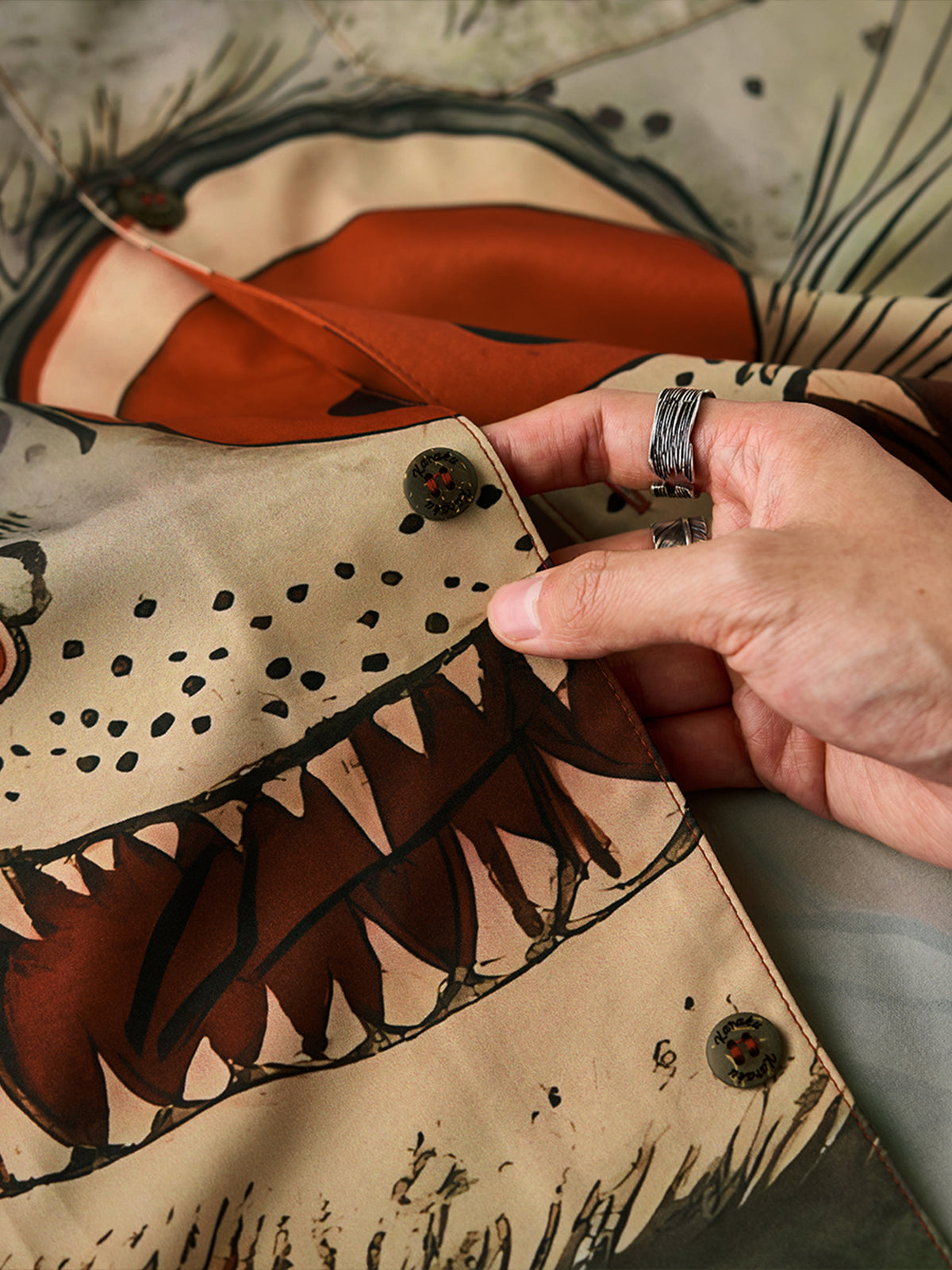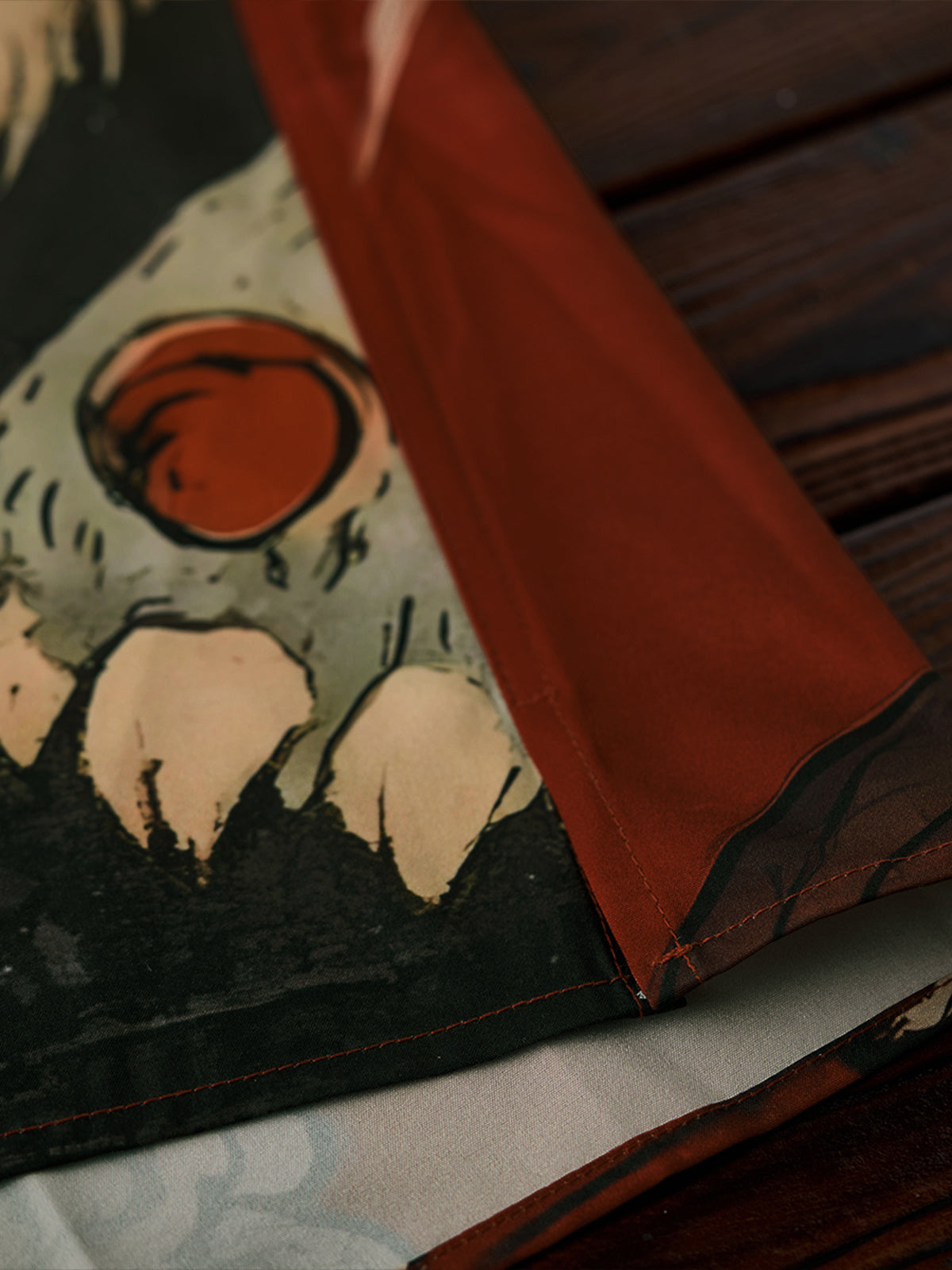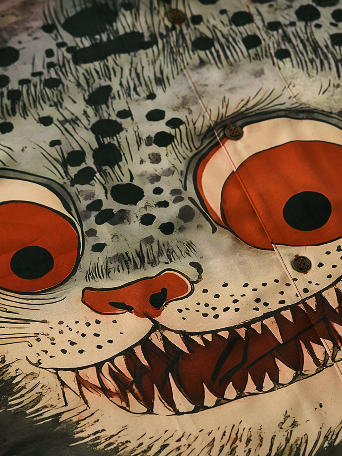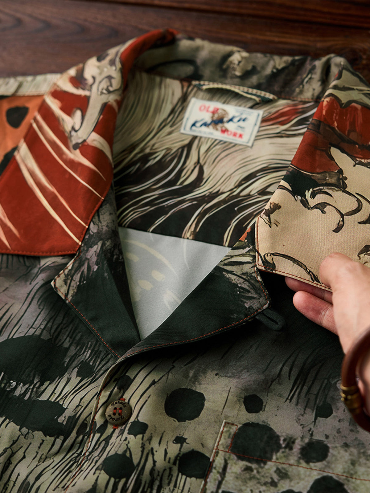 Muromachi Period "Yokai Picture Scroll" Ukiyo-e Pattern Open Collar Shirt
