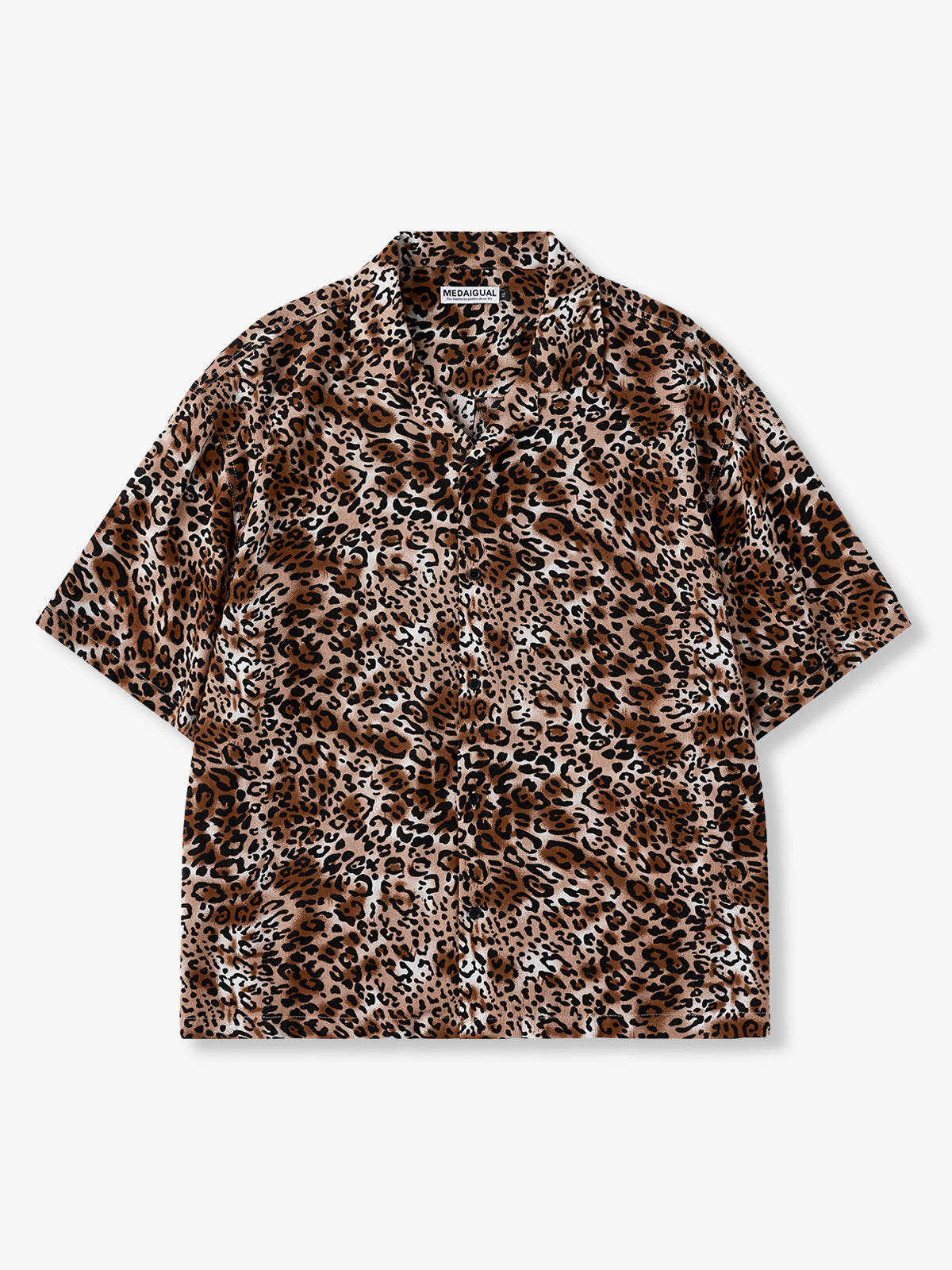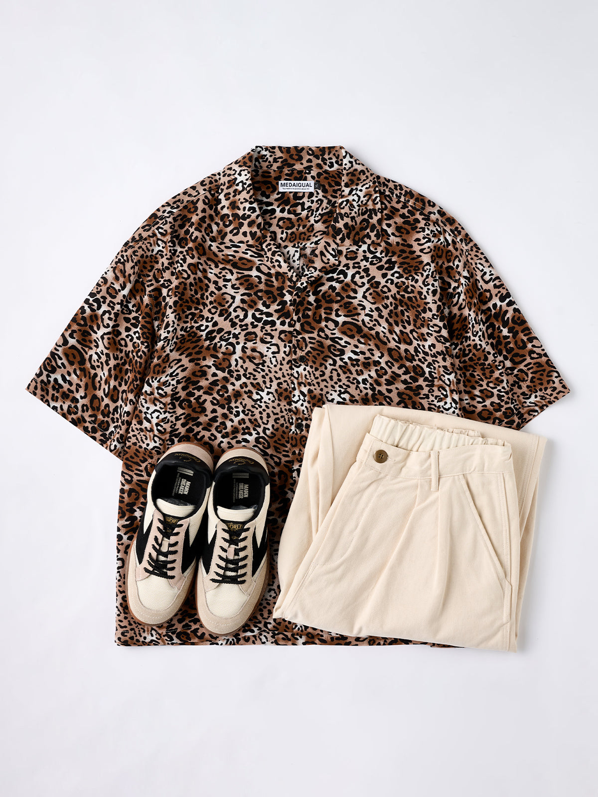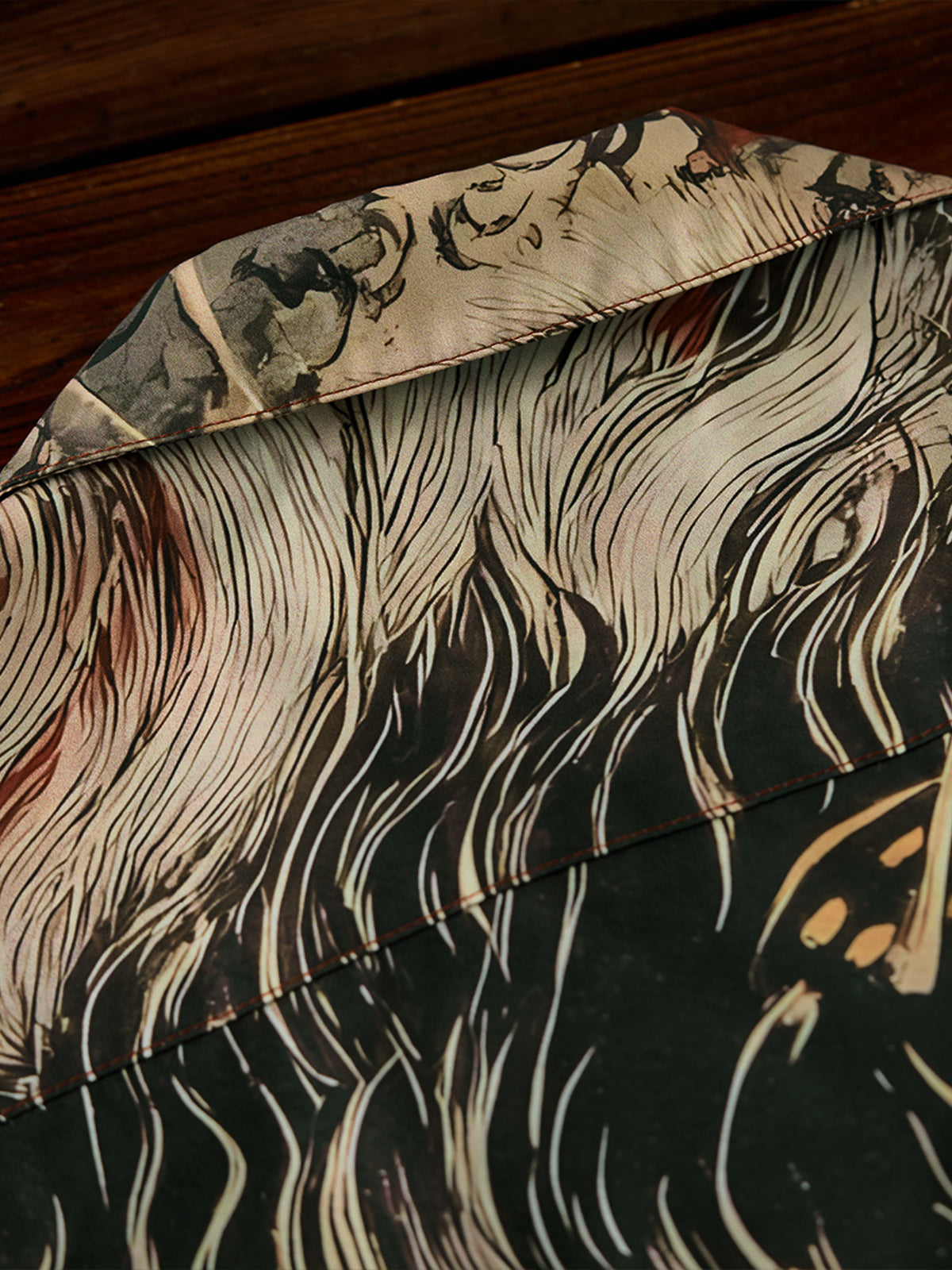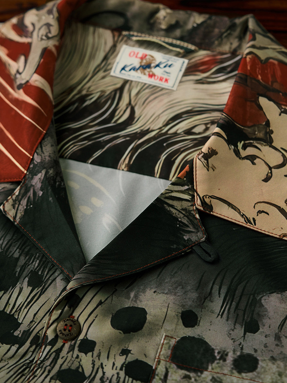 Printed "Yokai Encyclopedia" Ukiyoe All-over Pattern Open Collar Shirt