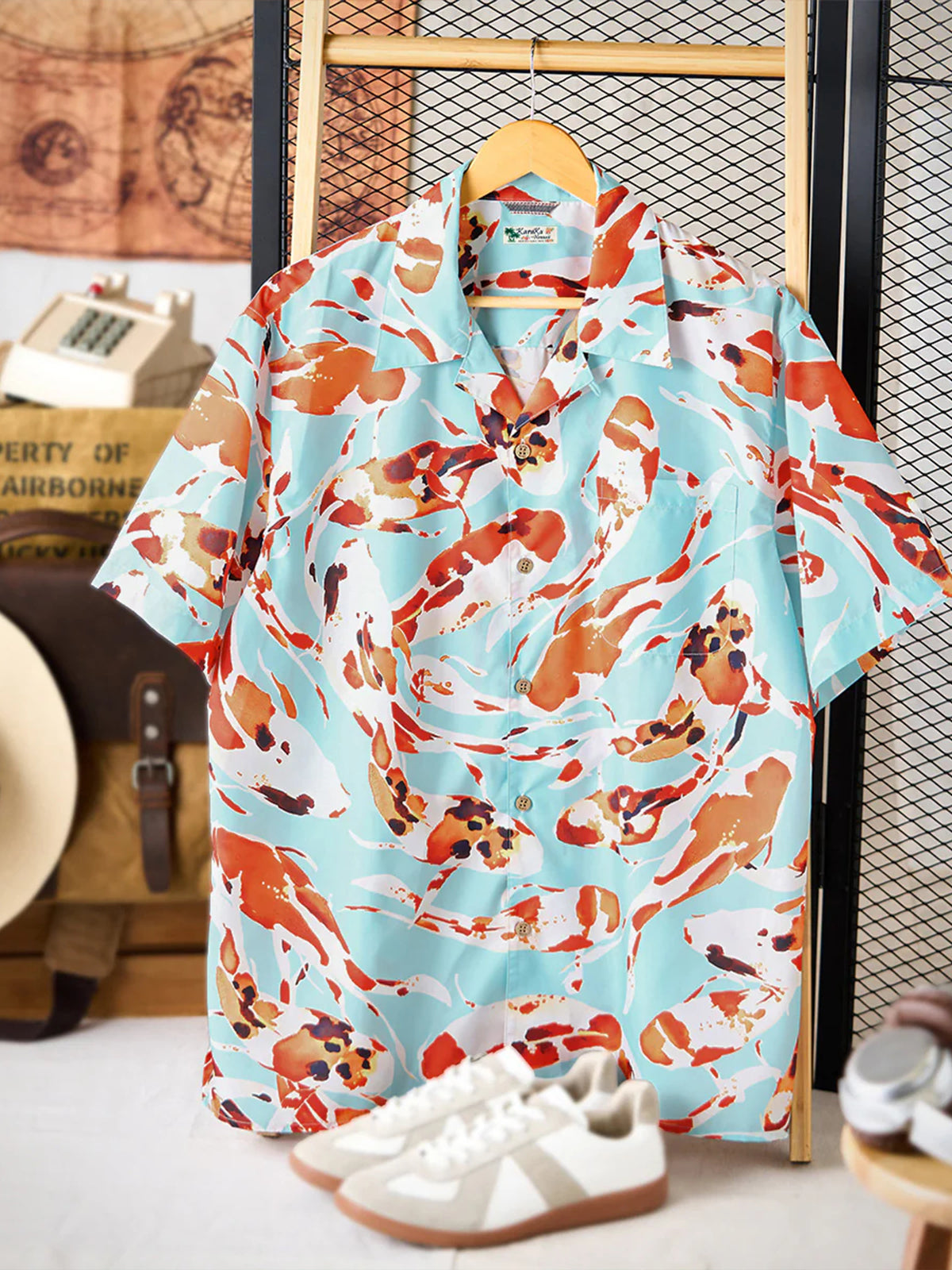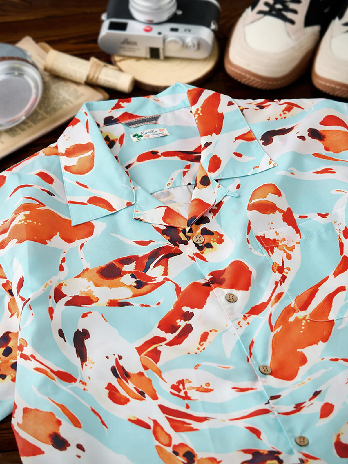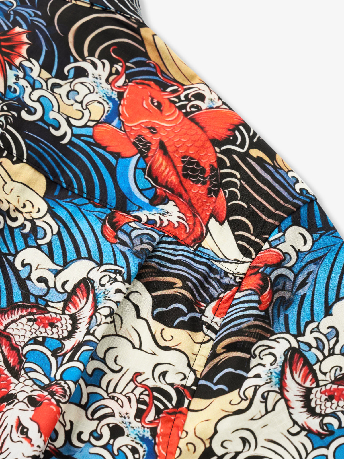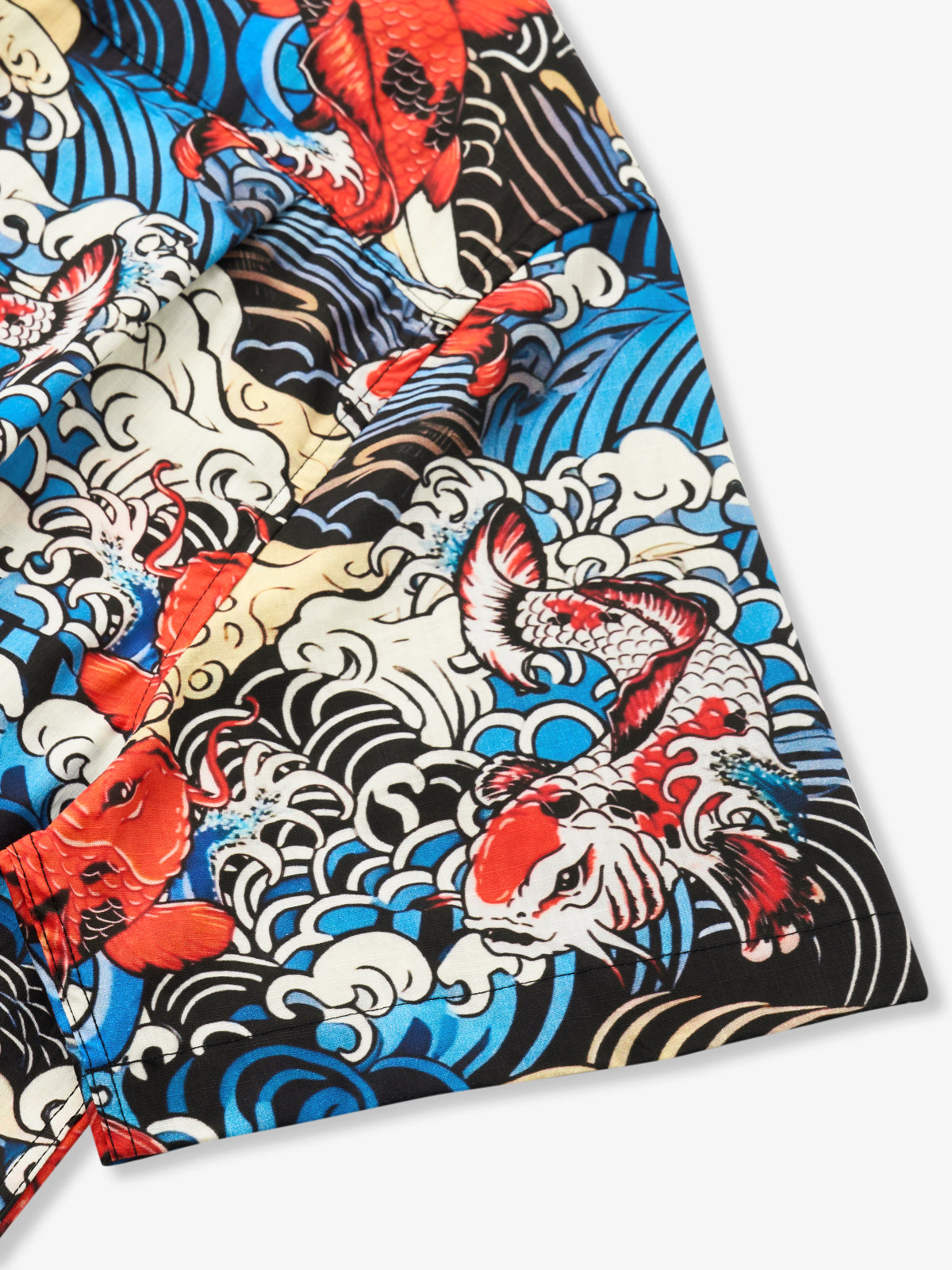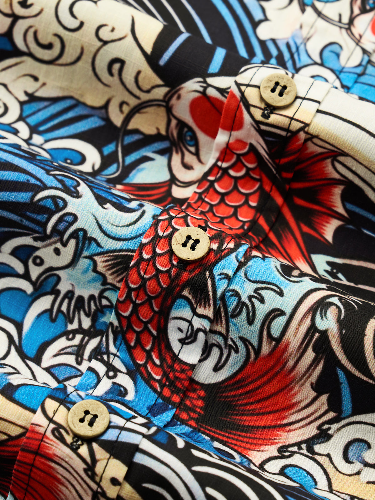 Koi Fish and Waves Cotton Hawaiian Shirt