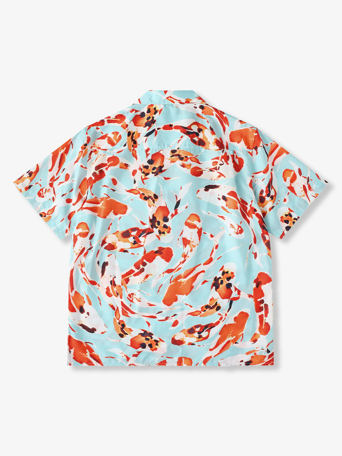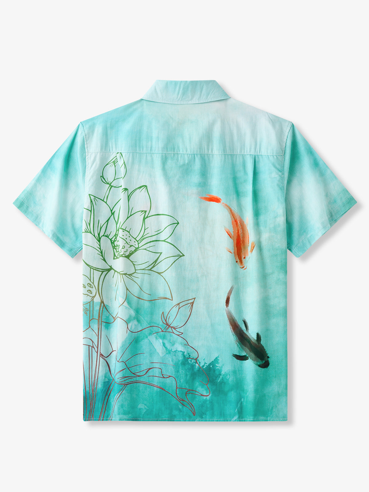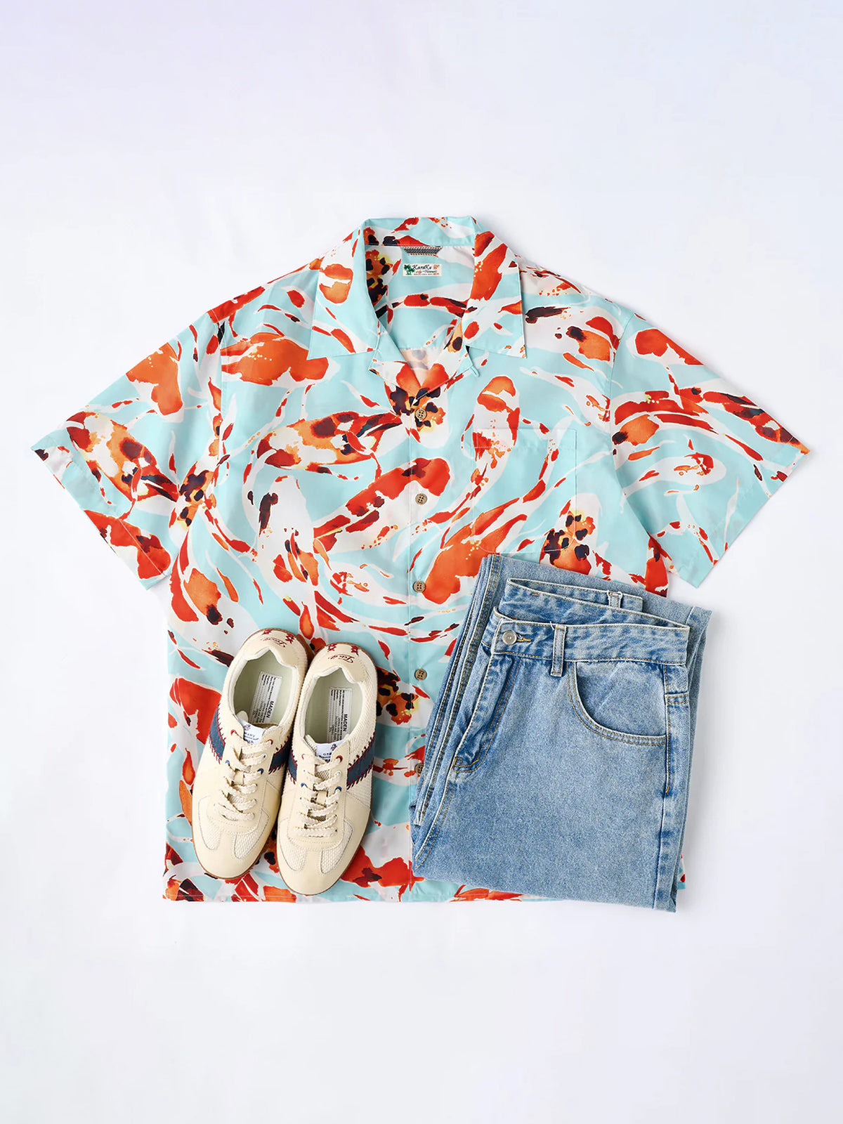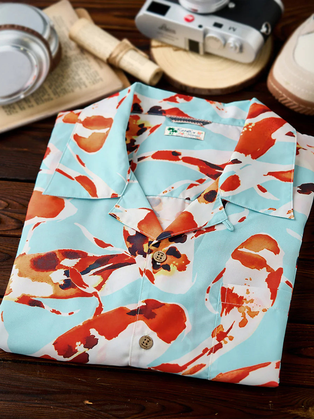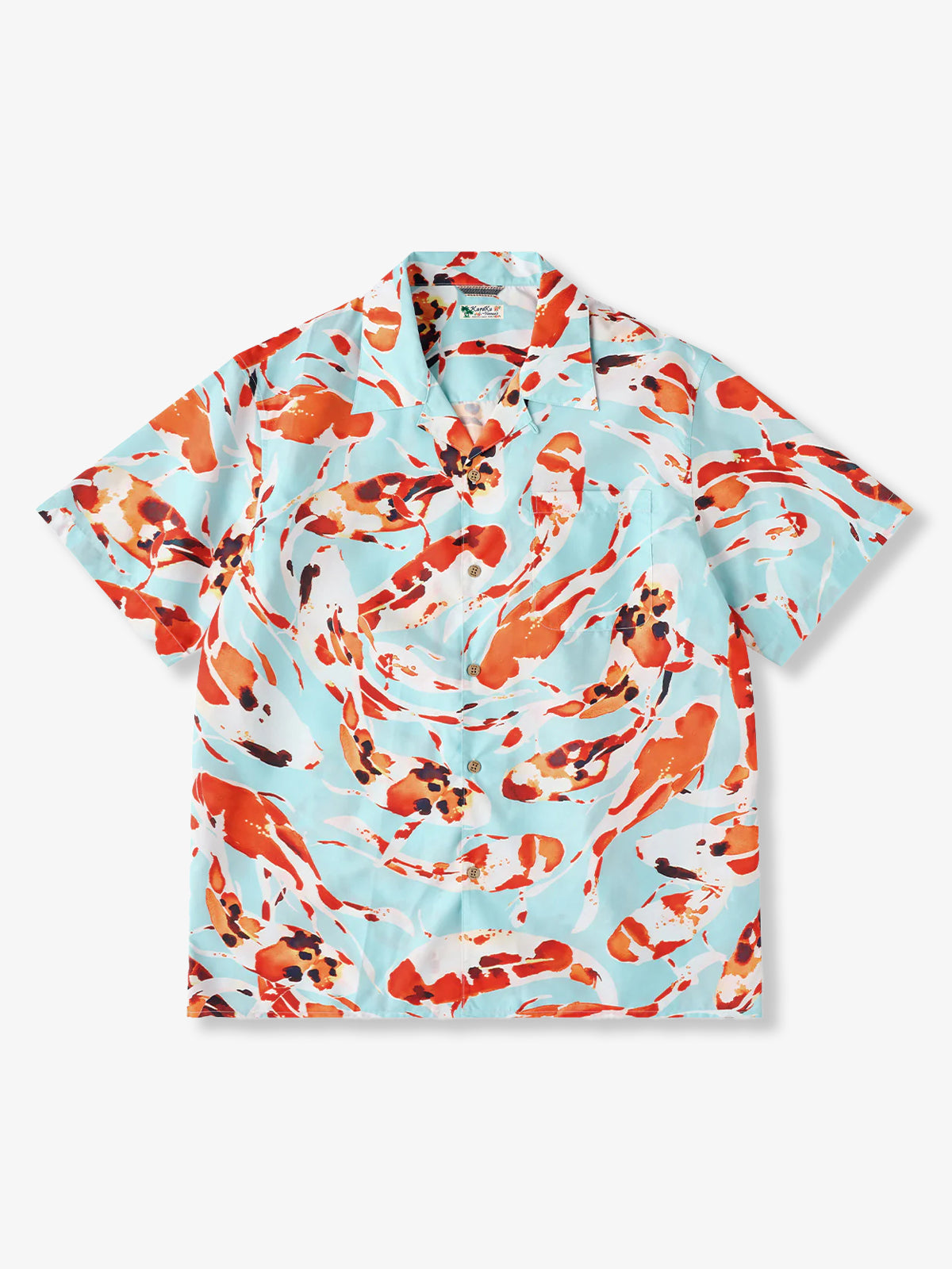Koi Fish and Waves Cotton Hawaiian Shirt