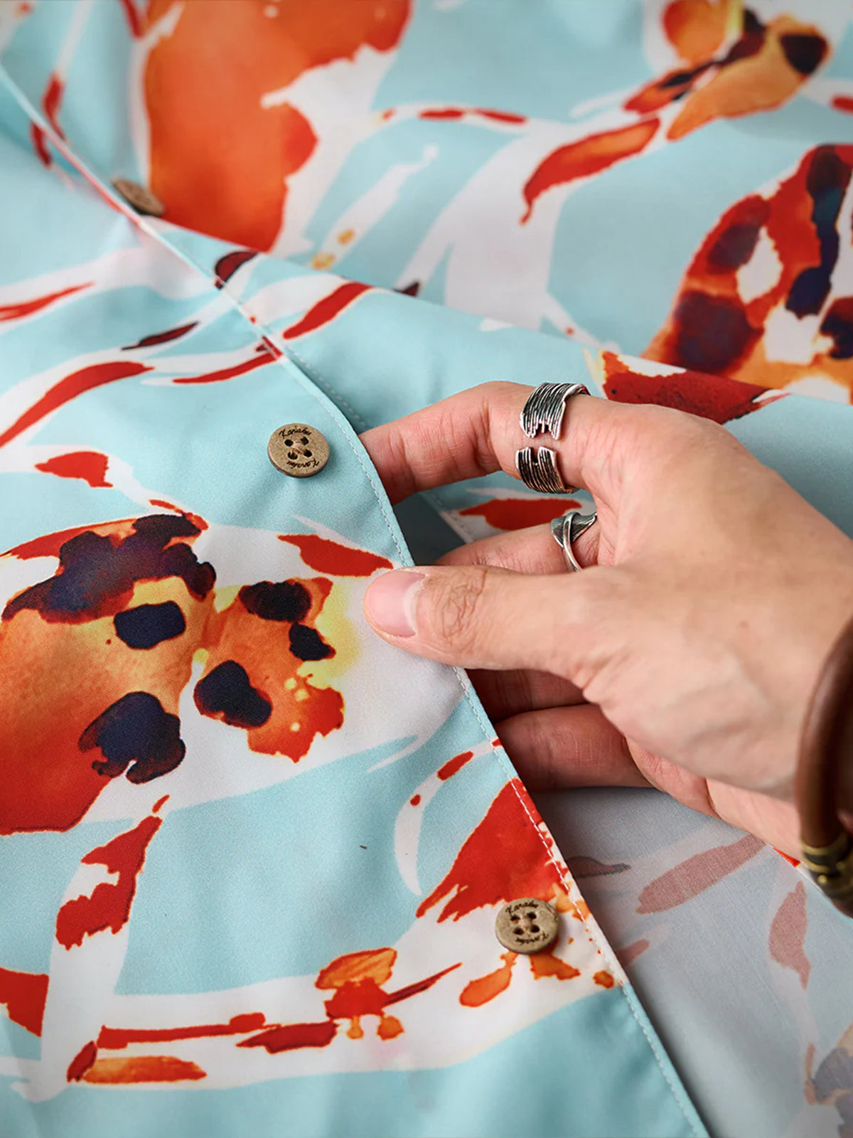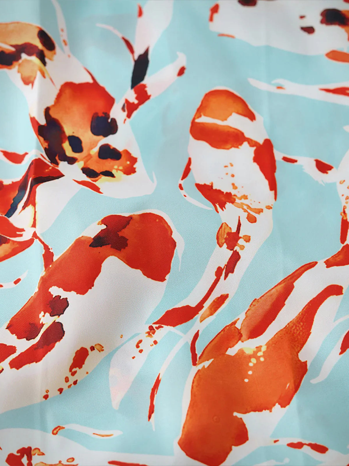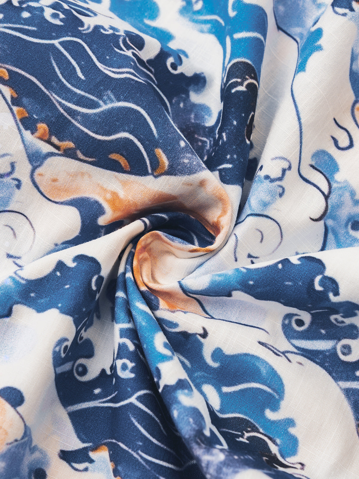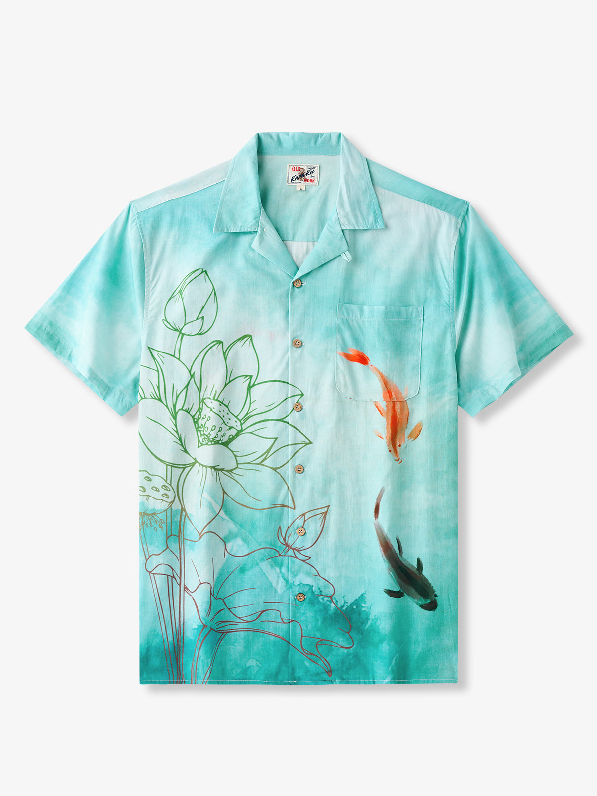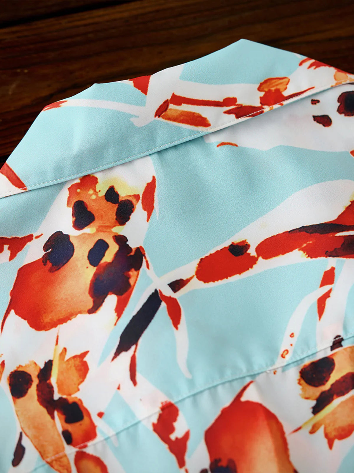Koi Fish and Waves Cotton Hawaiian Shirt