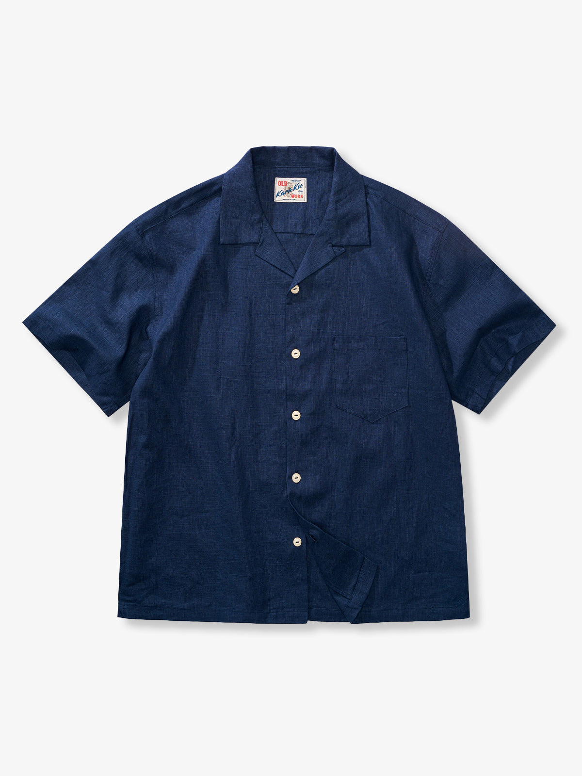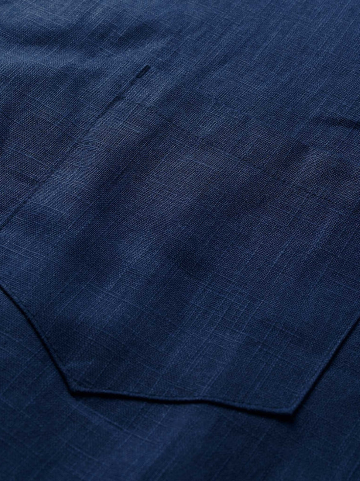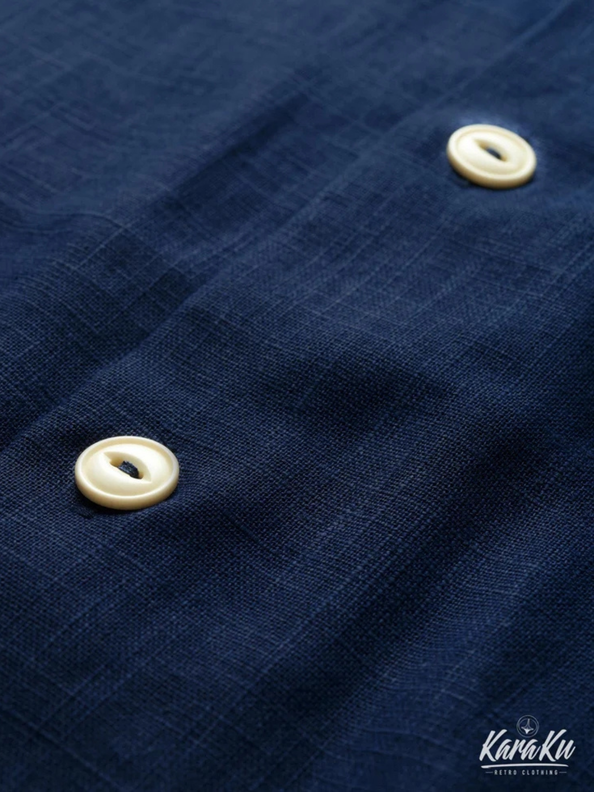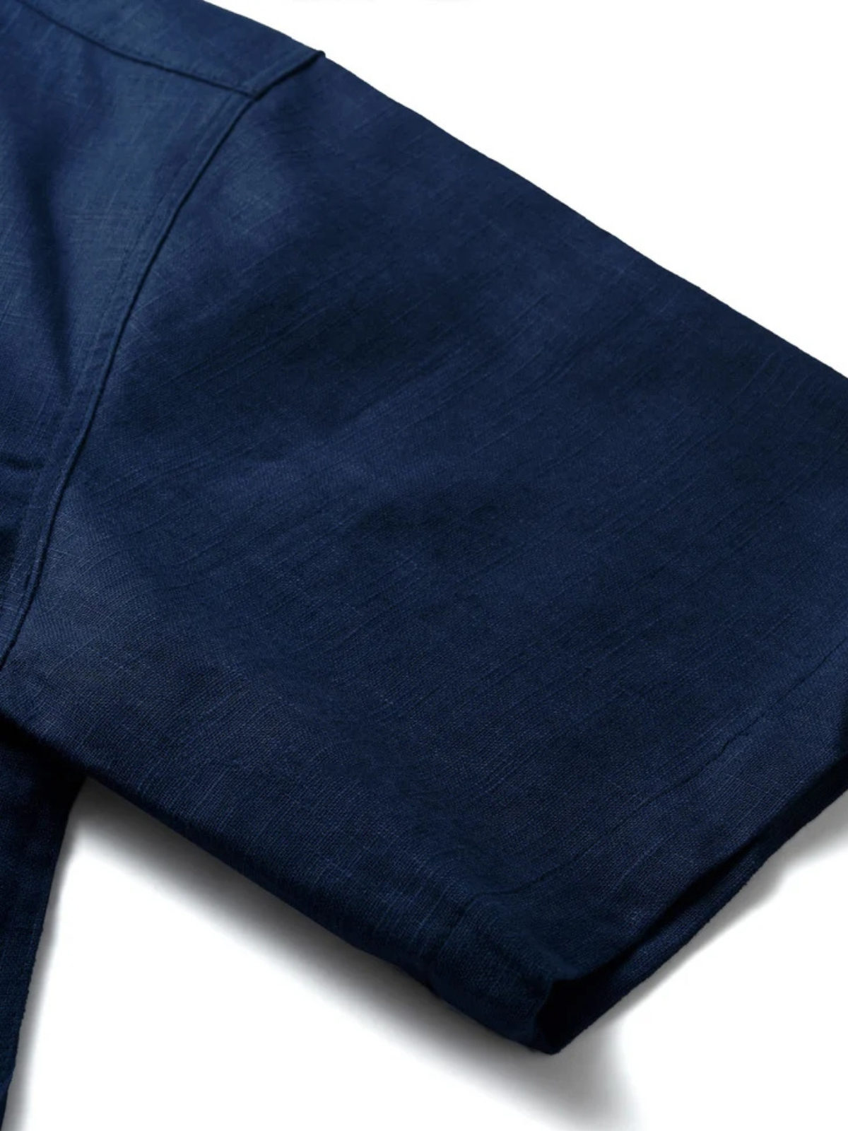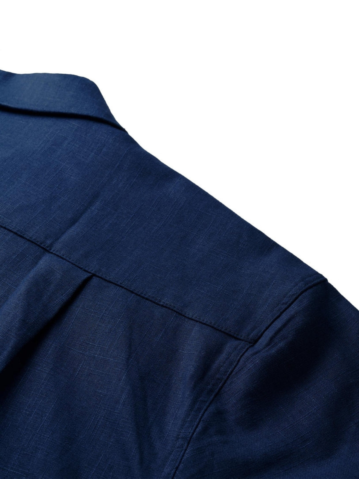 Indigo-dyed dropped shoulder cotton and linen Cuban shirt