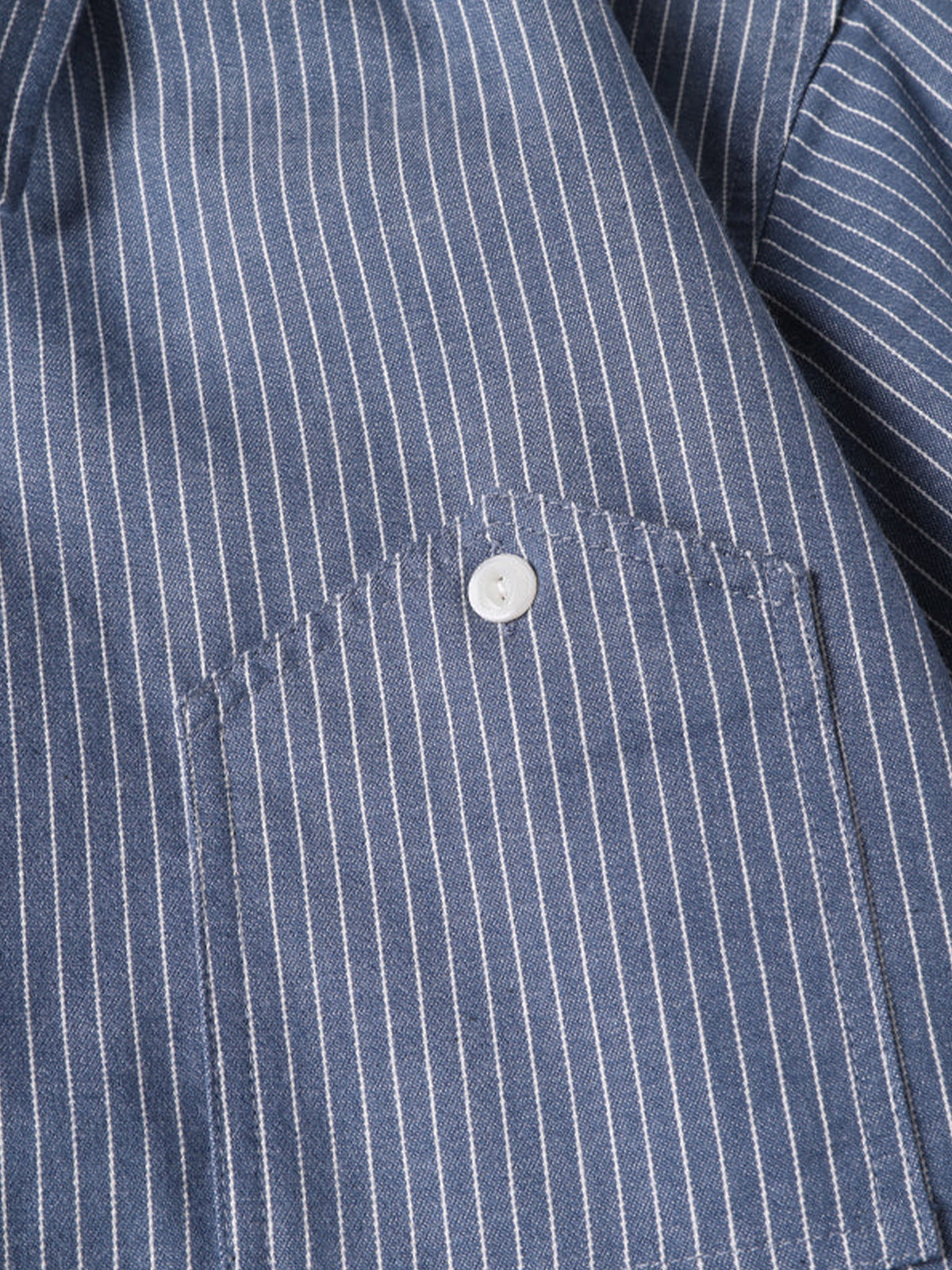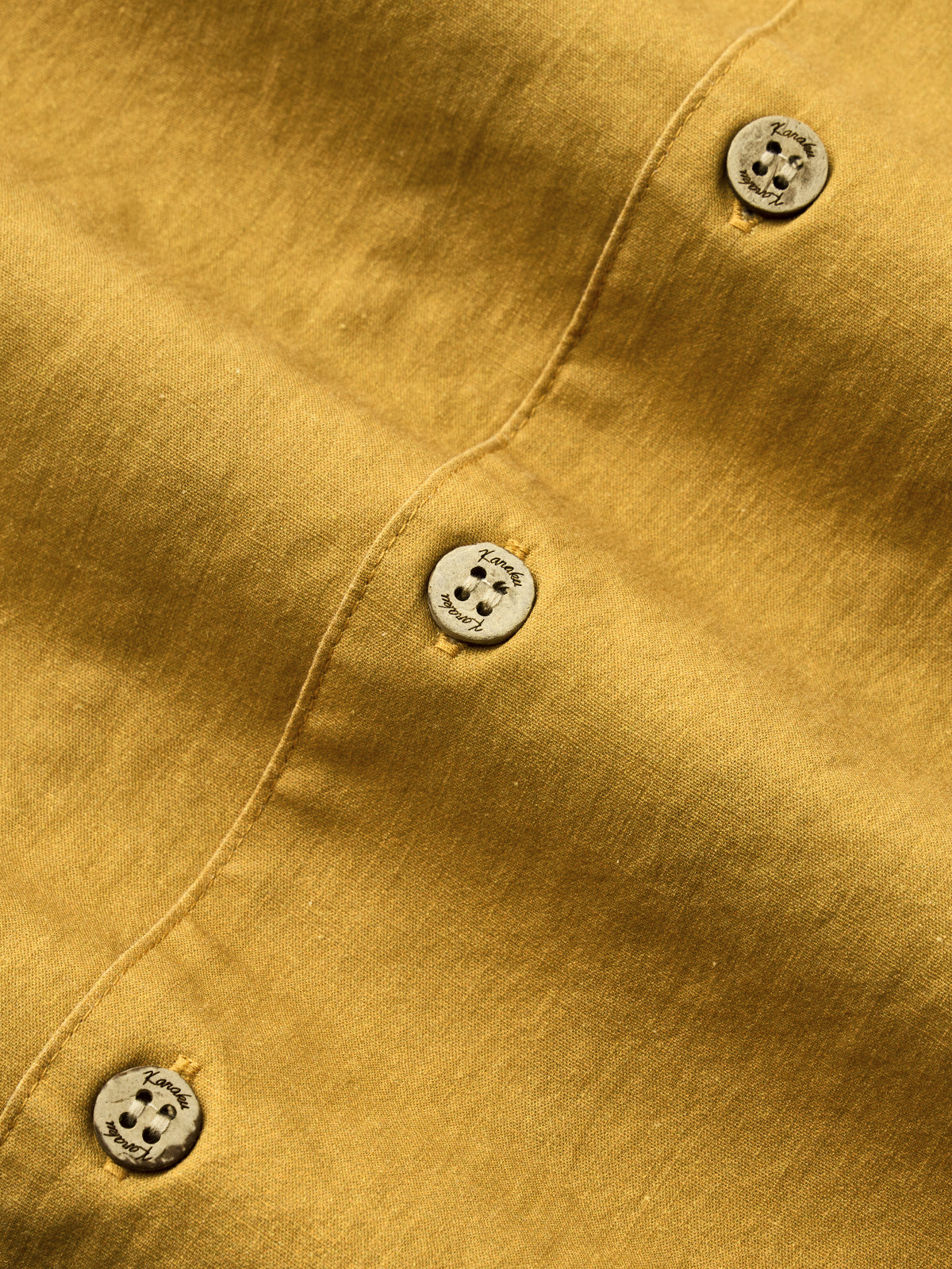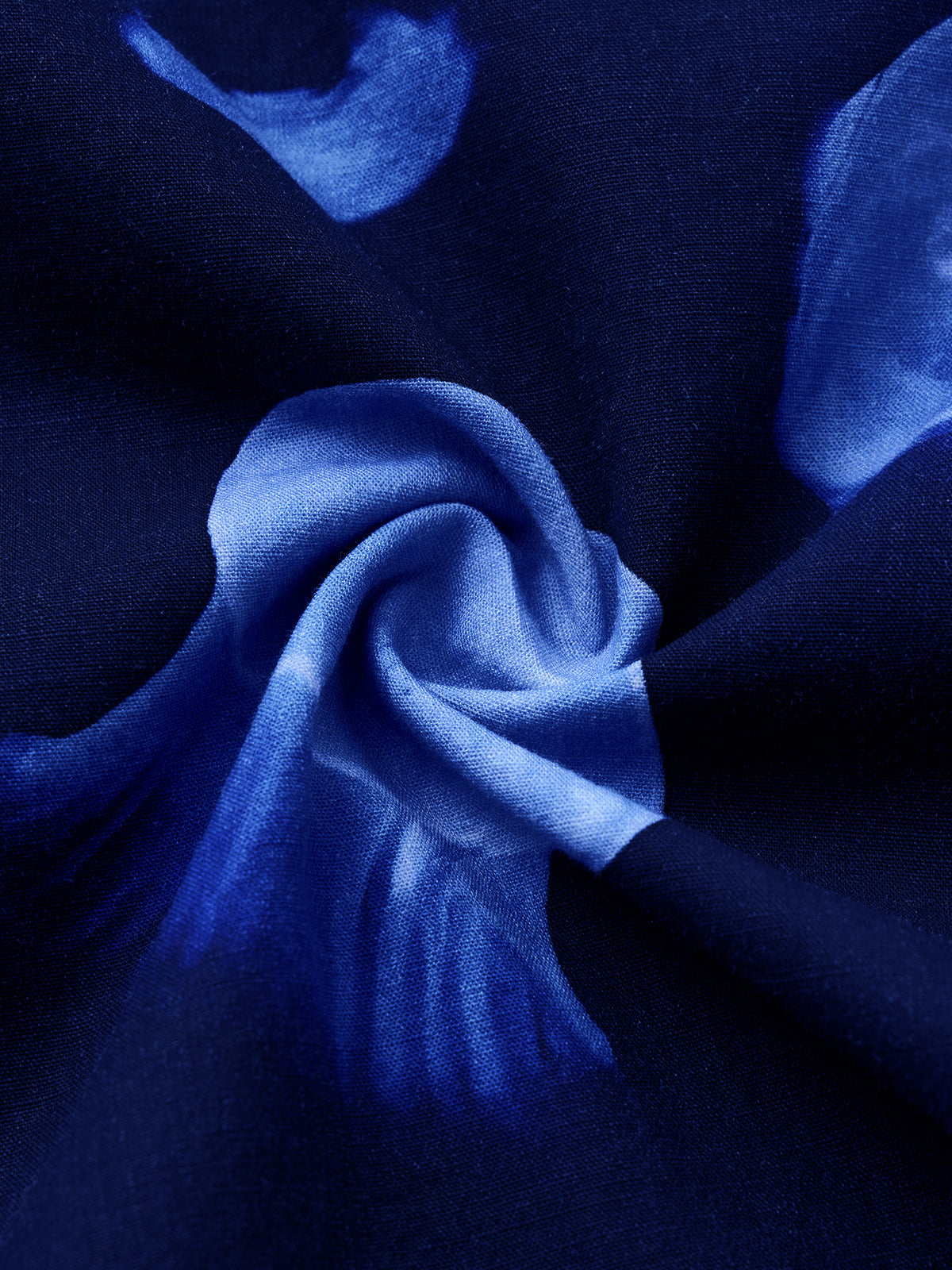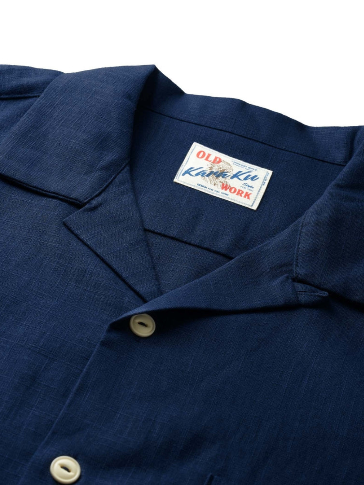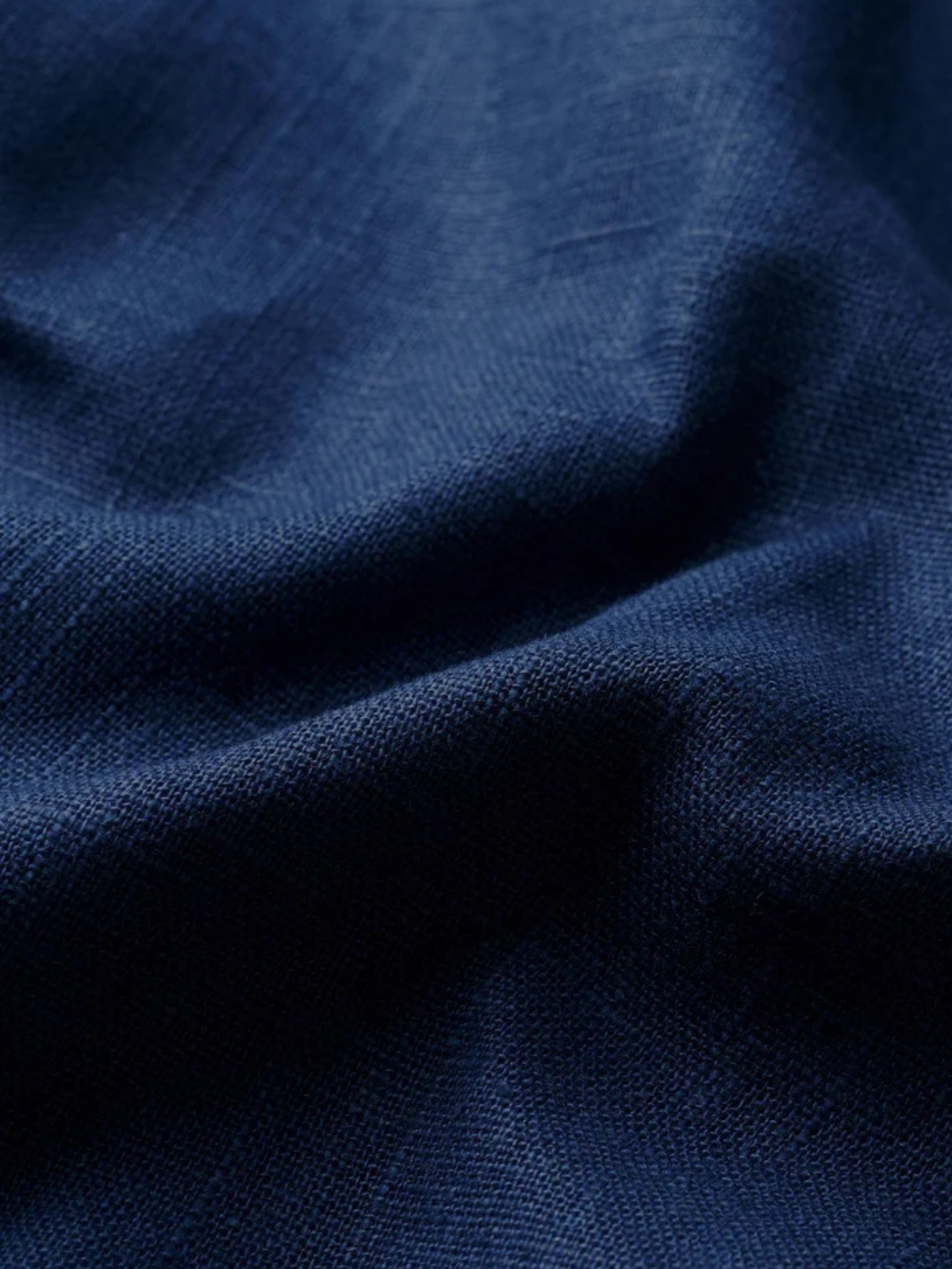 Indigo-dyed dropped shoulder cotton and linen Cuban shirt