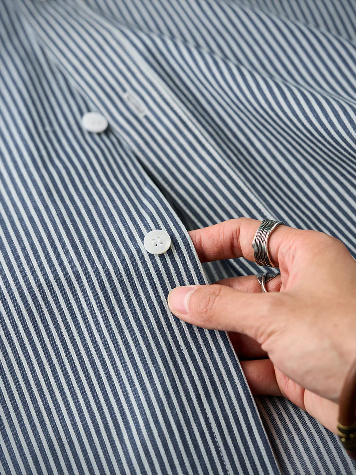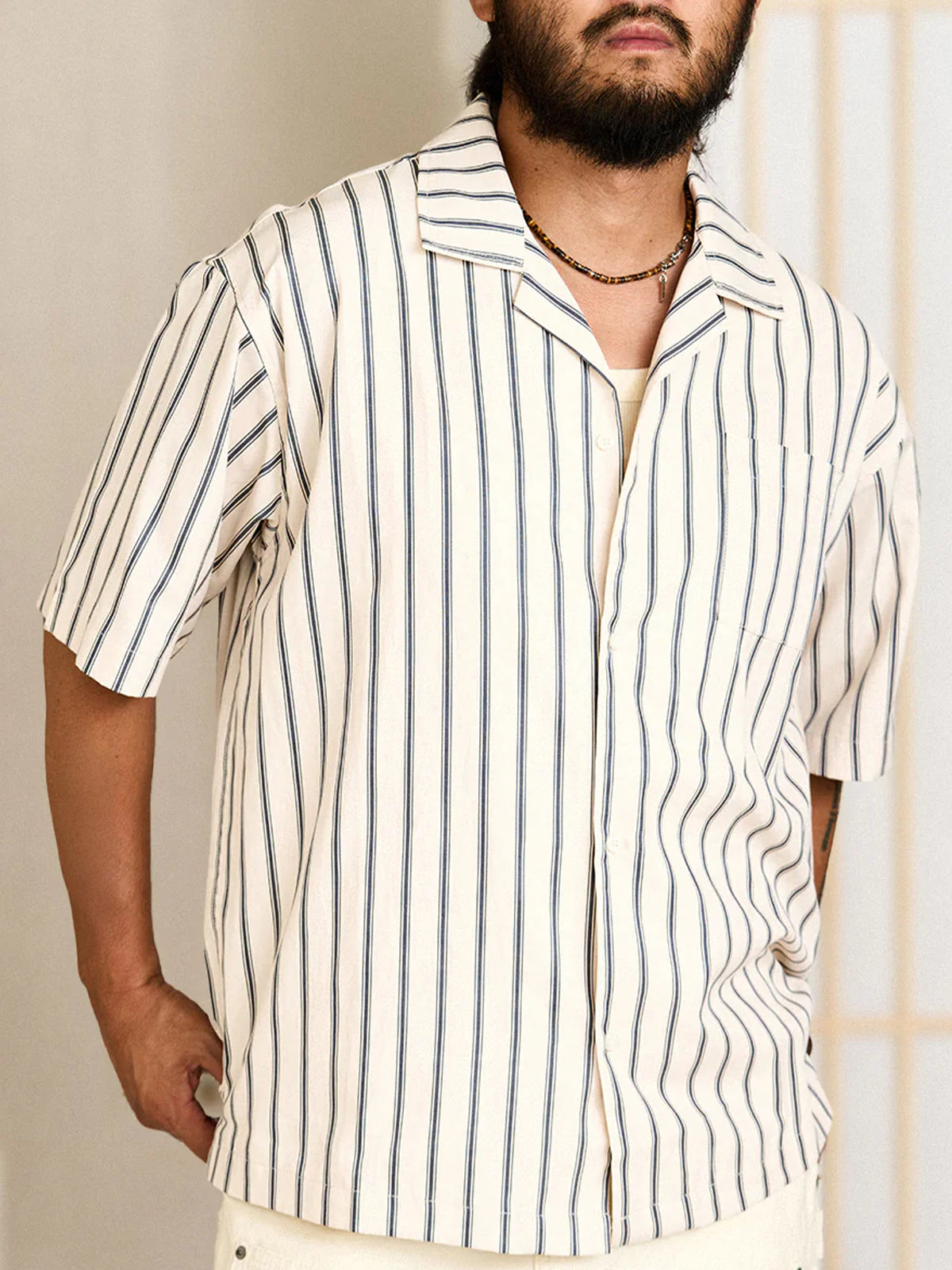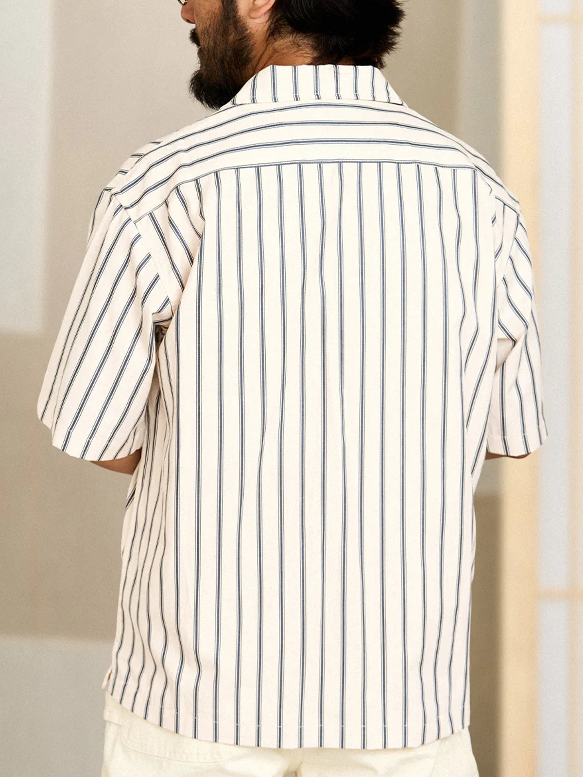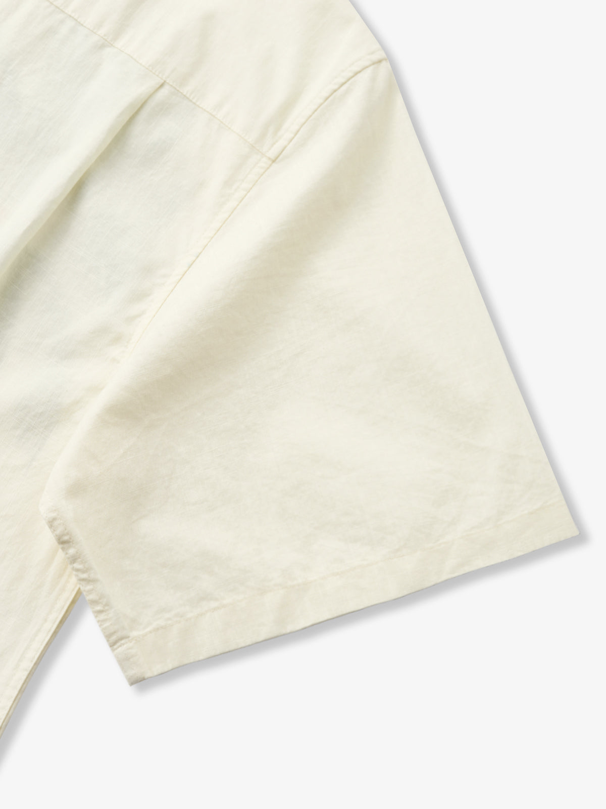 Indigo-dyed dropped shoulder cotton and linen Cuban shirt