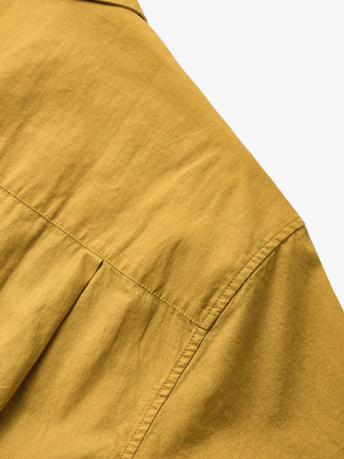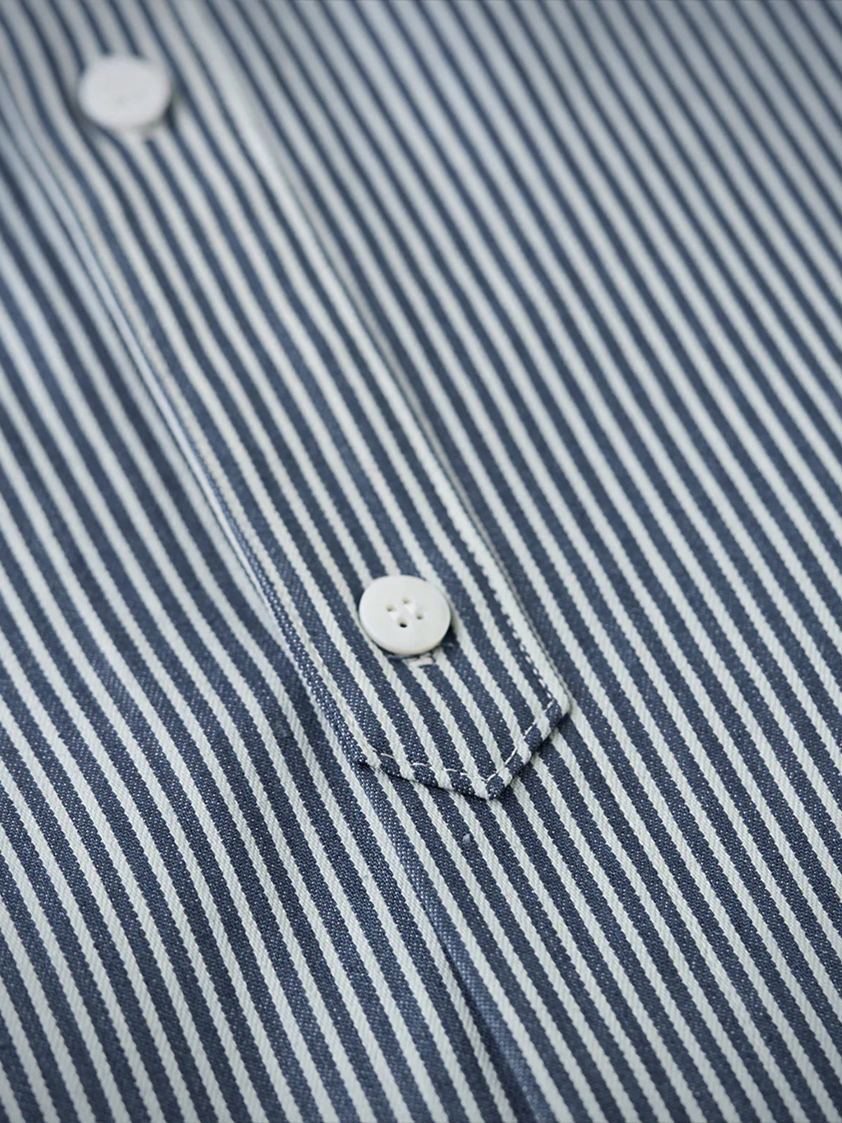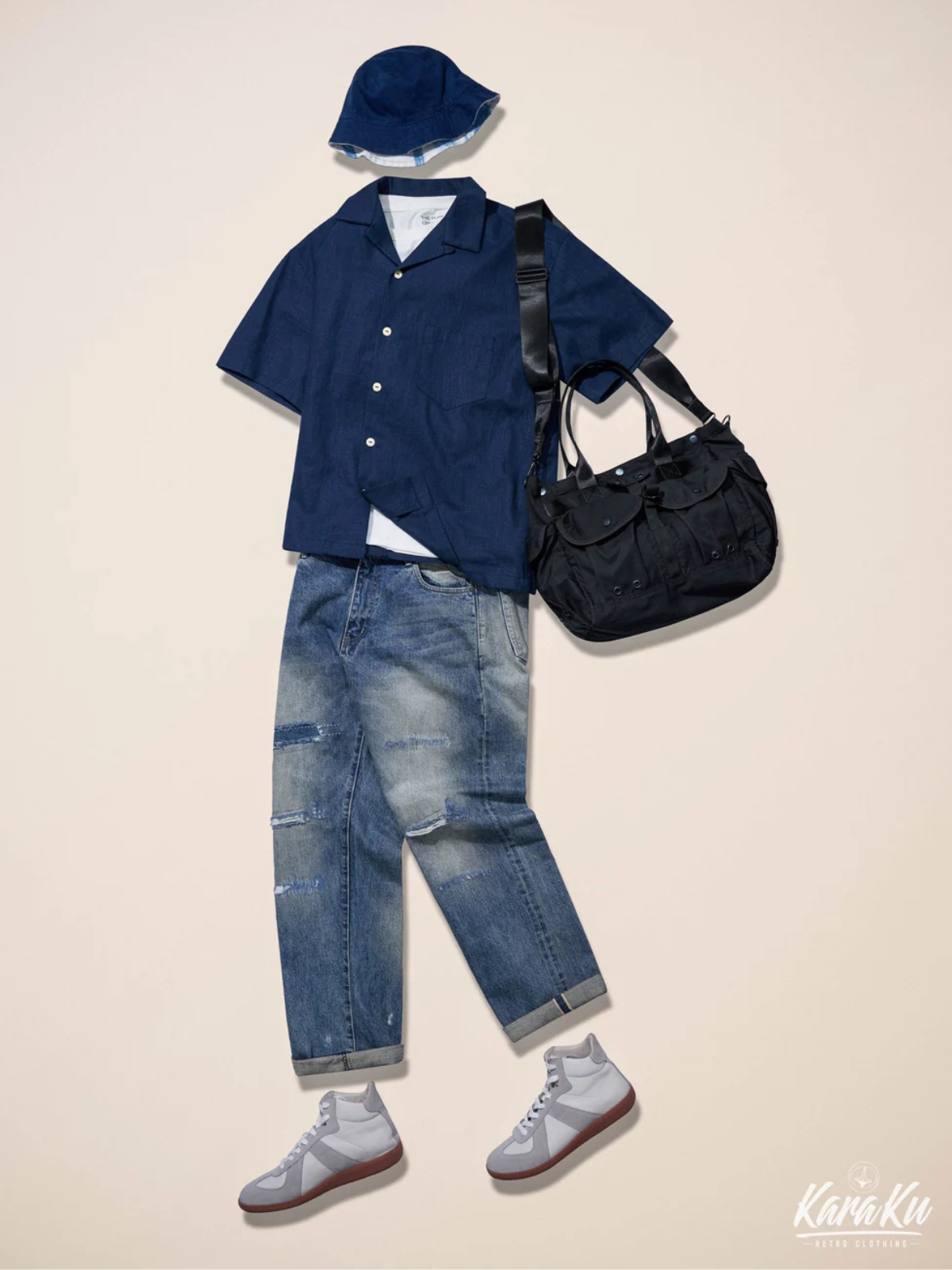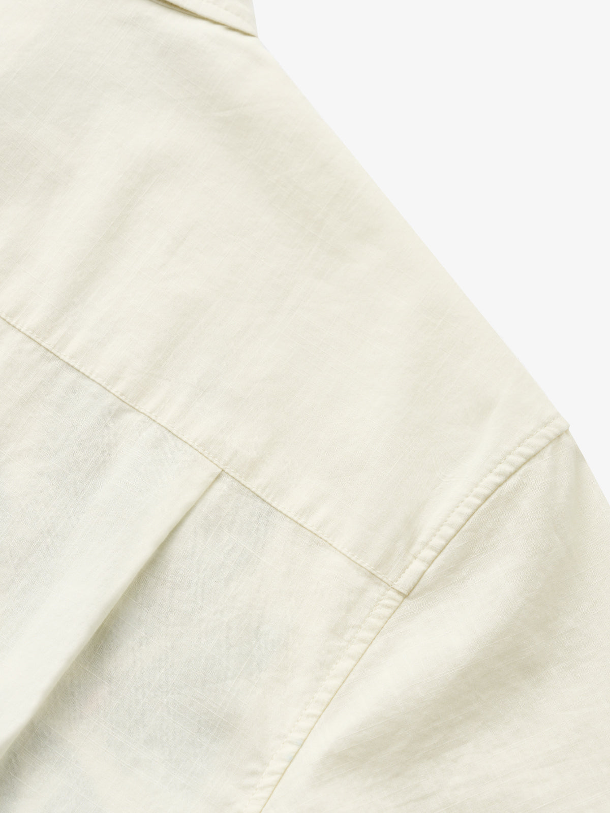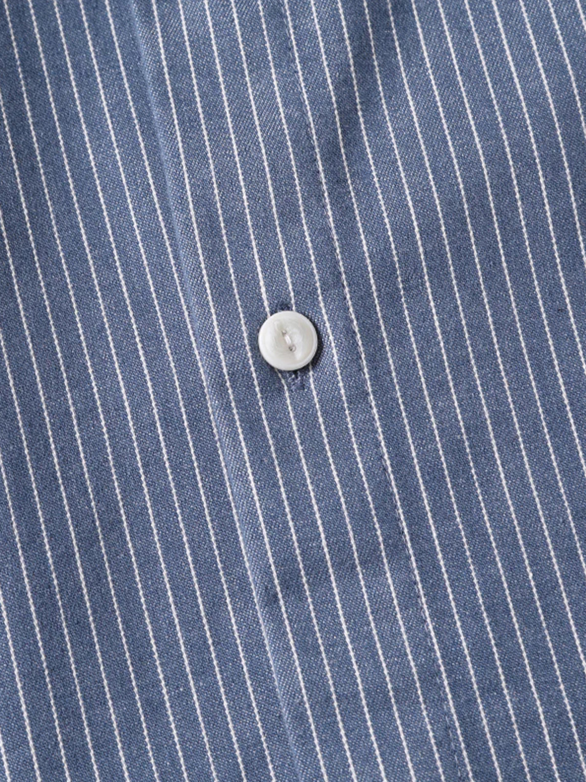 Indigo-dyed dropped shoulder cotton and linen Cuban shirt
