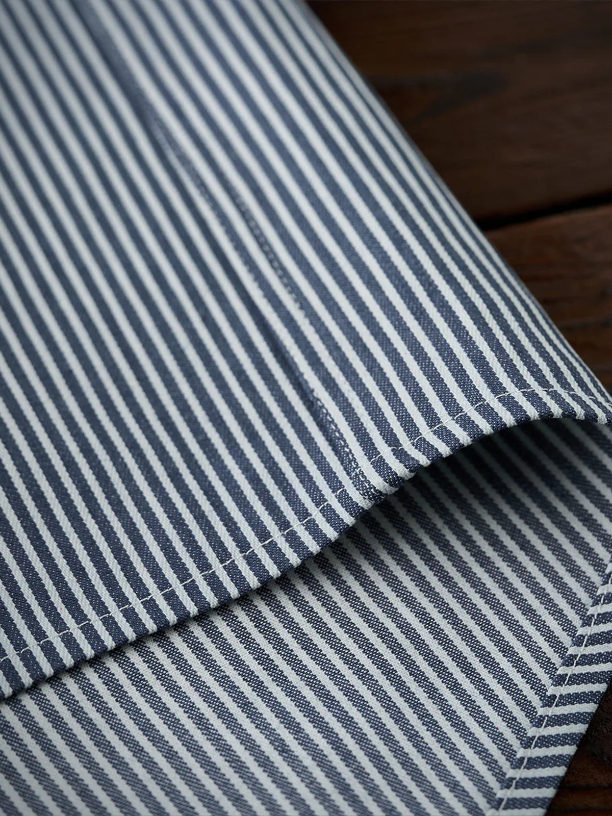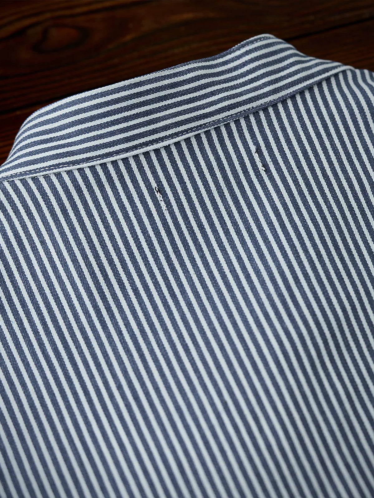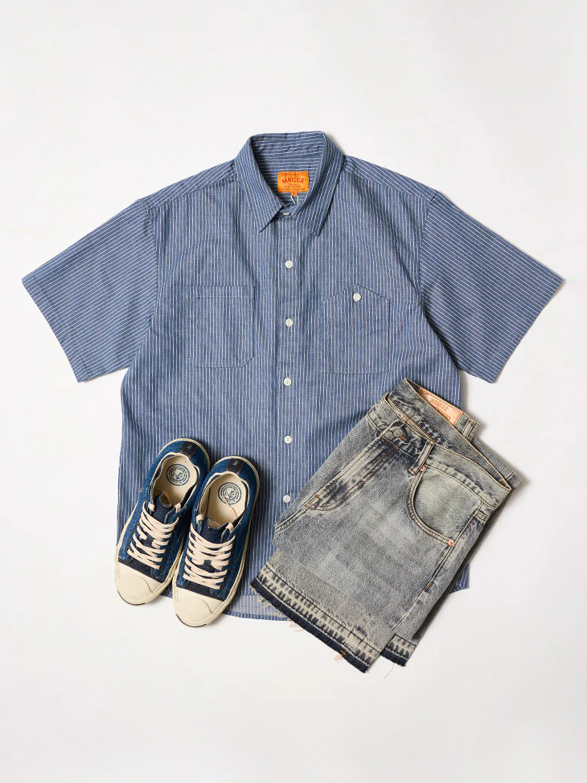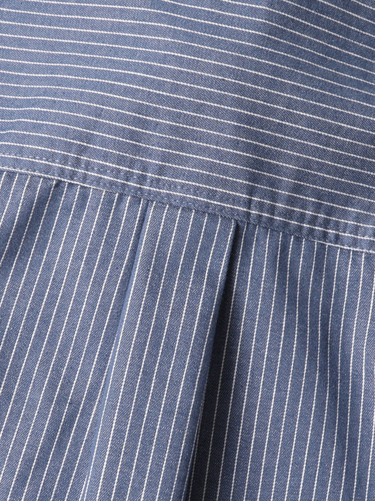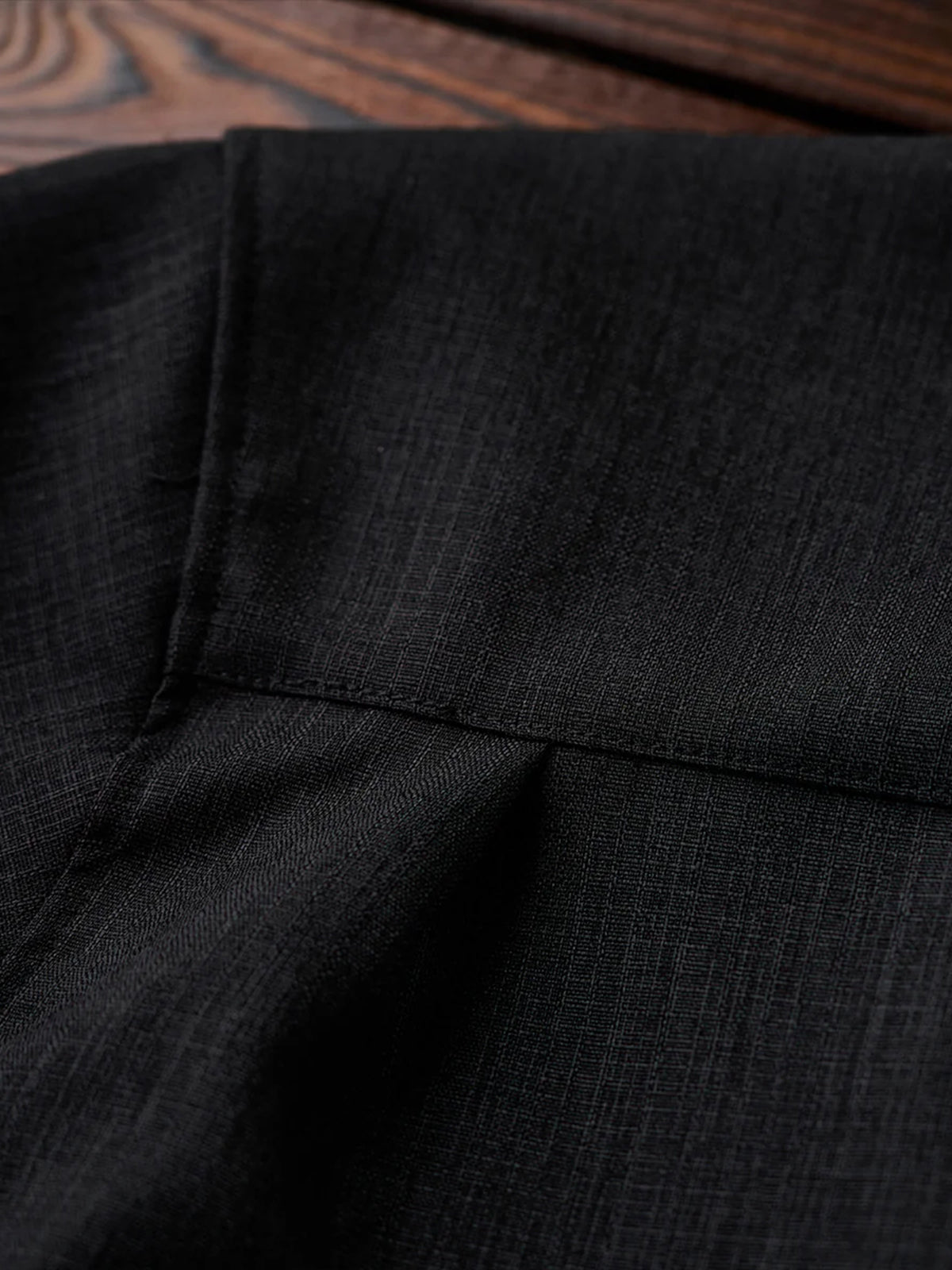 Indigo-dyed dropped shoulder cotton and linen Cuban shirt