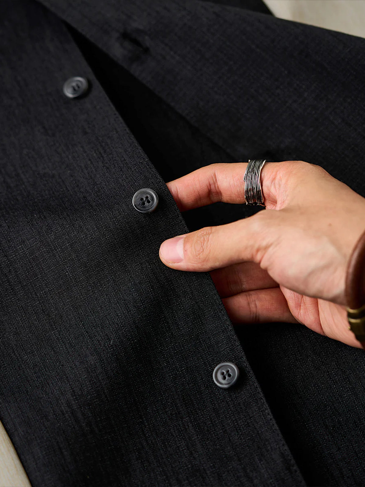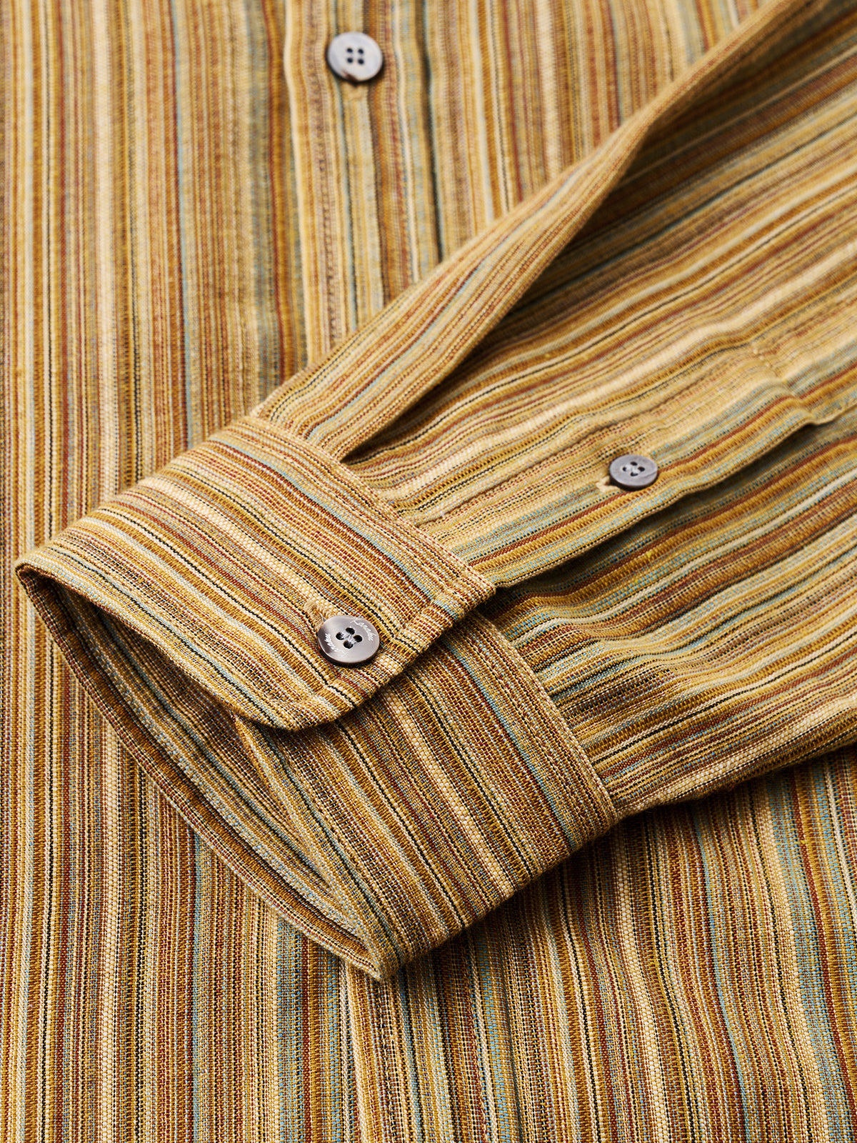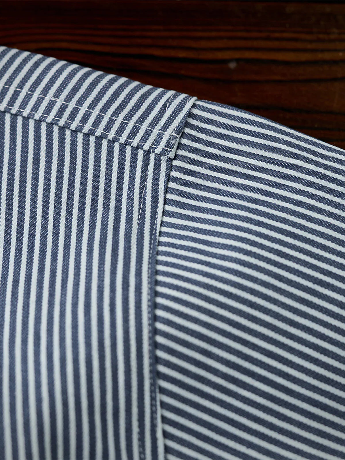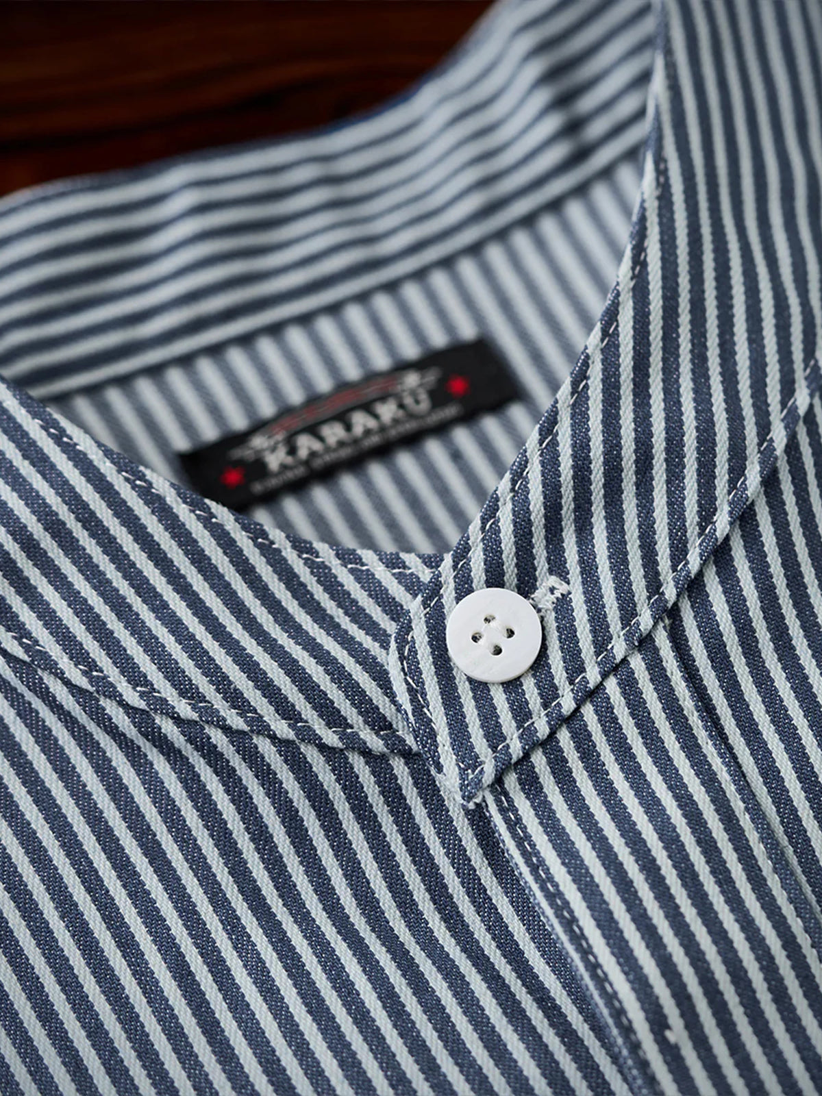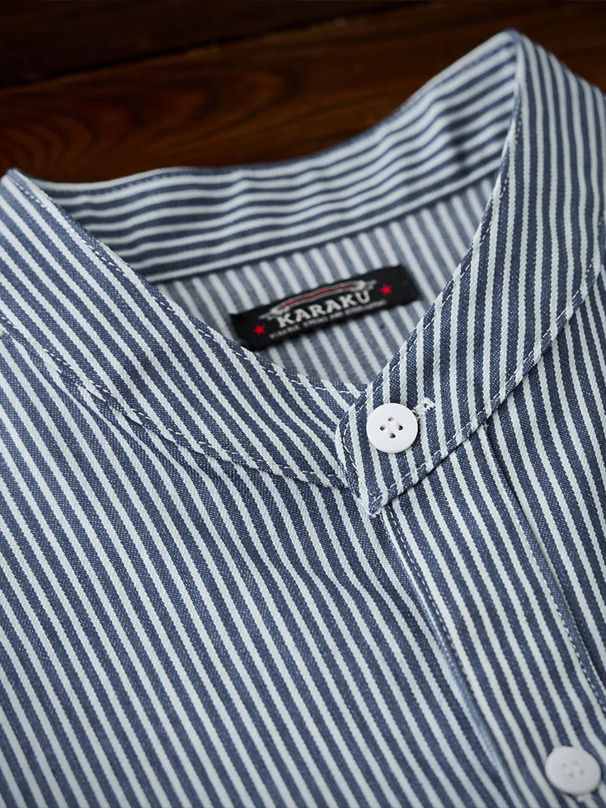 Indigo-dyed dropped shoulder cotton and linen Cuban shirt