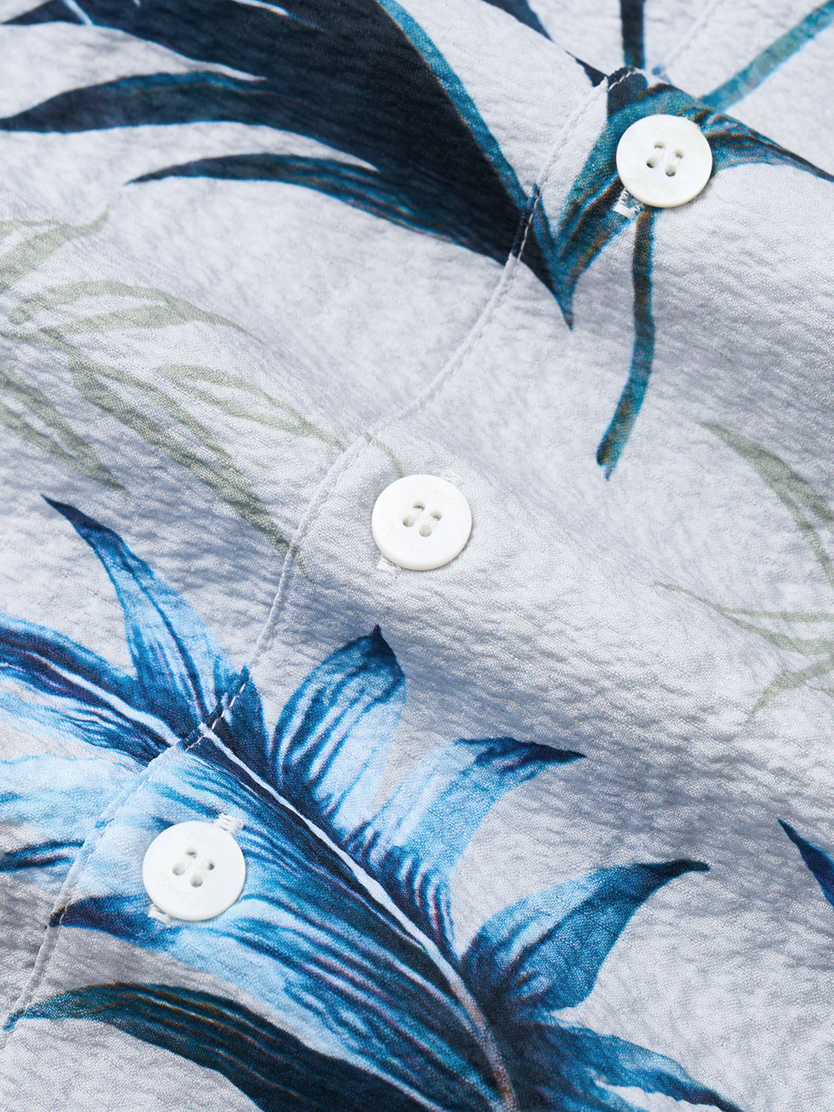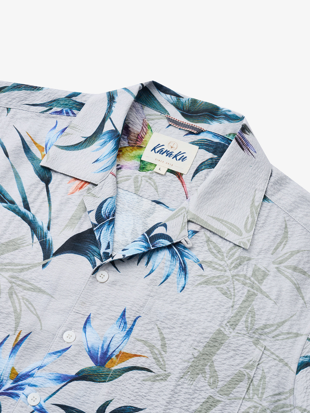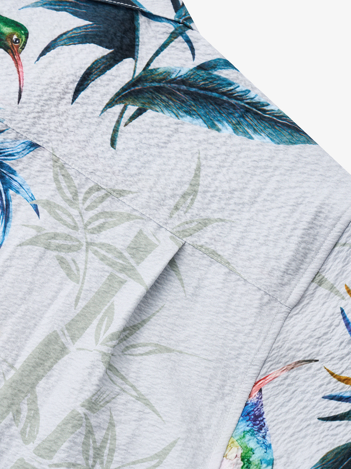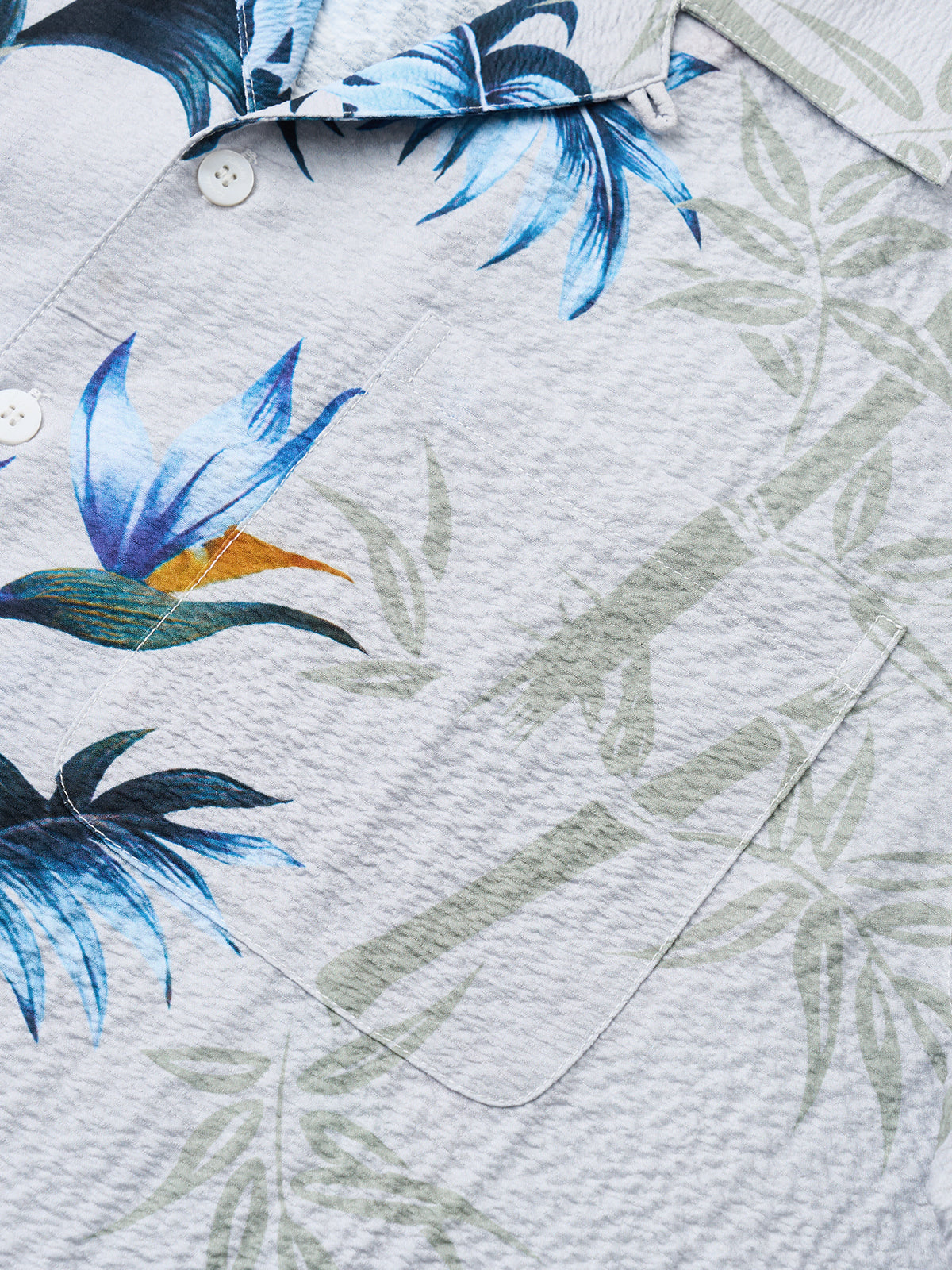 Vintage Tropical Patterns Seersucker Camp Shirt