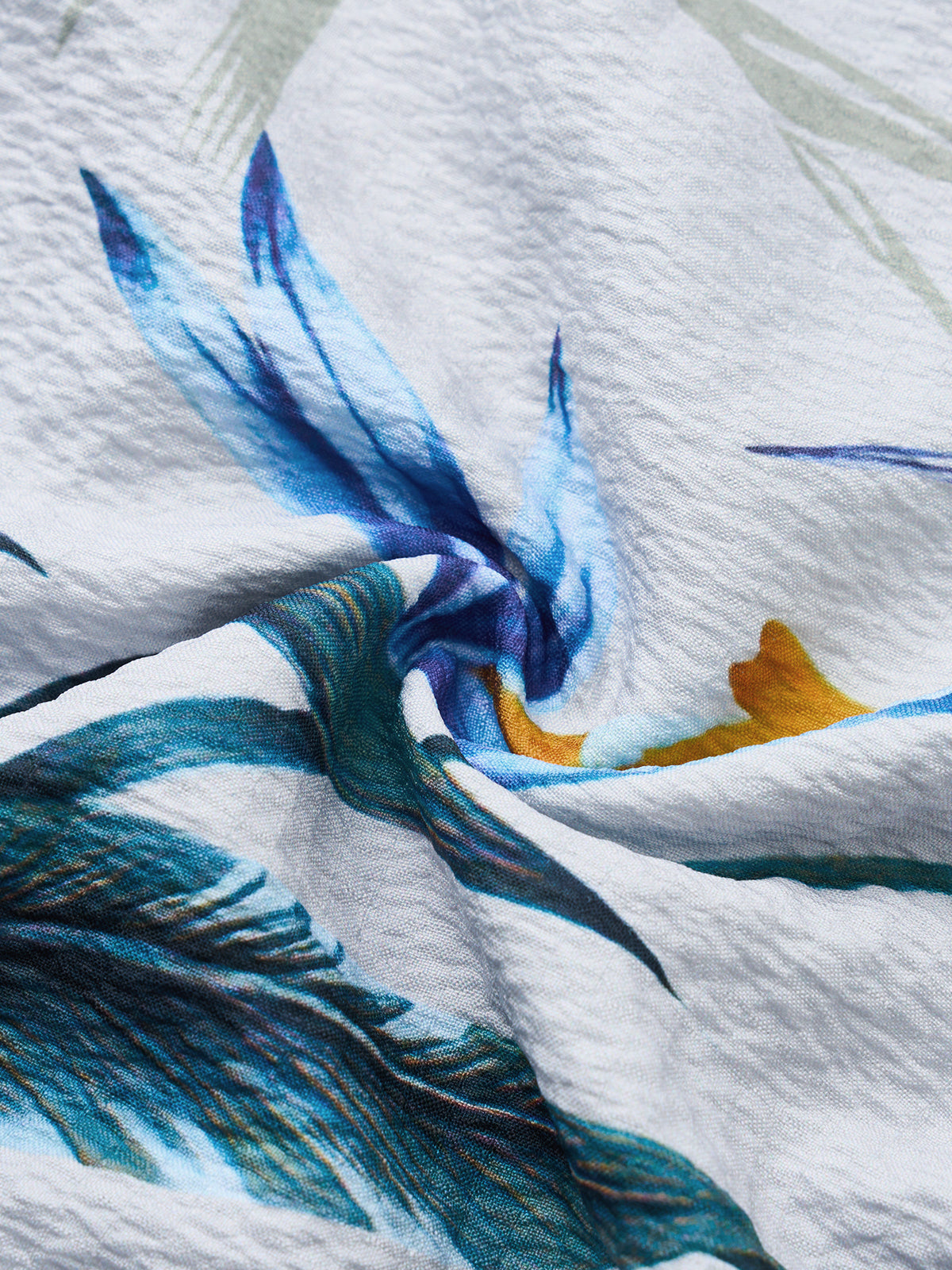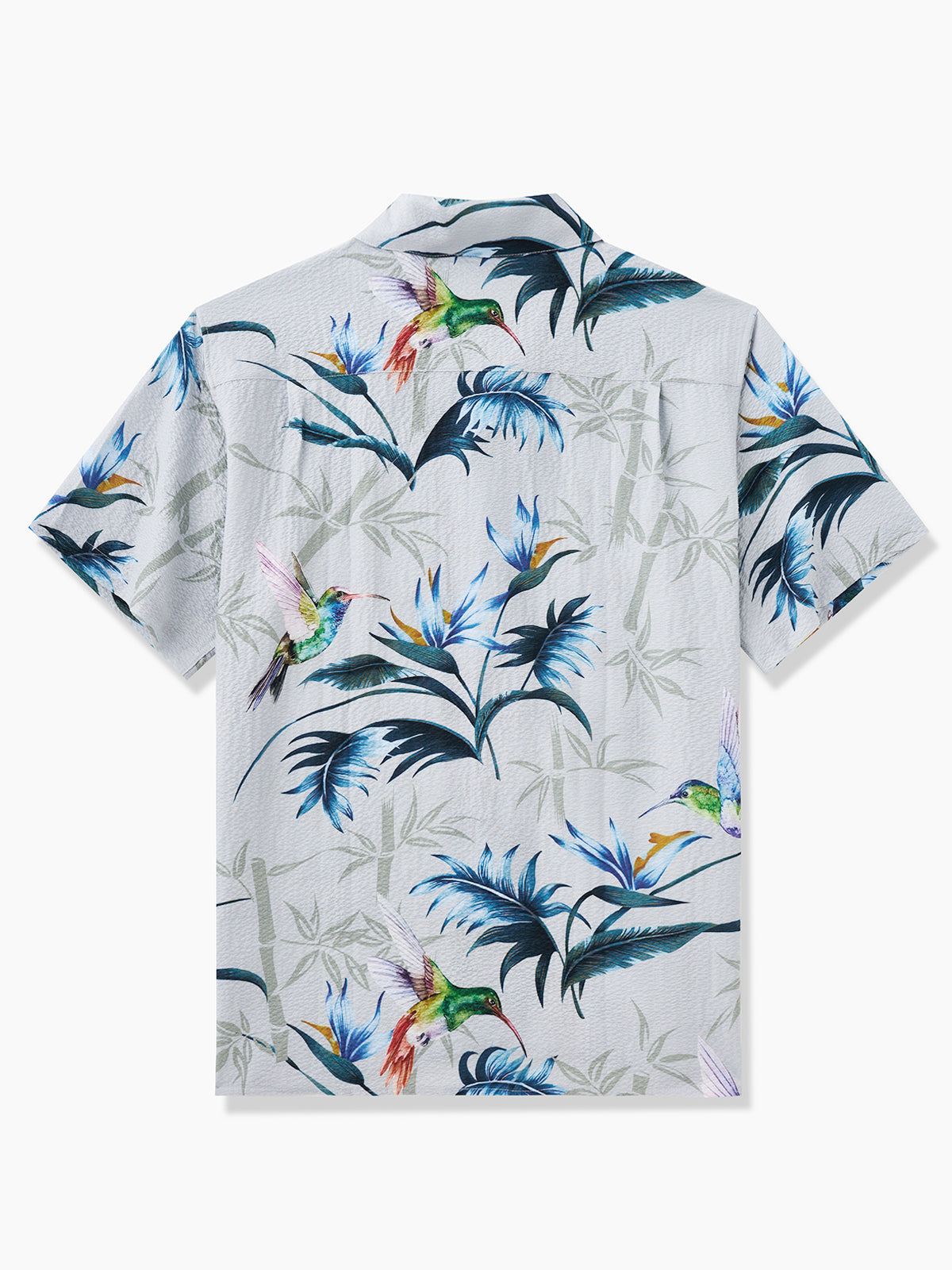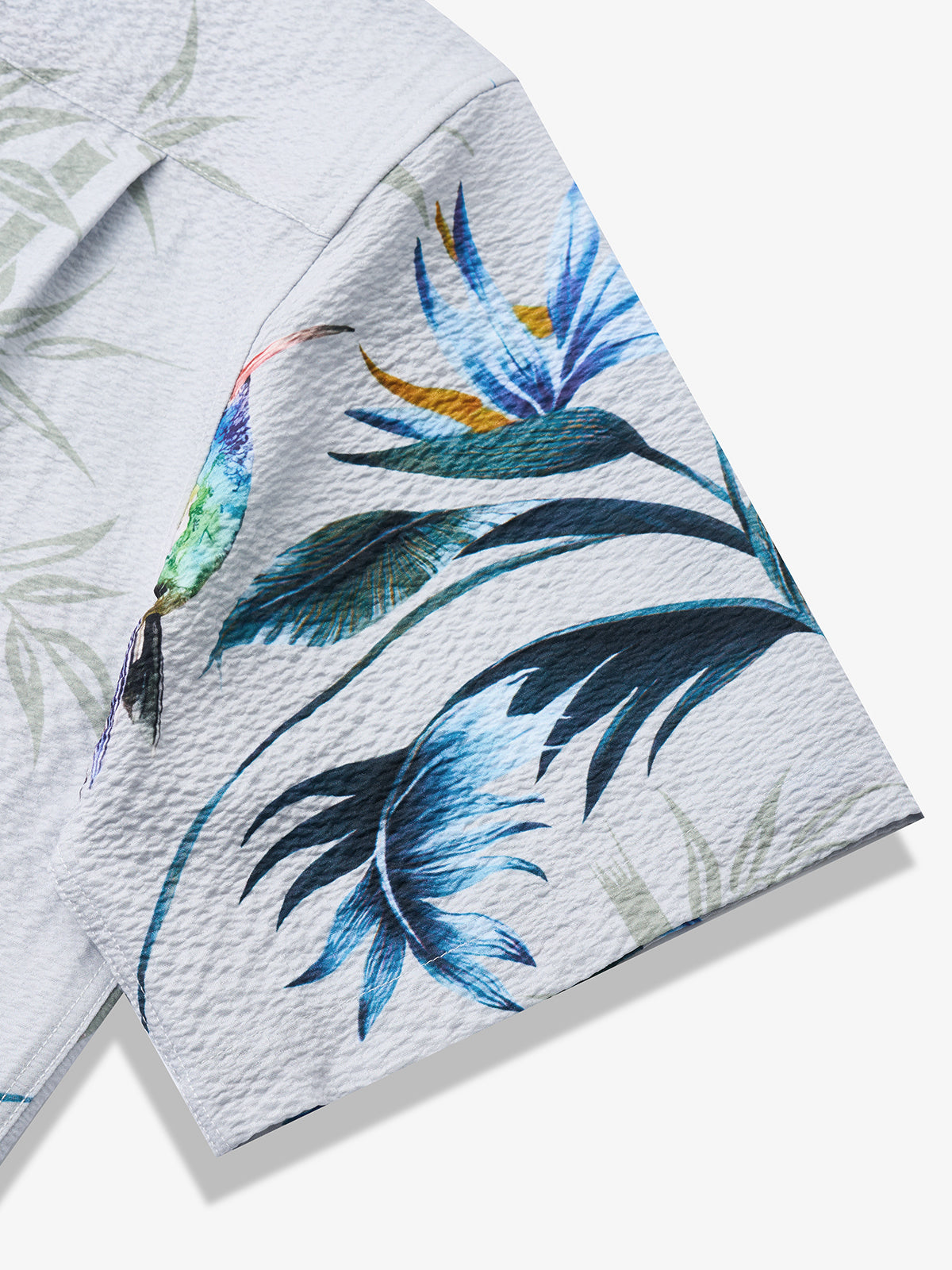 Vintage Tropical Patterns Seersucker Camp Shirt