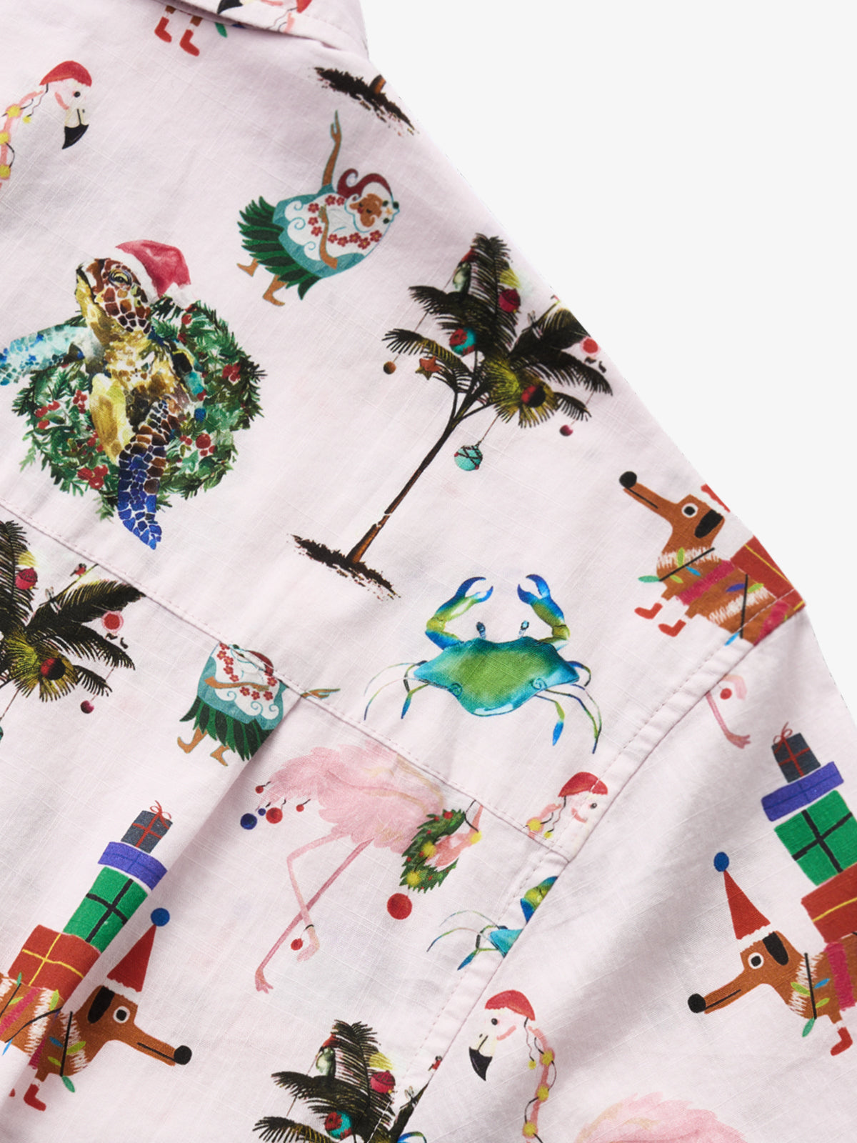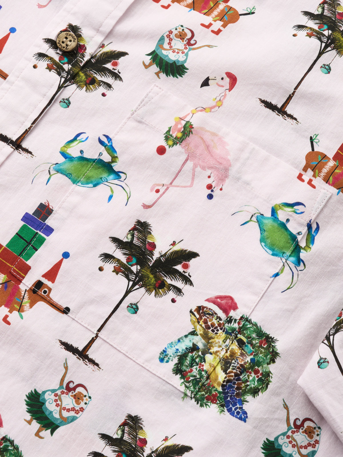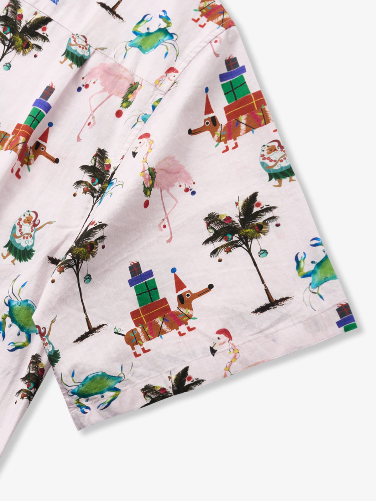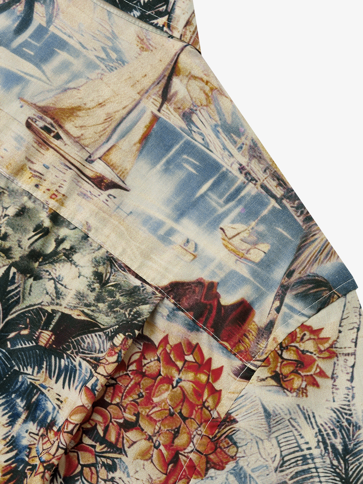 Vintage Tropical Patterns Seersucker Camp Shirt