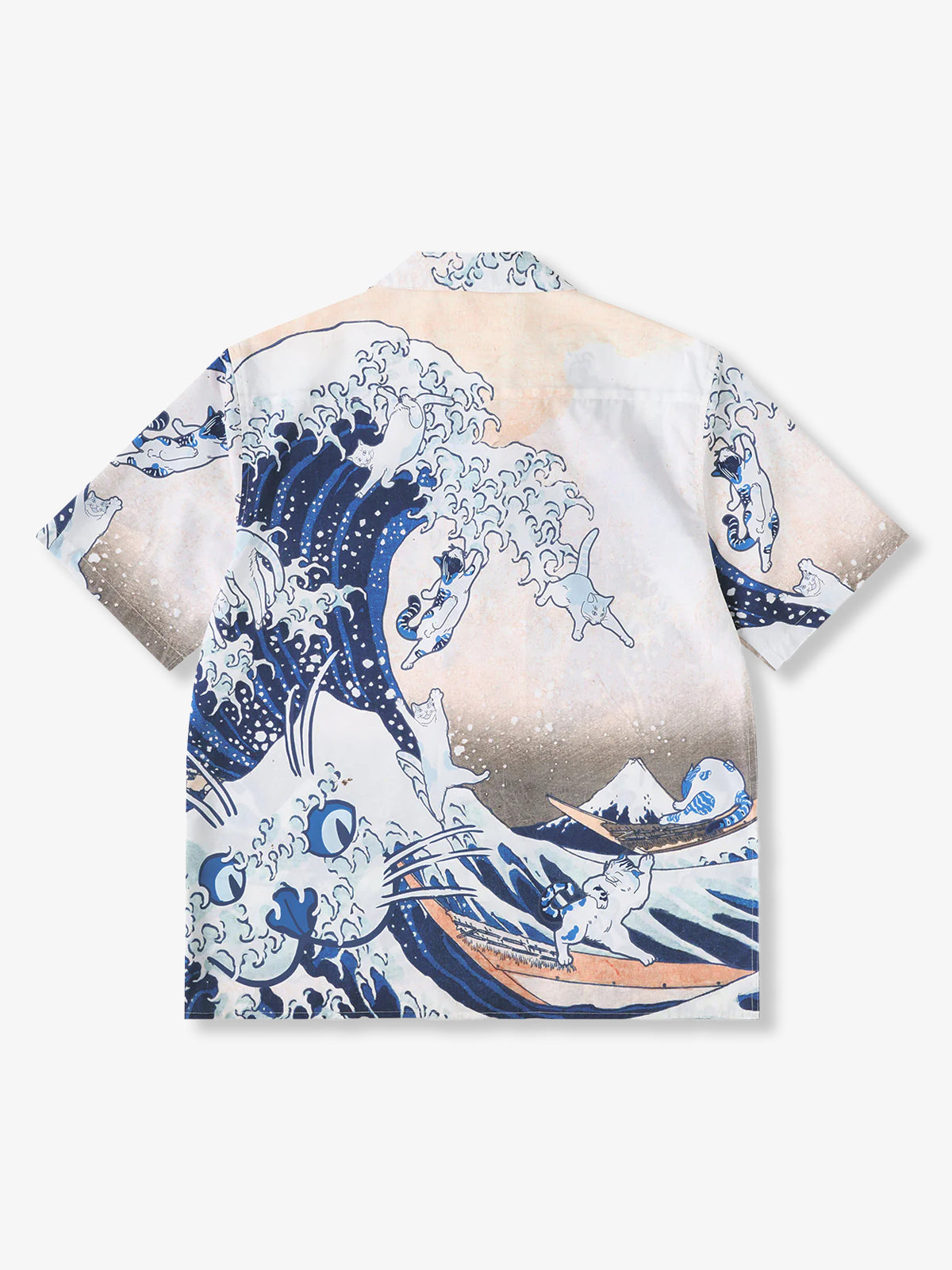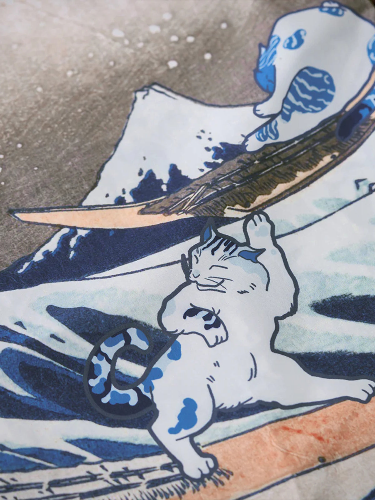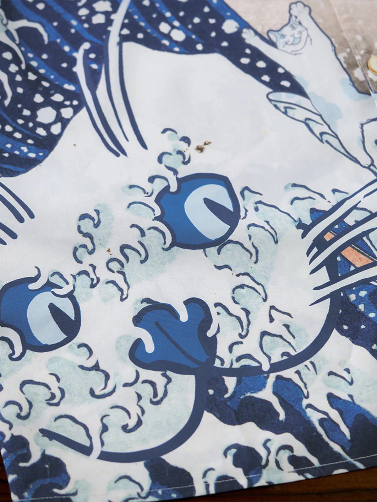 "Cats in the Great Wave" Ukiyo-e Aloha Shirt