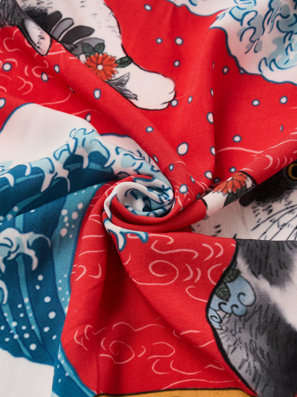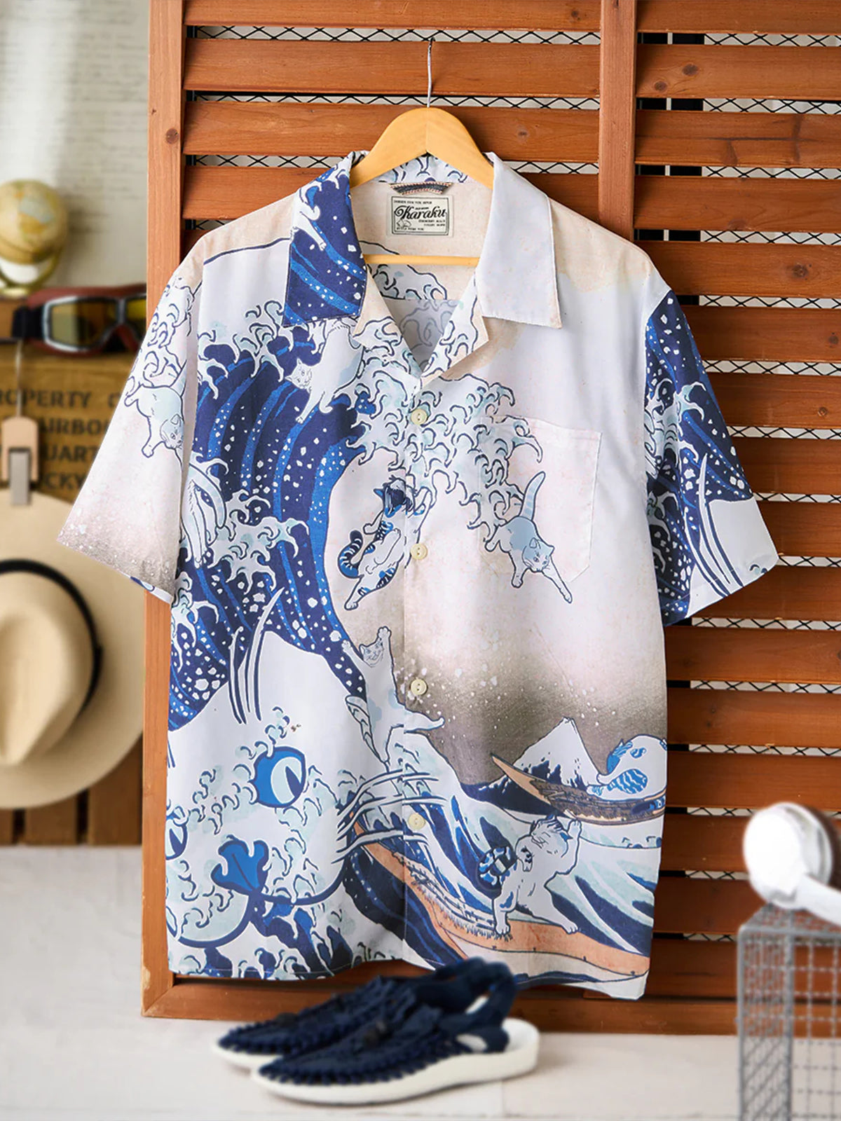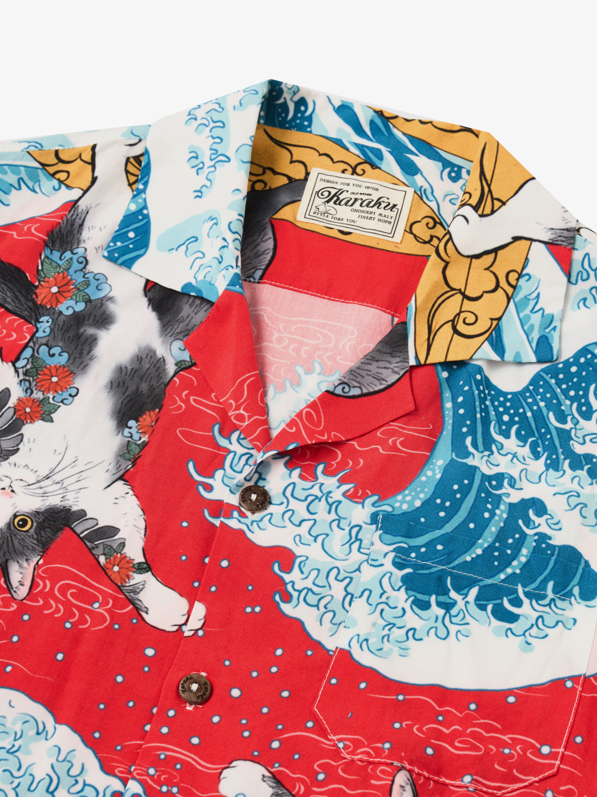 "Cats in the Great Wave" Ukiyo-e Aloha Shirt