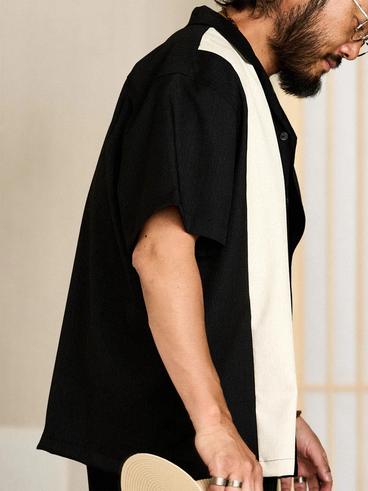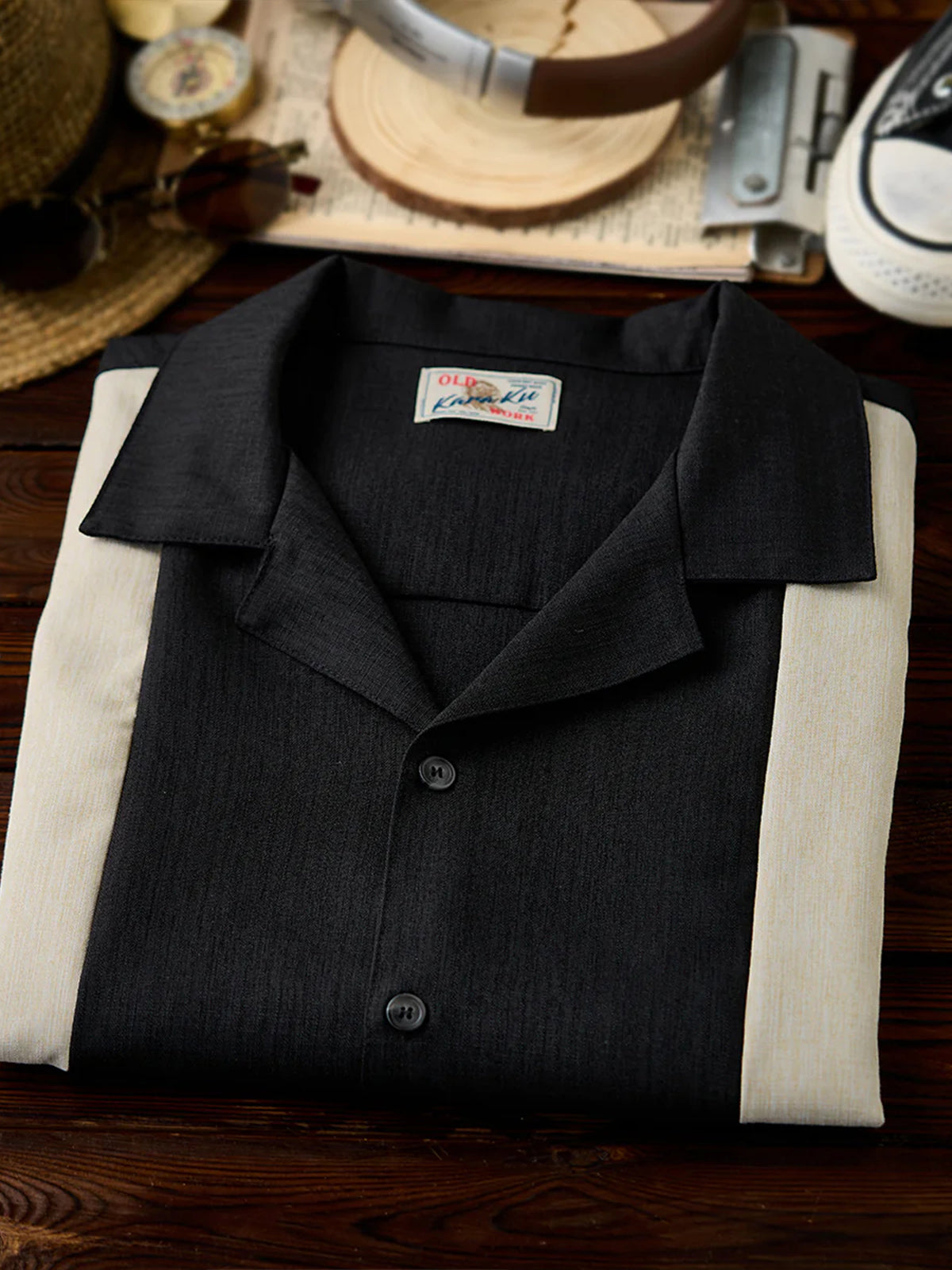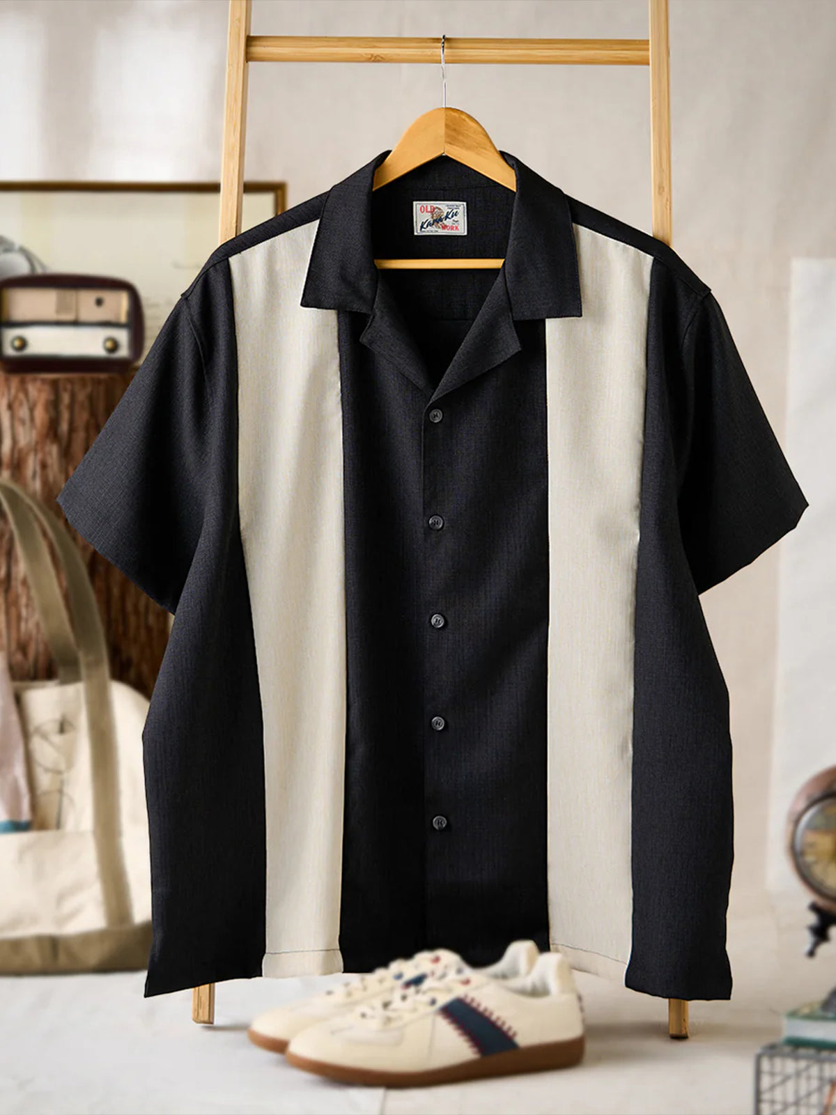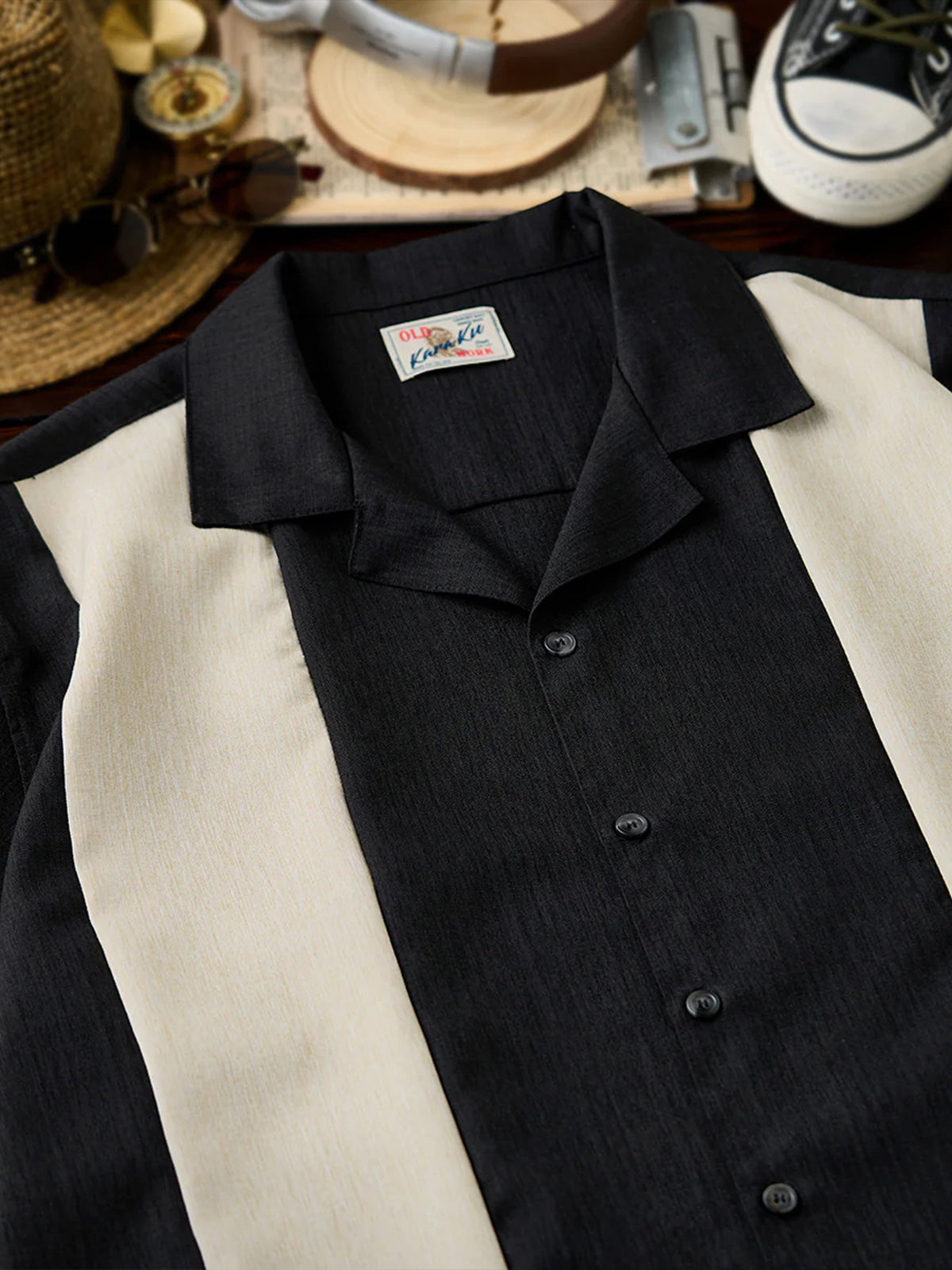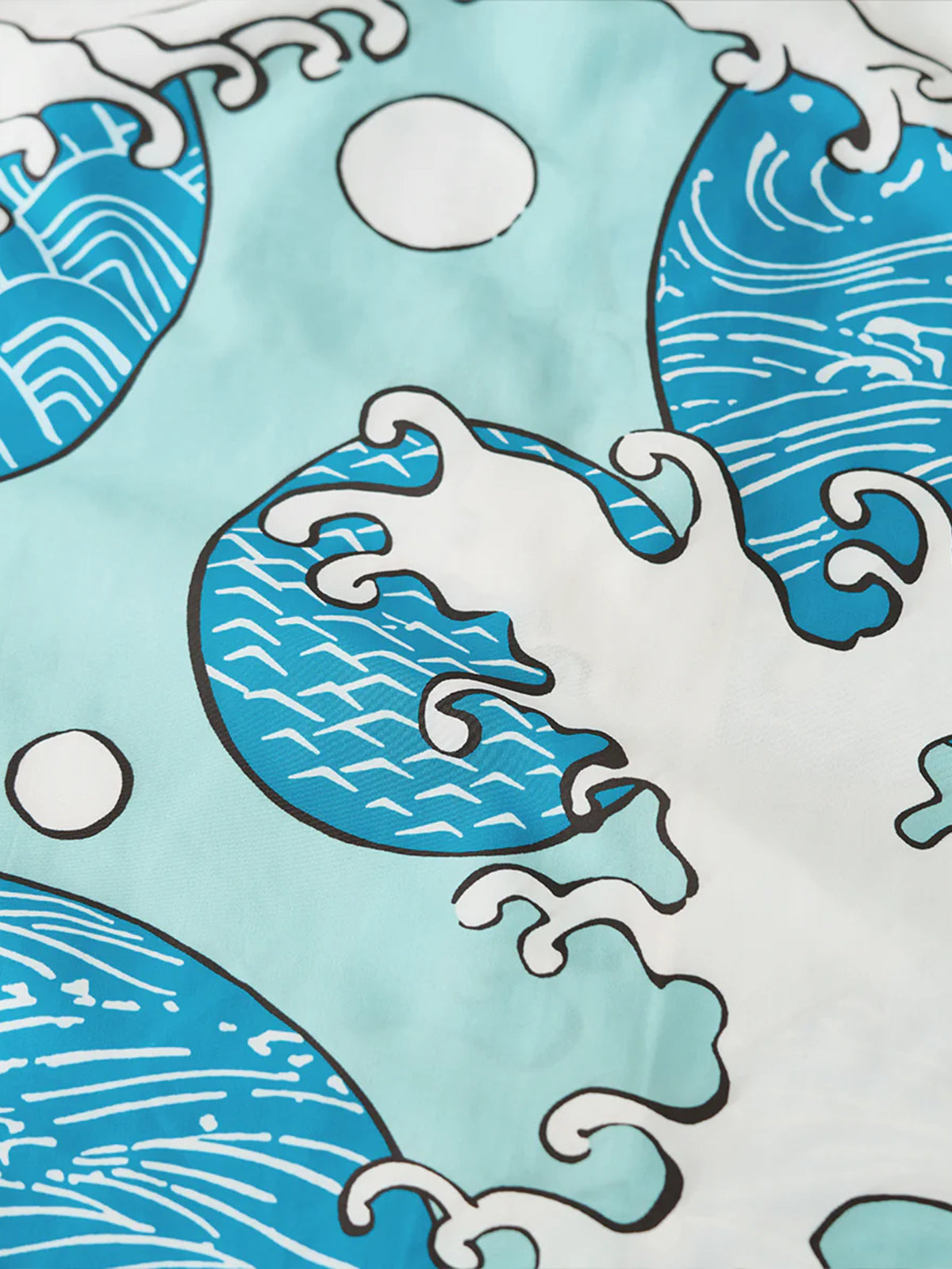 Retro Ukiyo-e Wave Design Cotton Bowling Shirt