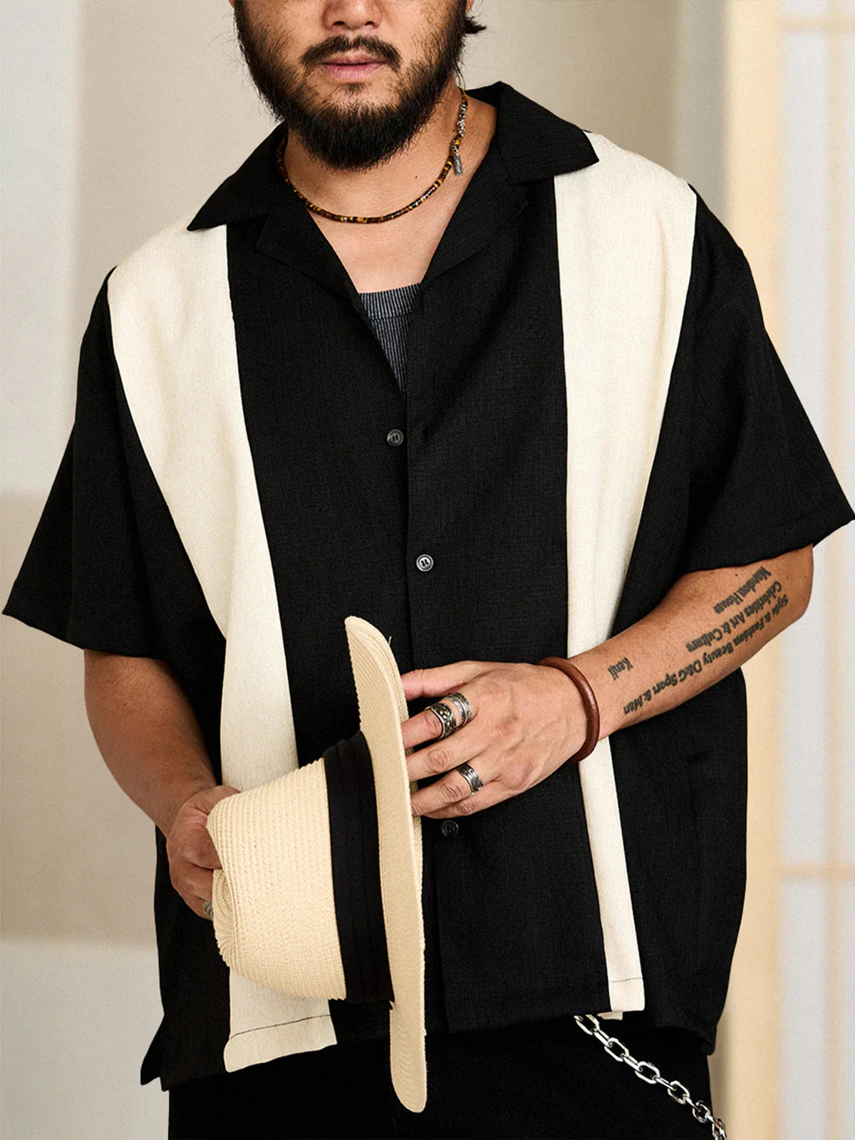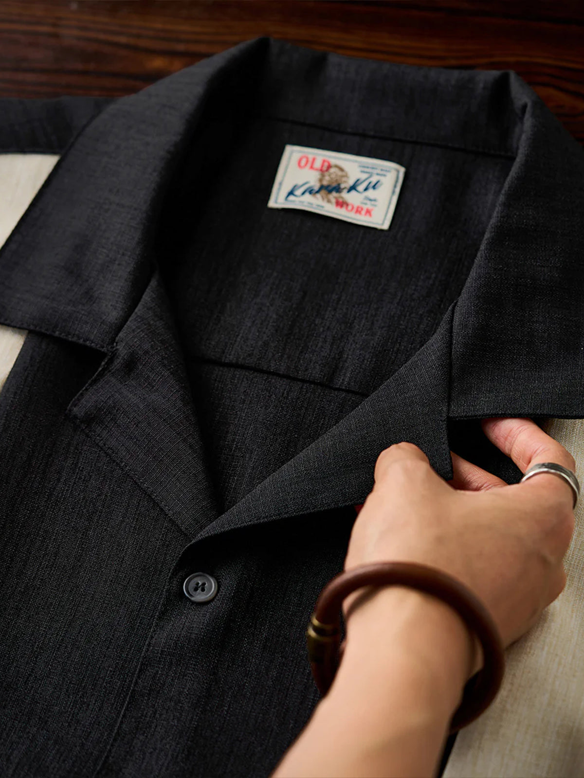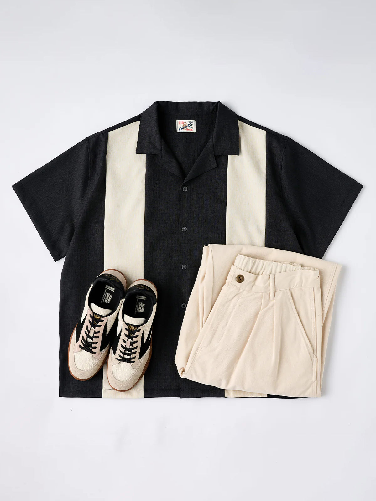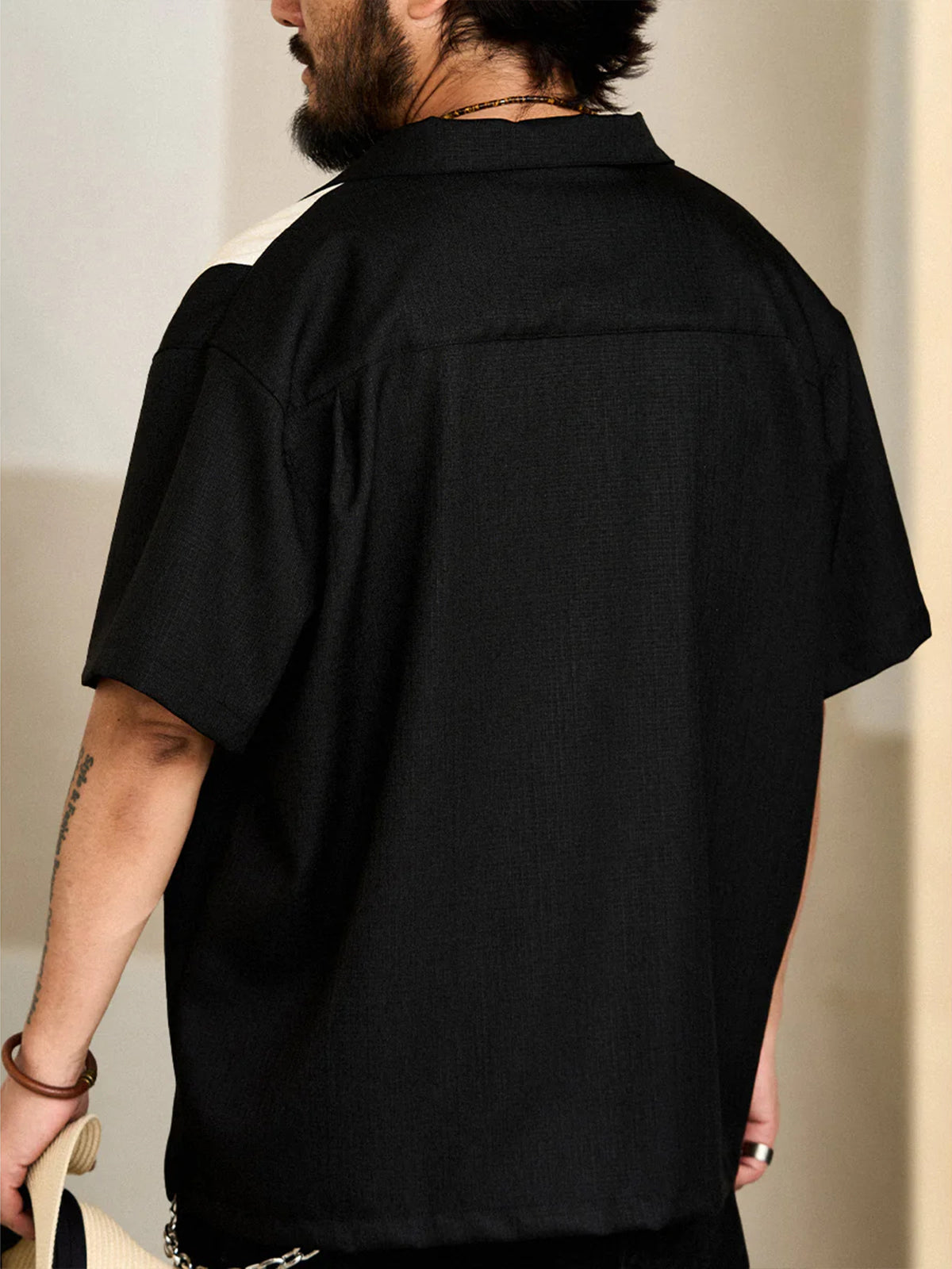 Retro Ukiyo-e Wave Design Cotton Bowling Shirt