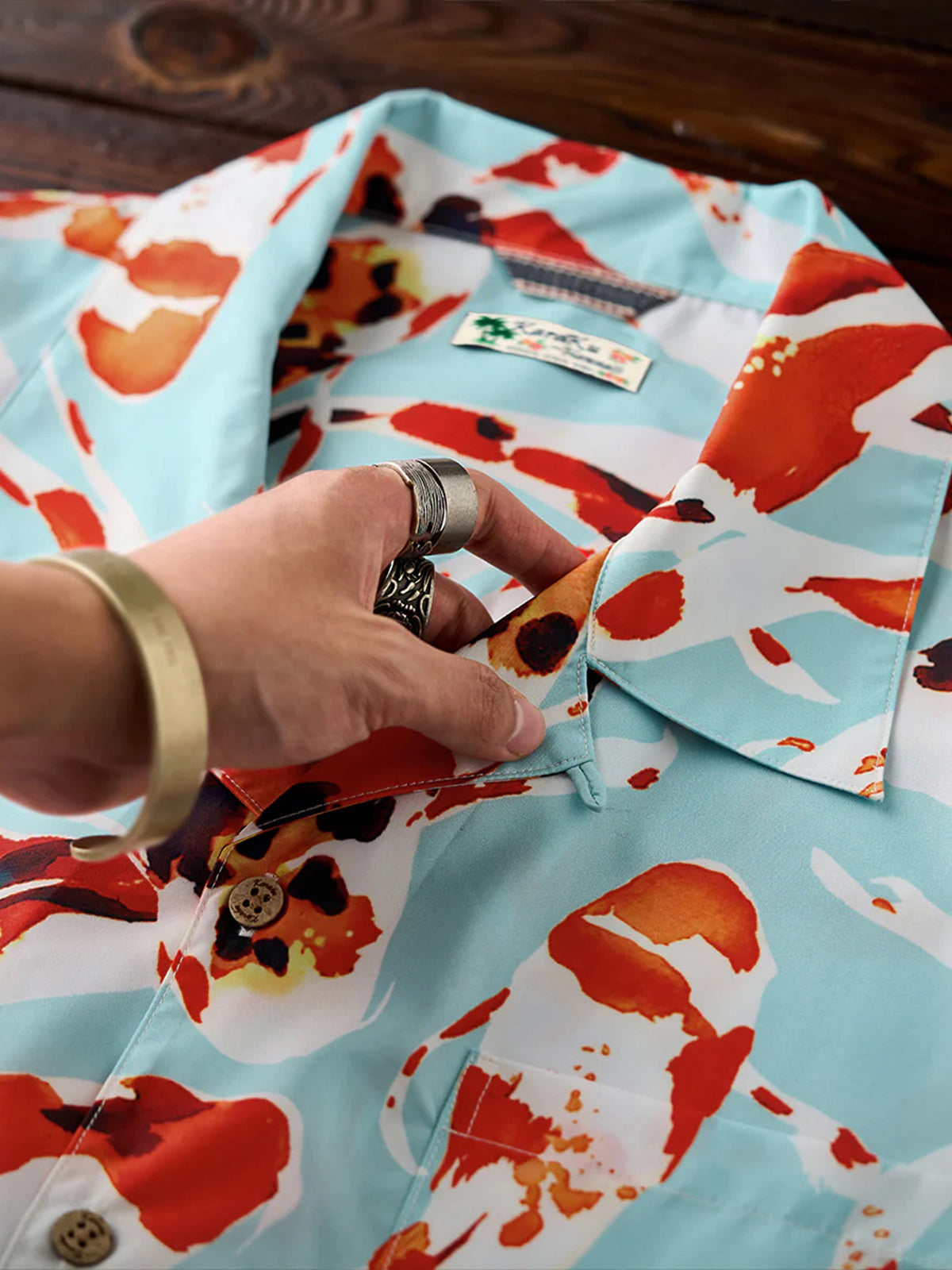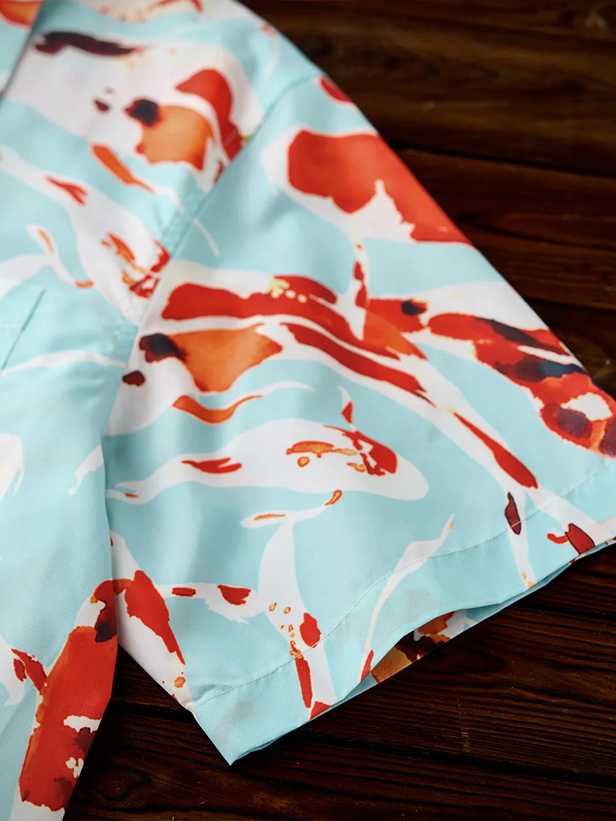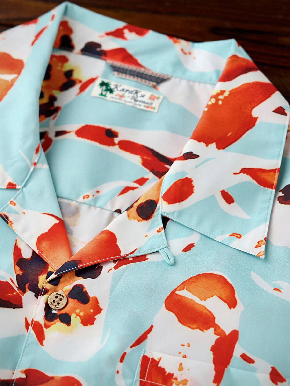 "Red & White,Taisho Three Colors, Showa Three Colors" Nishiki Koi Pattern Open Collar Shirt