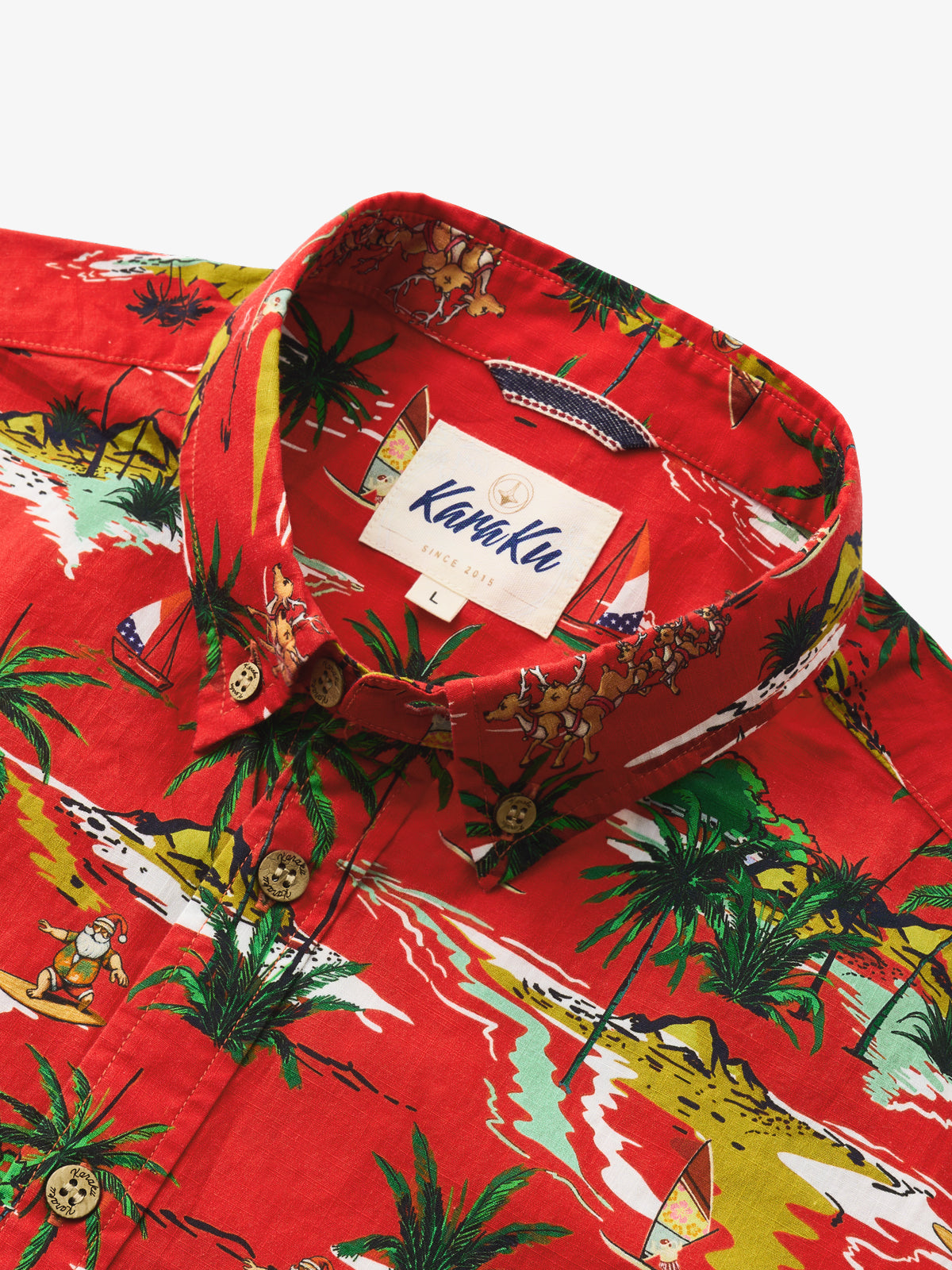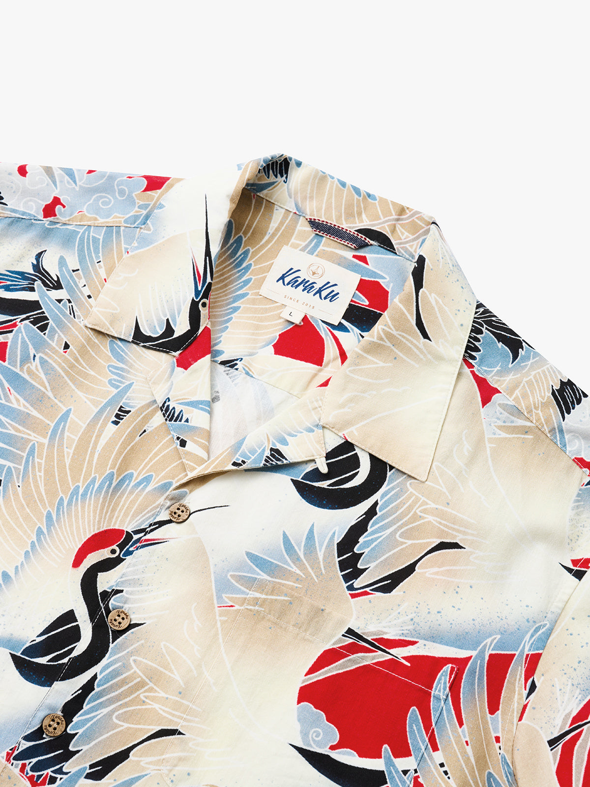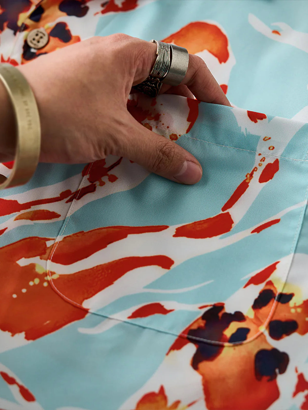 "Red & White,Taisho Three Colors, Showa Three Colors" Nishiki Koi Pattern Open Collar Shirt