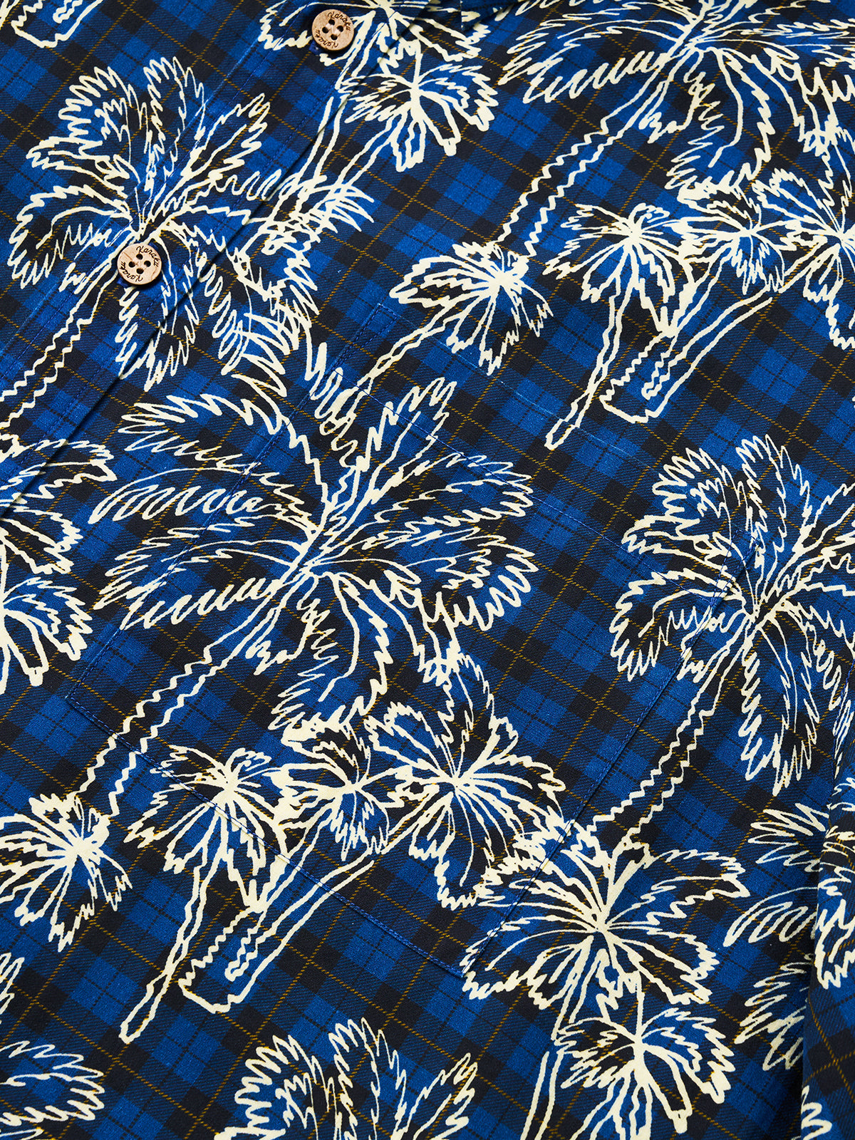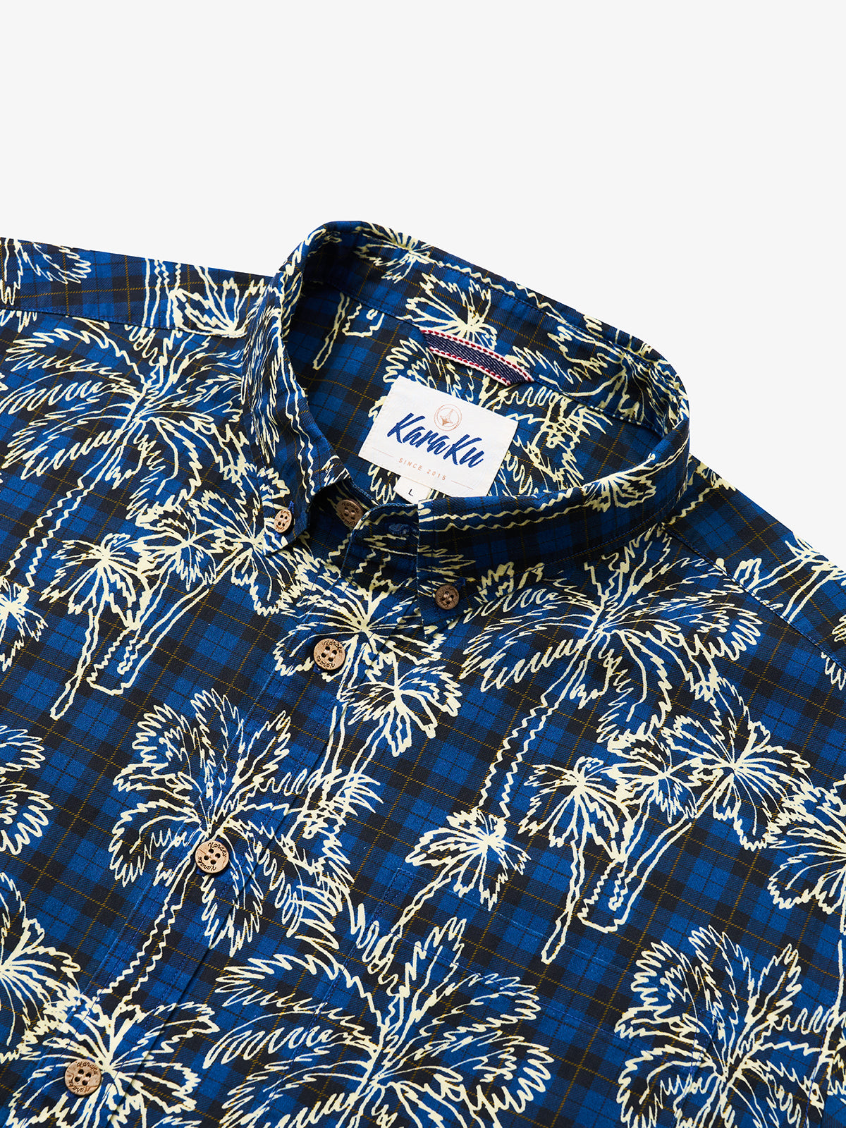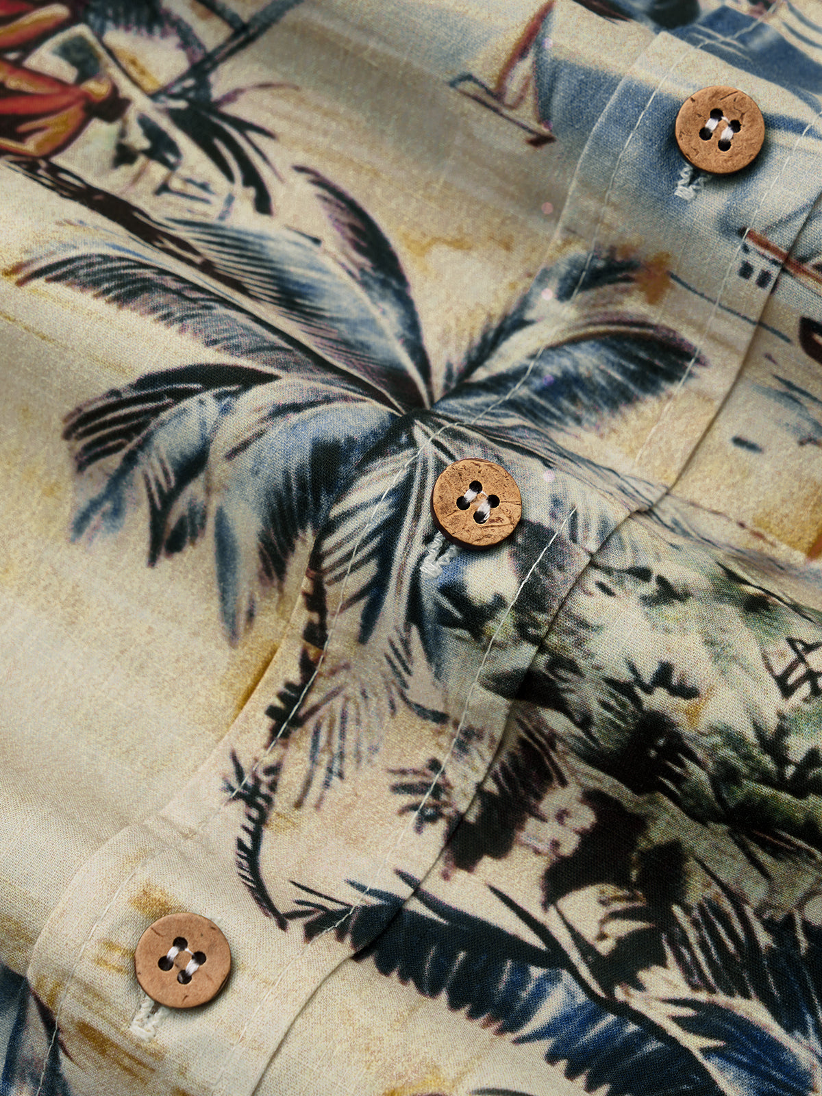 Vintage Tropic Plaid Coconut Tree Cotton Shirt