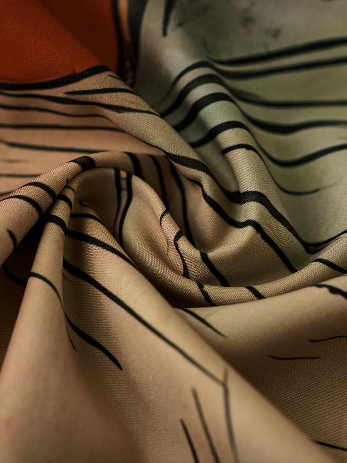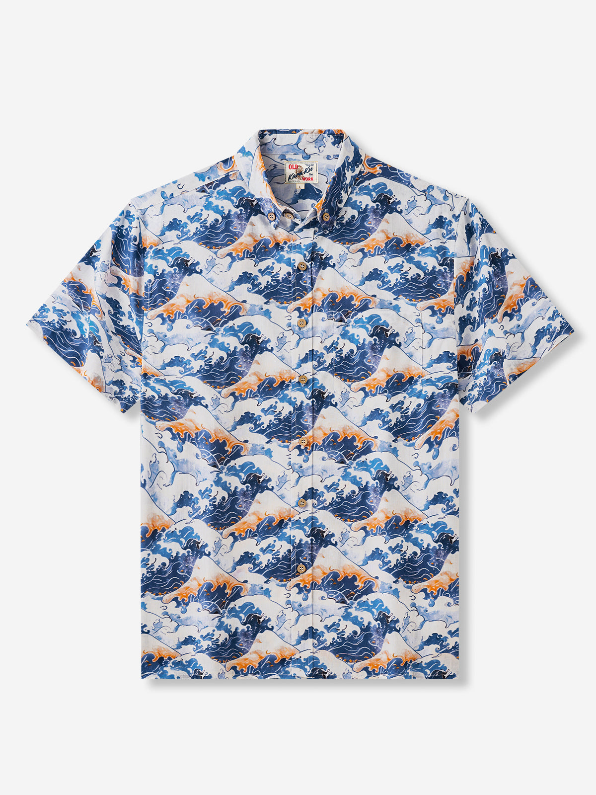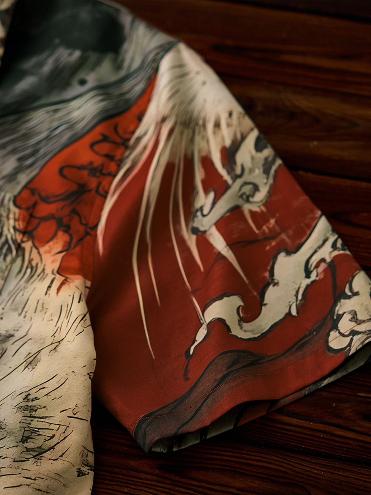 Ukiyo-e Inspired Volcanoes & Waves Cotton Shirt
