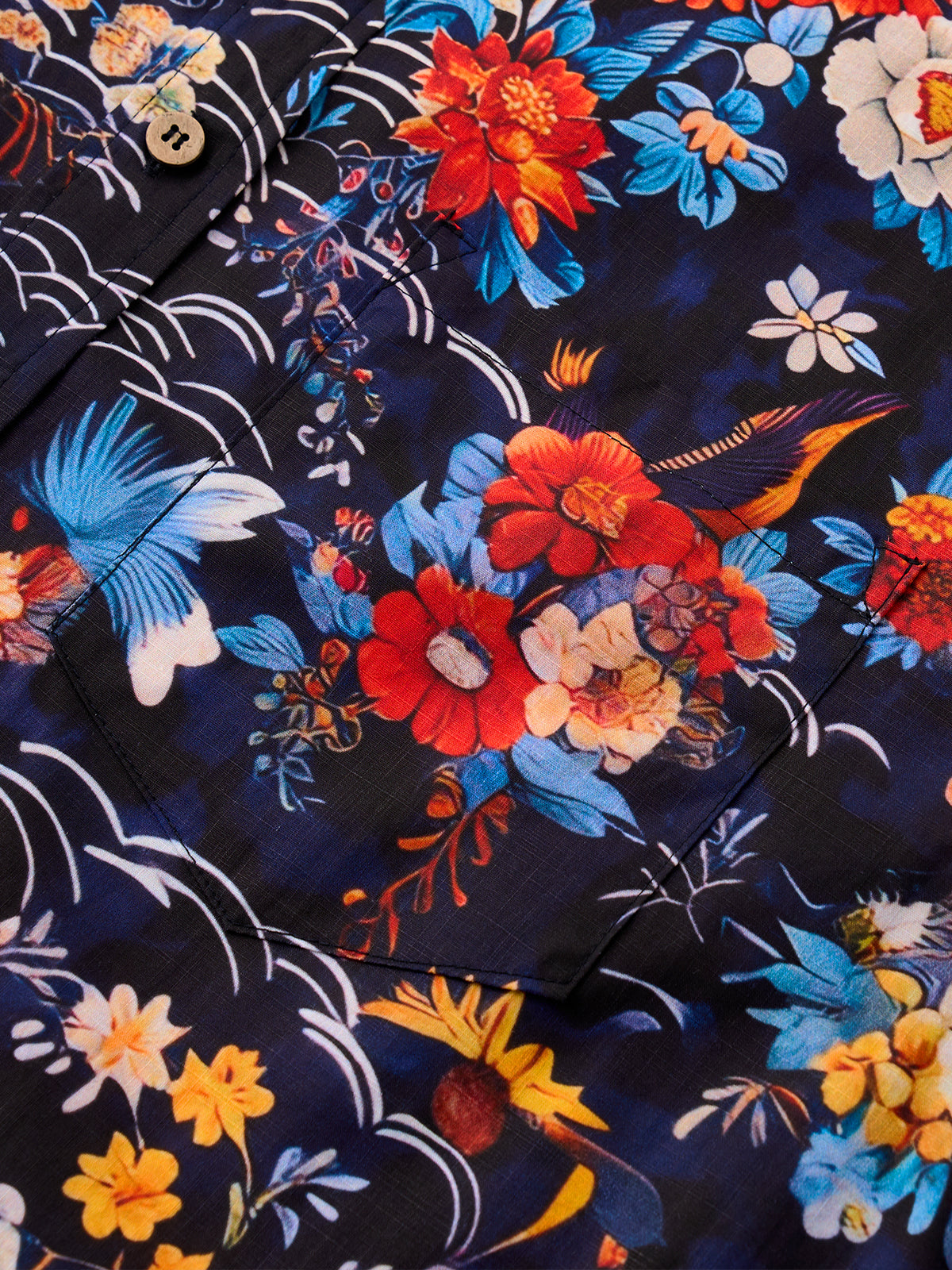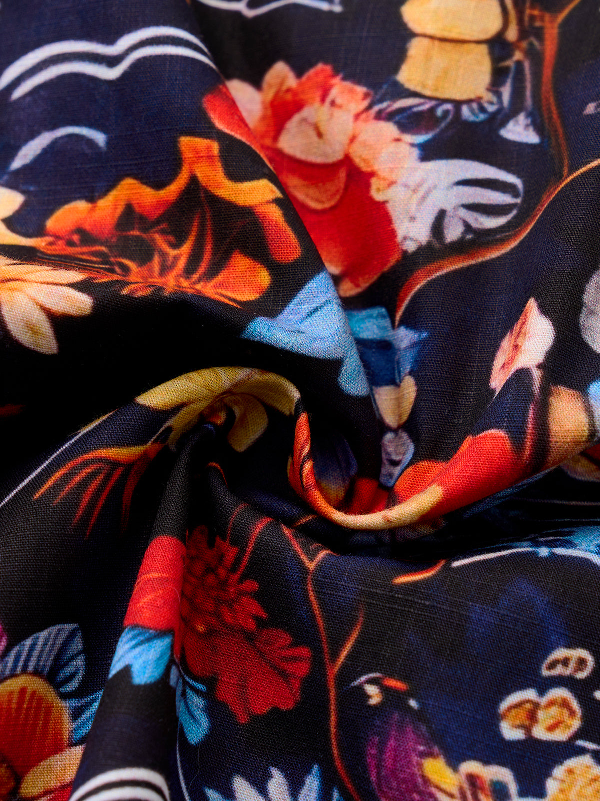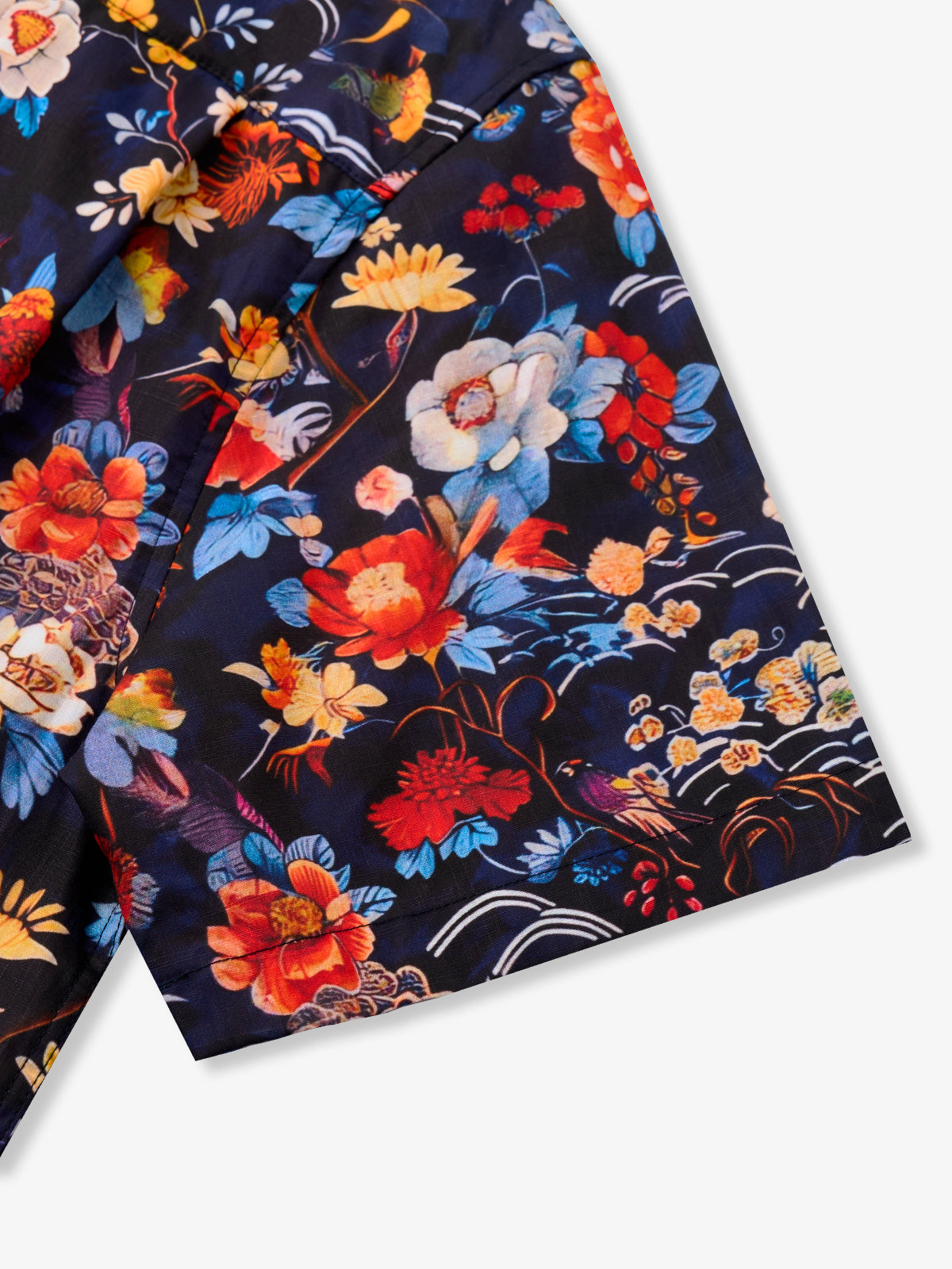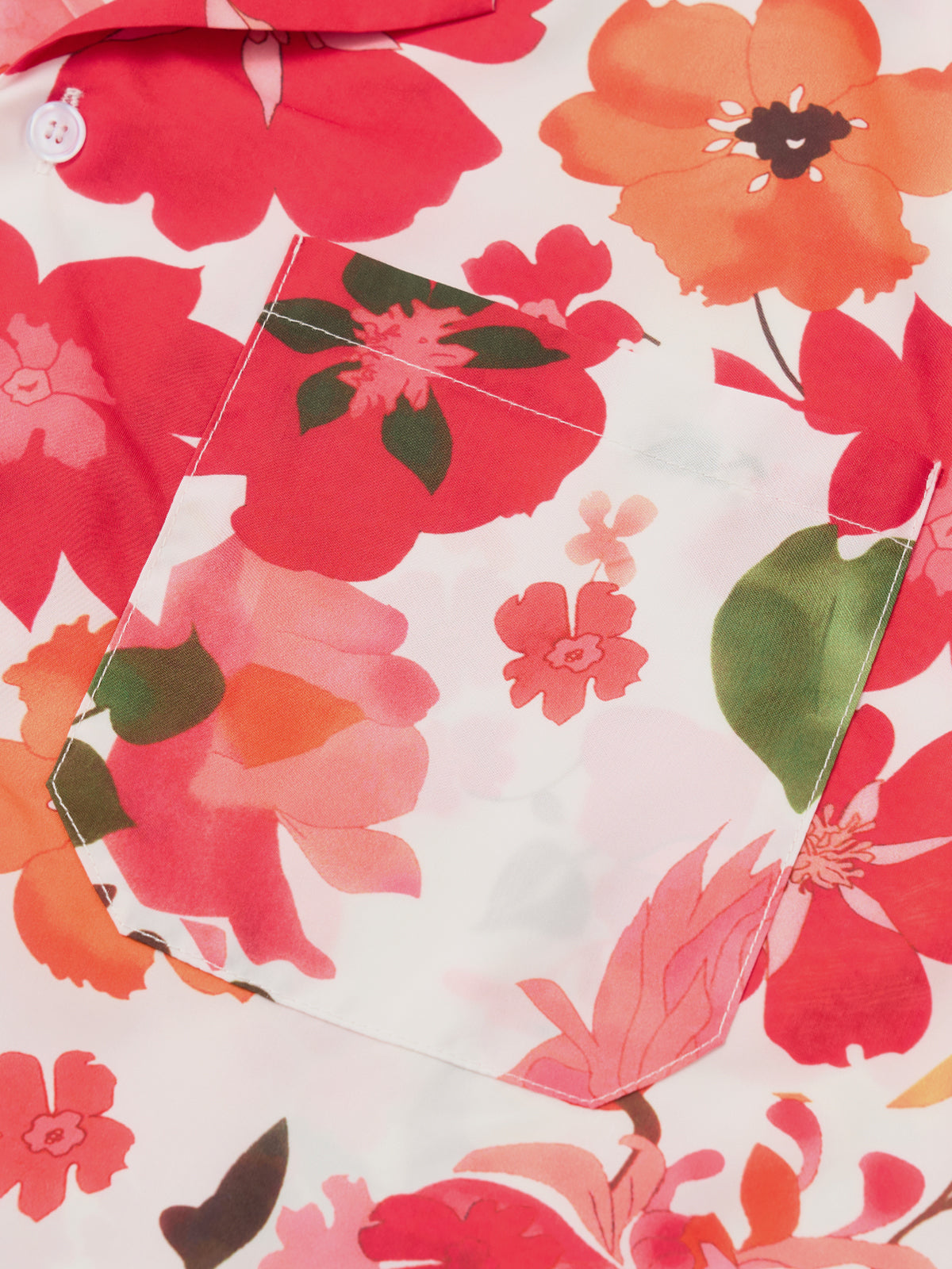 Resort Vibrant Floral Print Cotton Camp Shirt