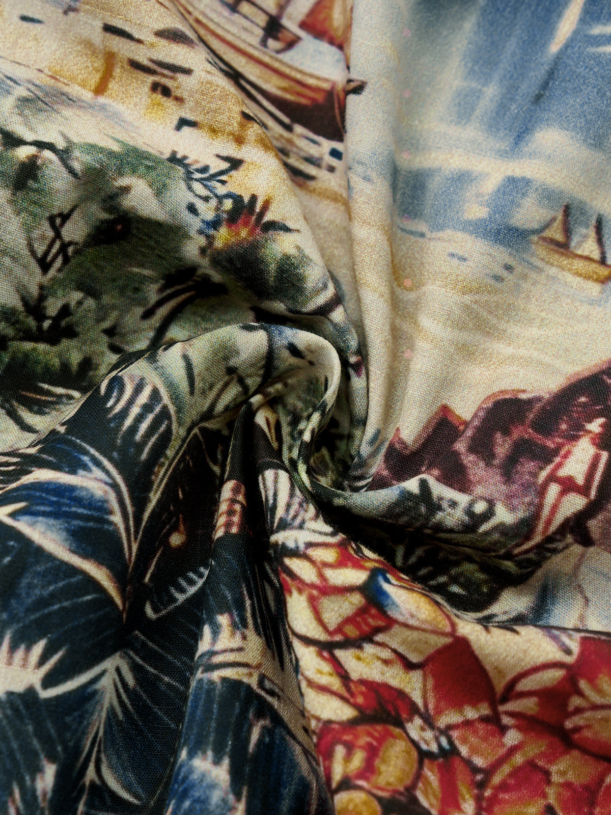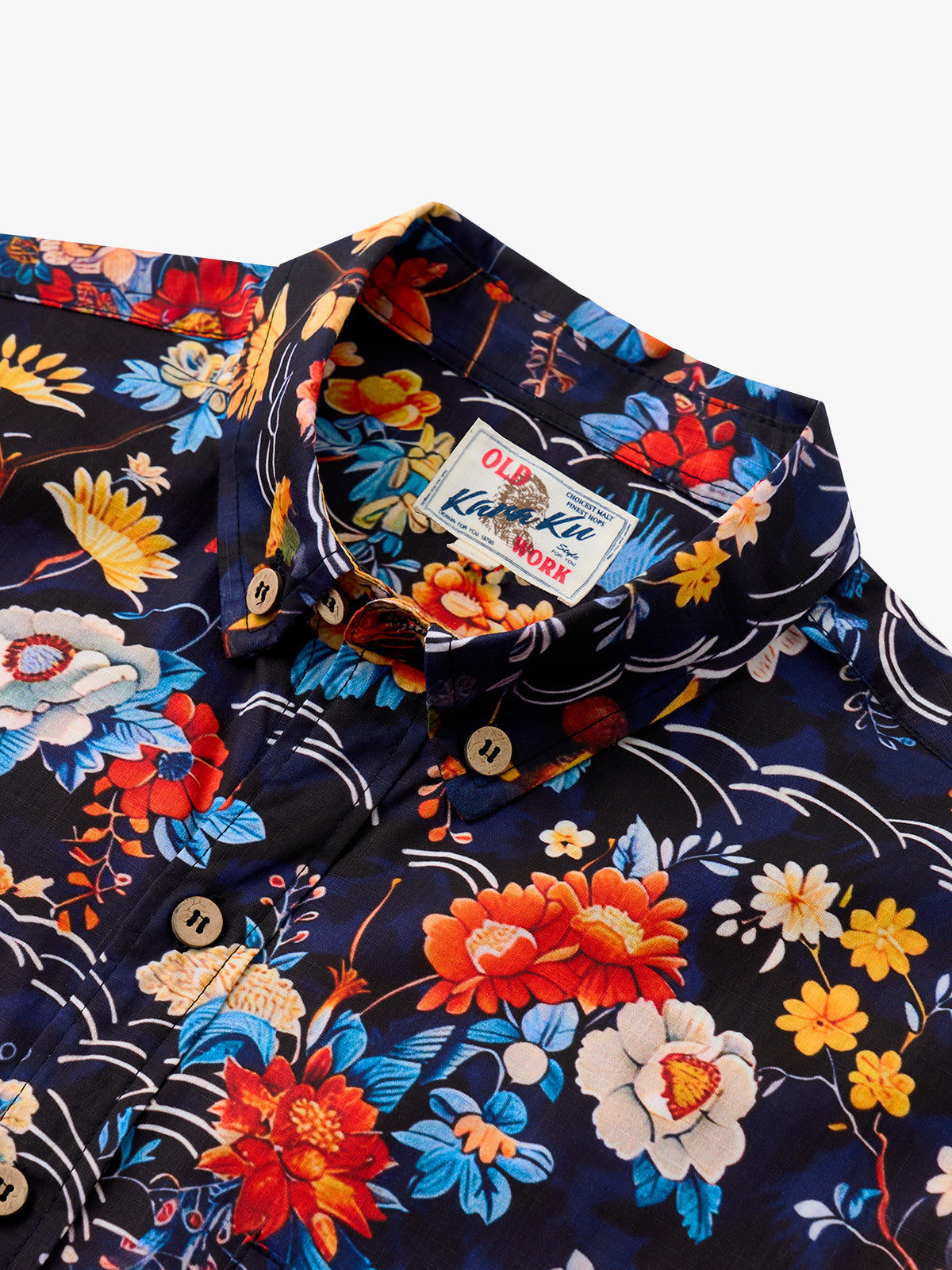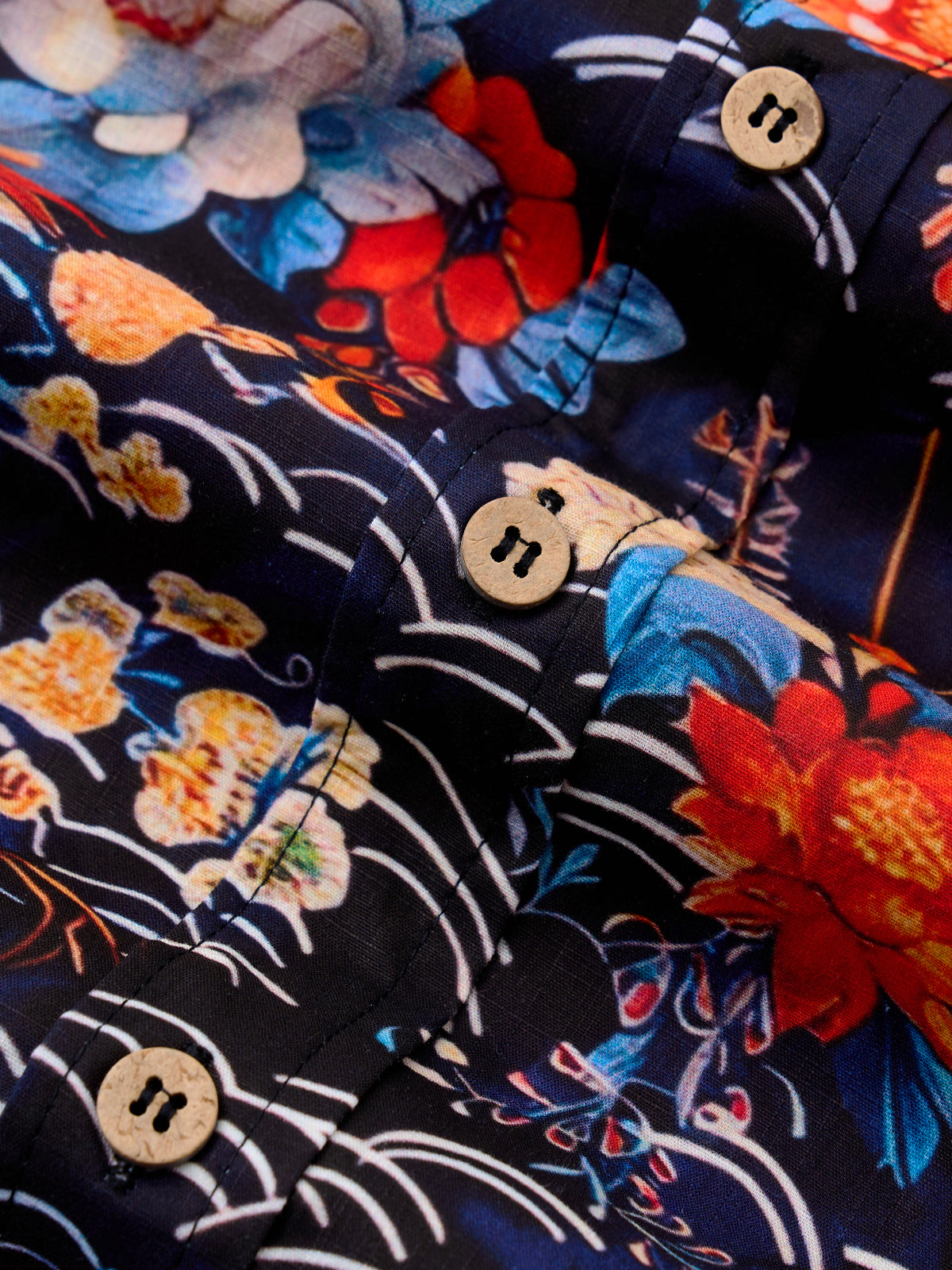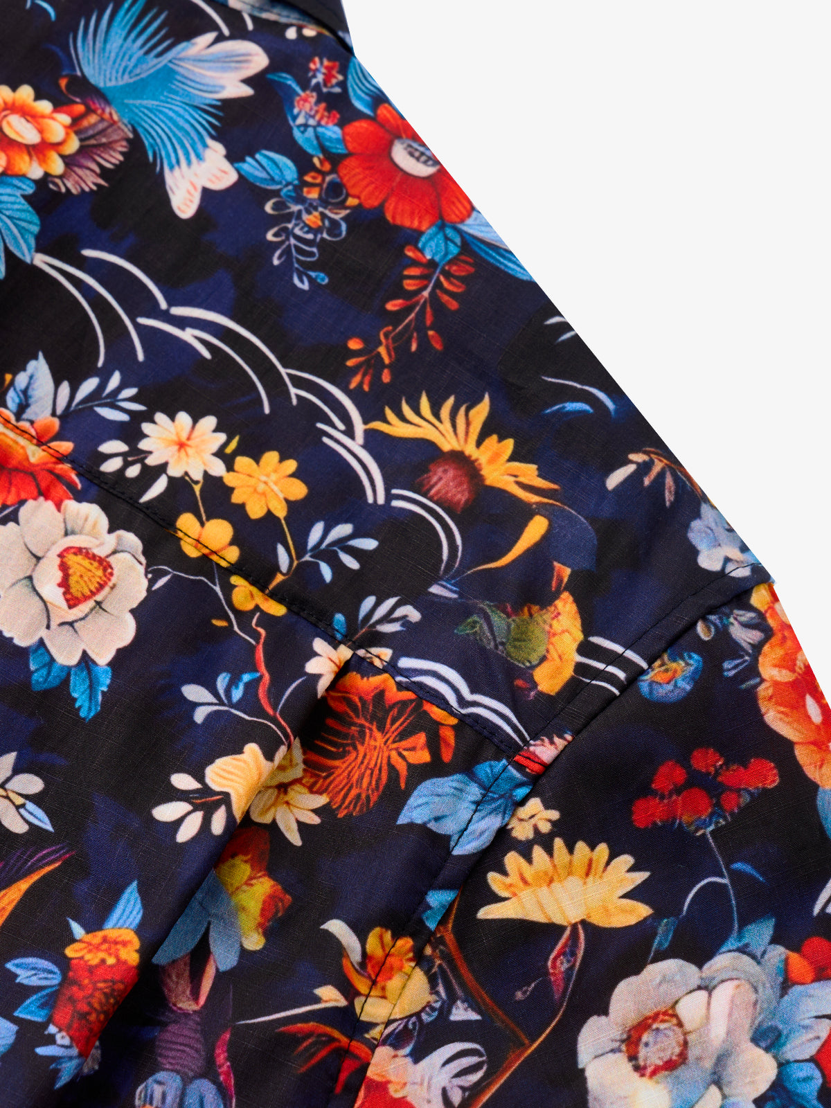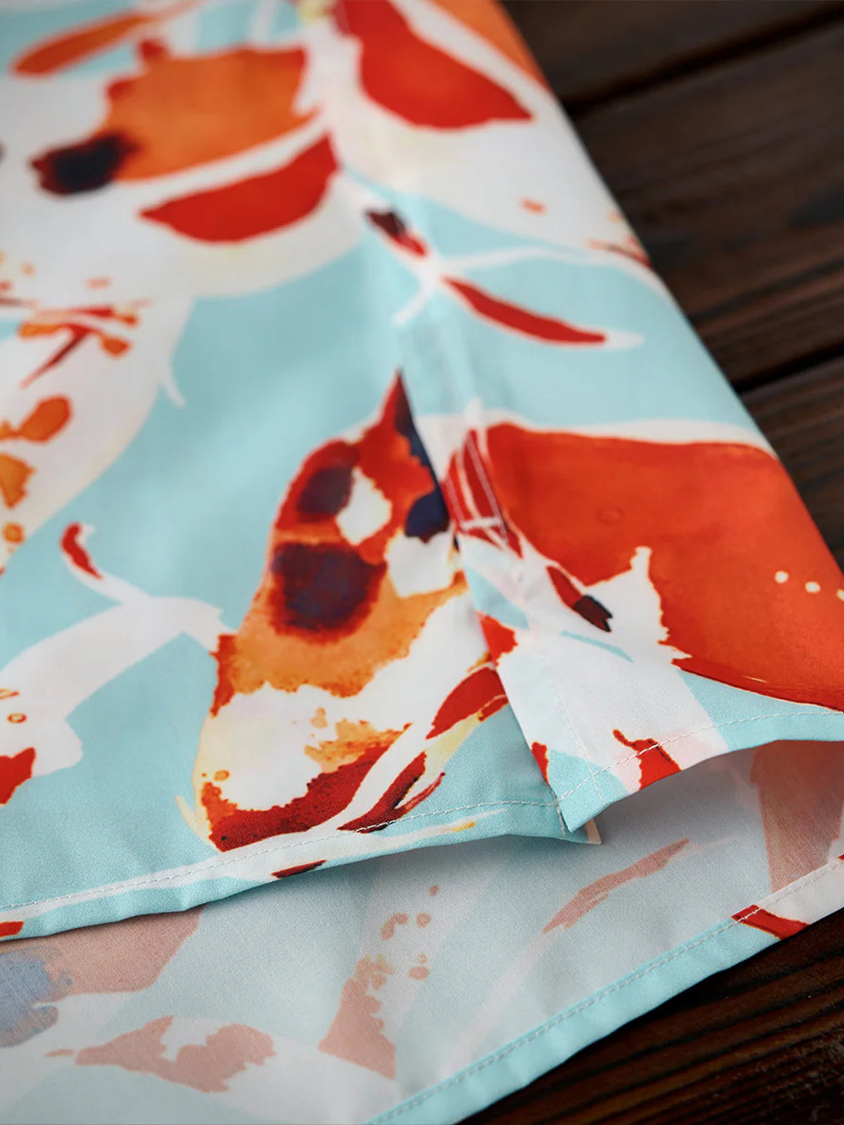 Resort Vibrant Floral Print Cotton Camp Shirt