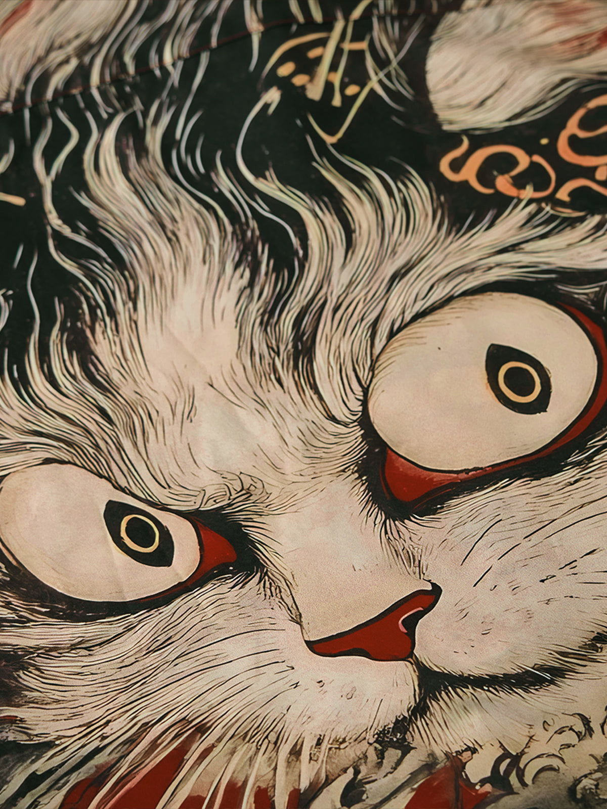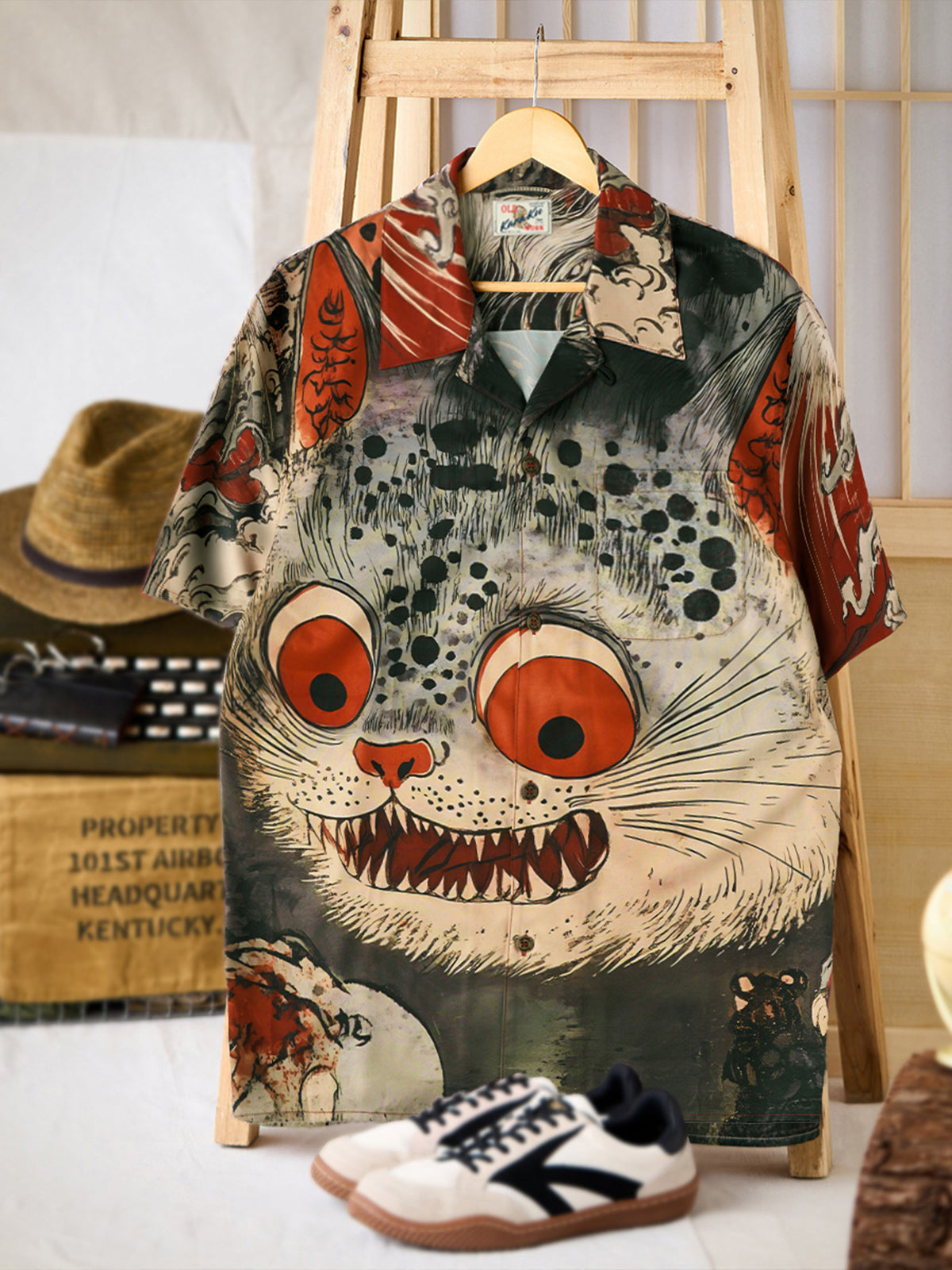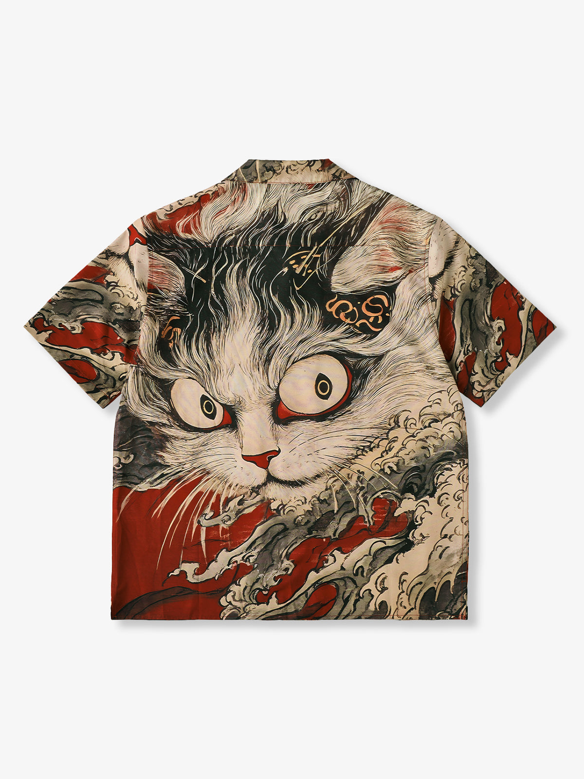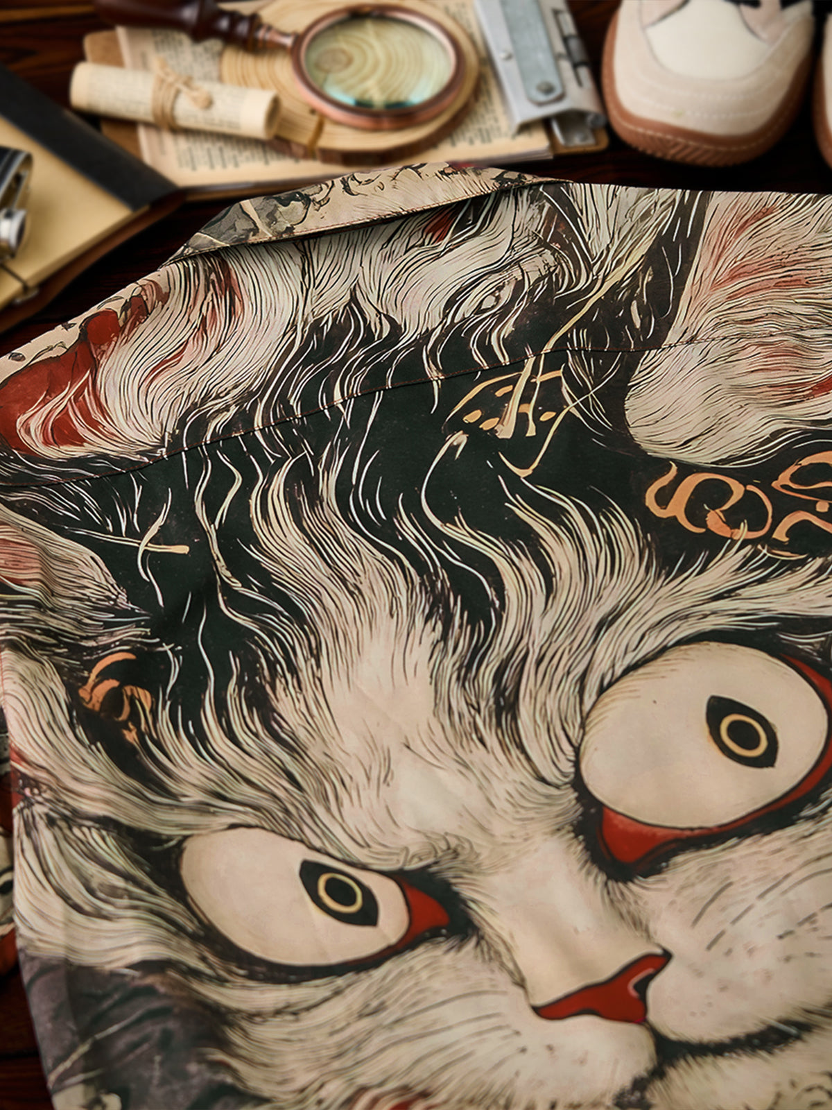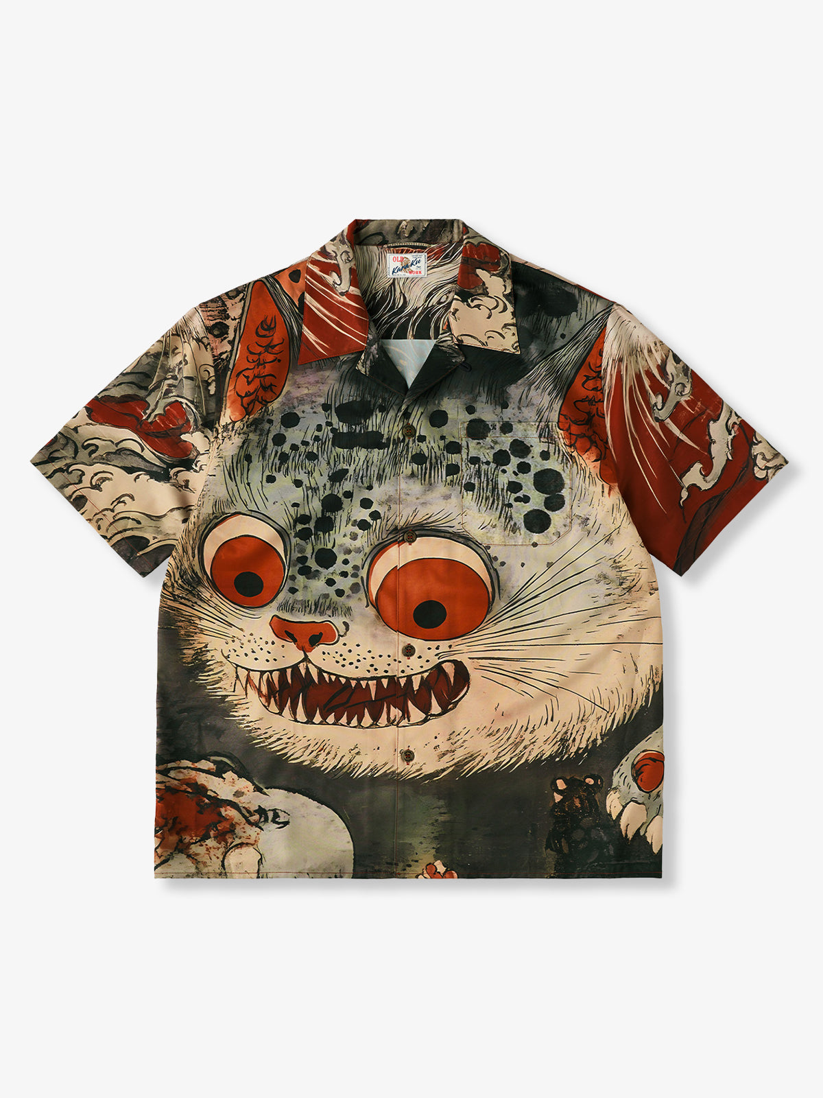 Folklore "Ghost Cat" Ukiyo-e style Open Collar Shirt