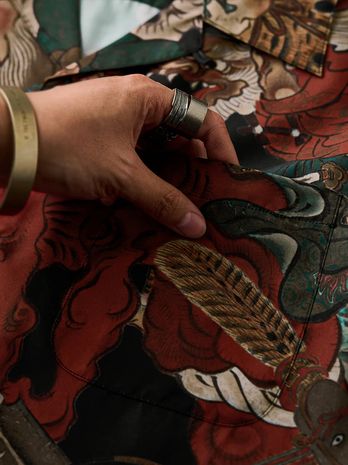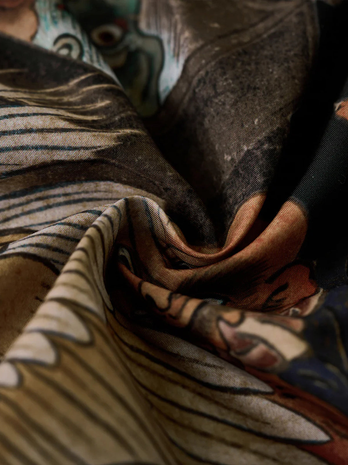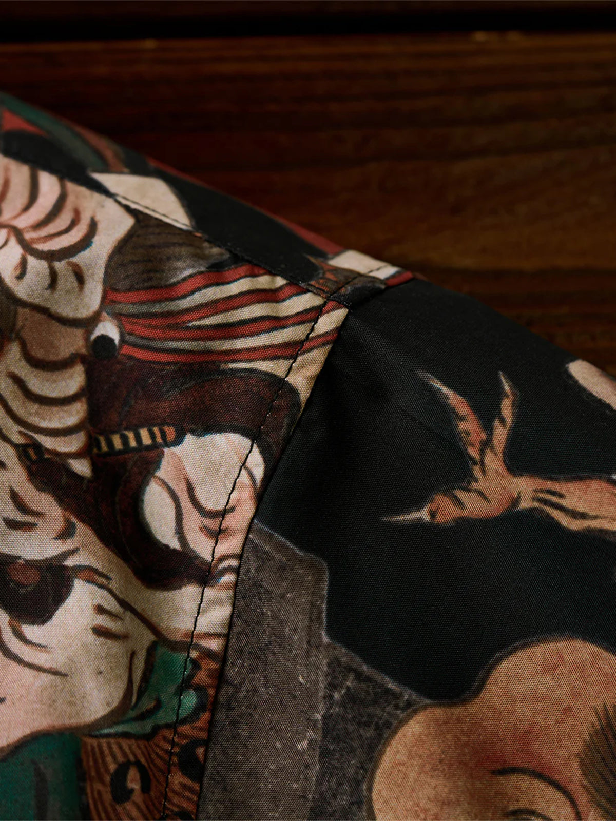 Ukiyo-E Auspicious Pictures Cotton Camp Shirt