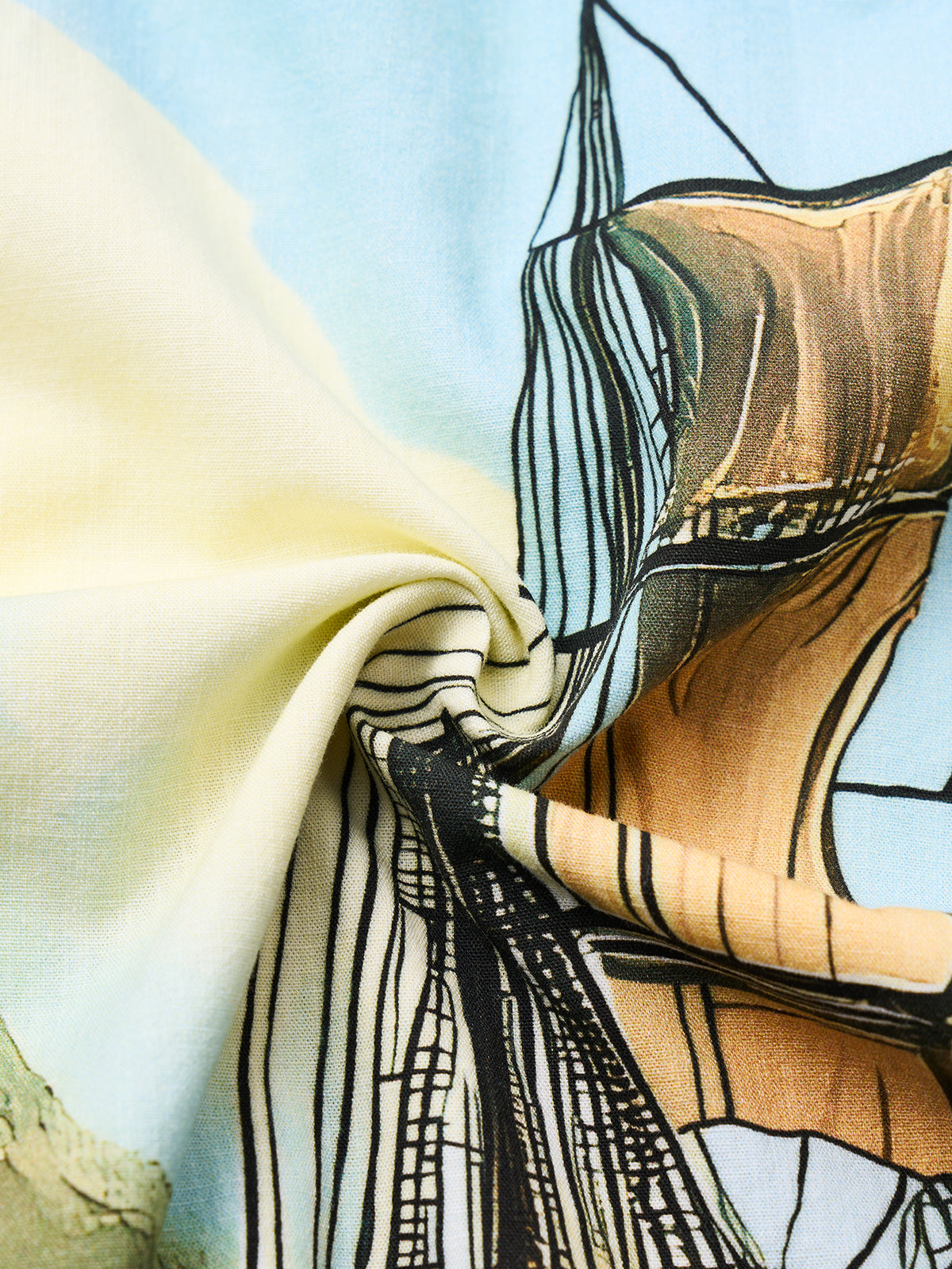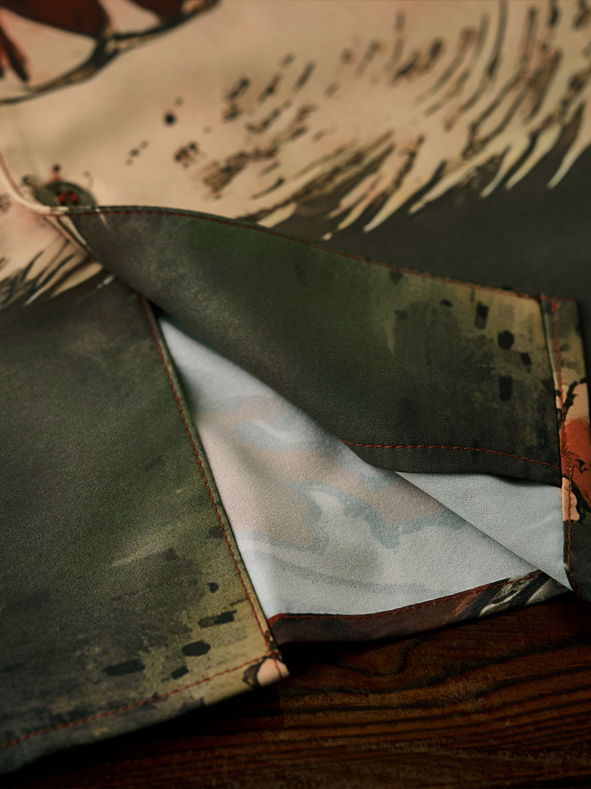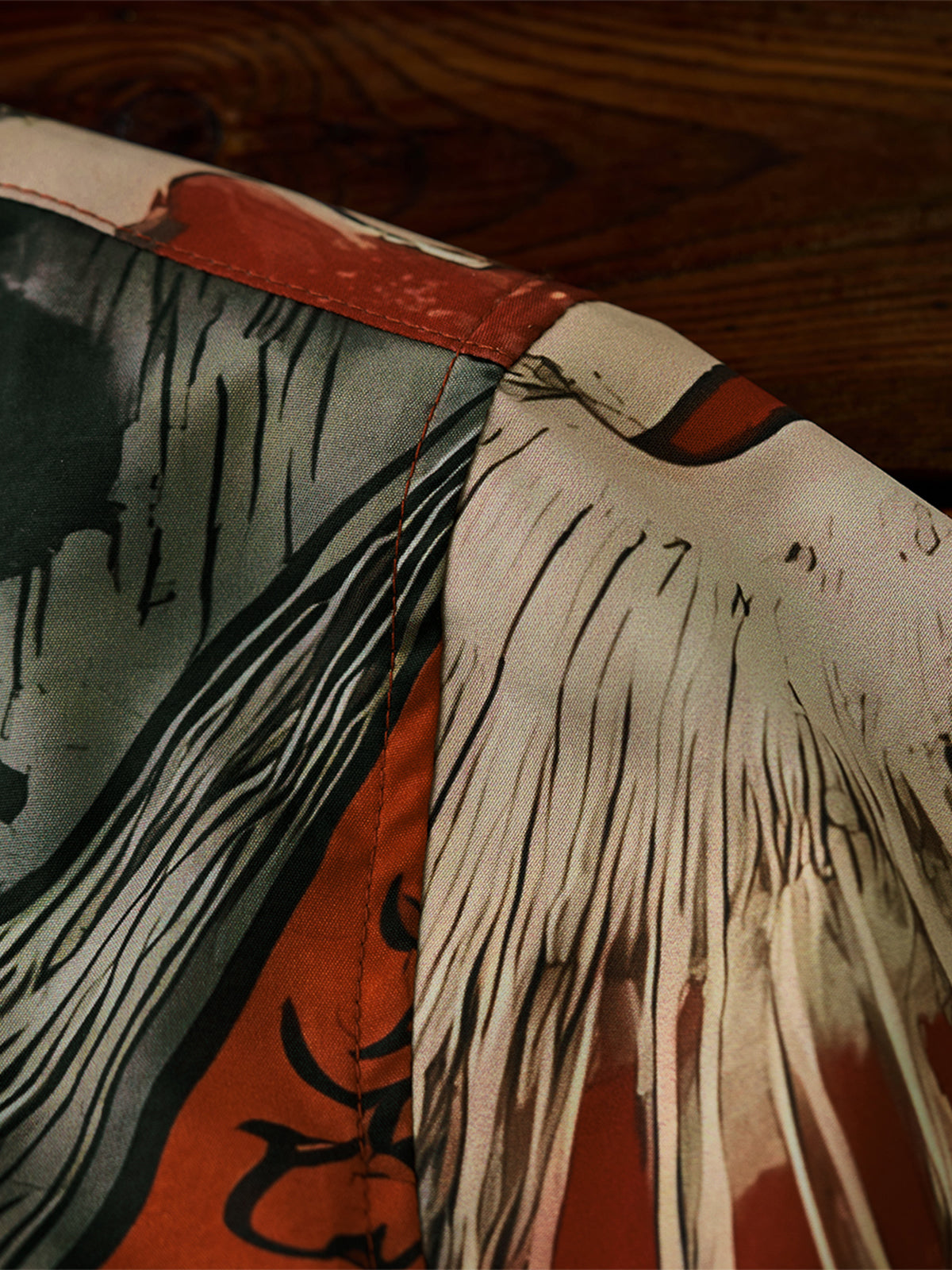 Ukiyo-E Auspicious Pictures Cotton Camp Shirt