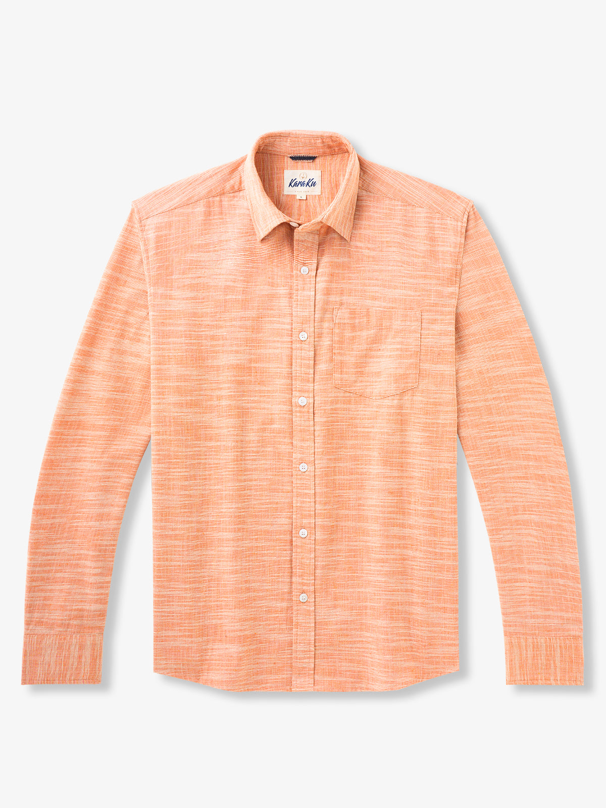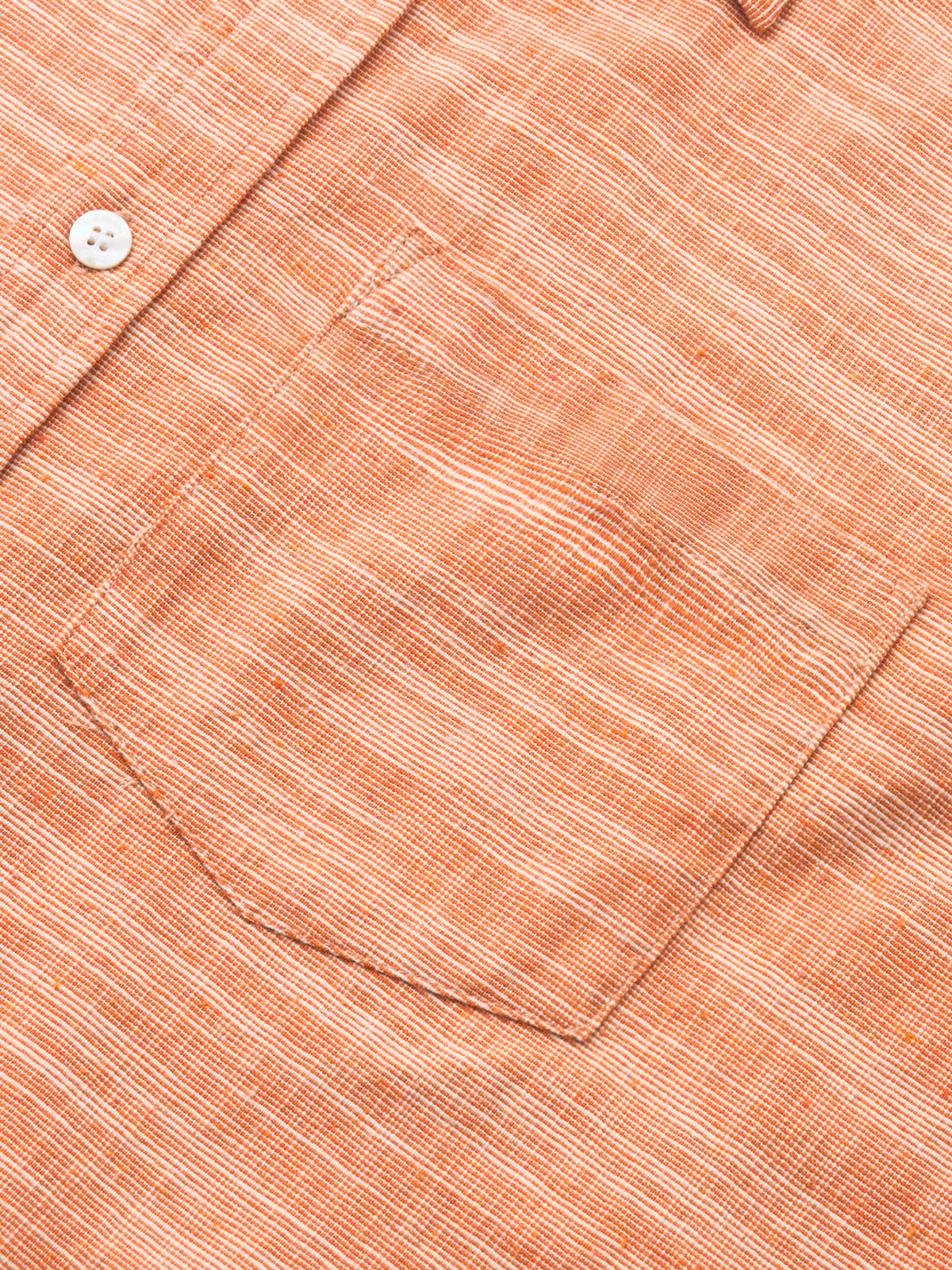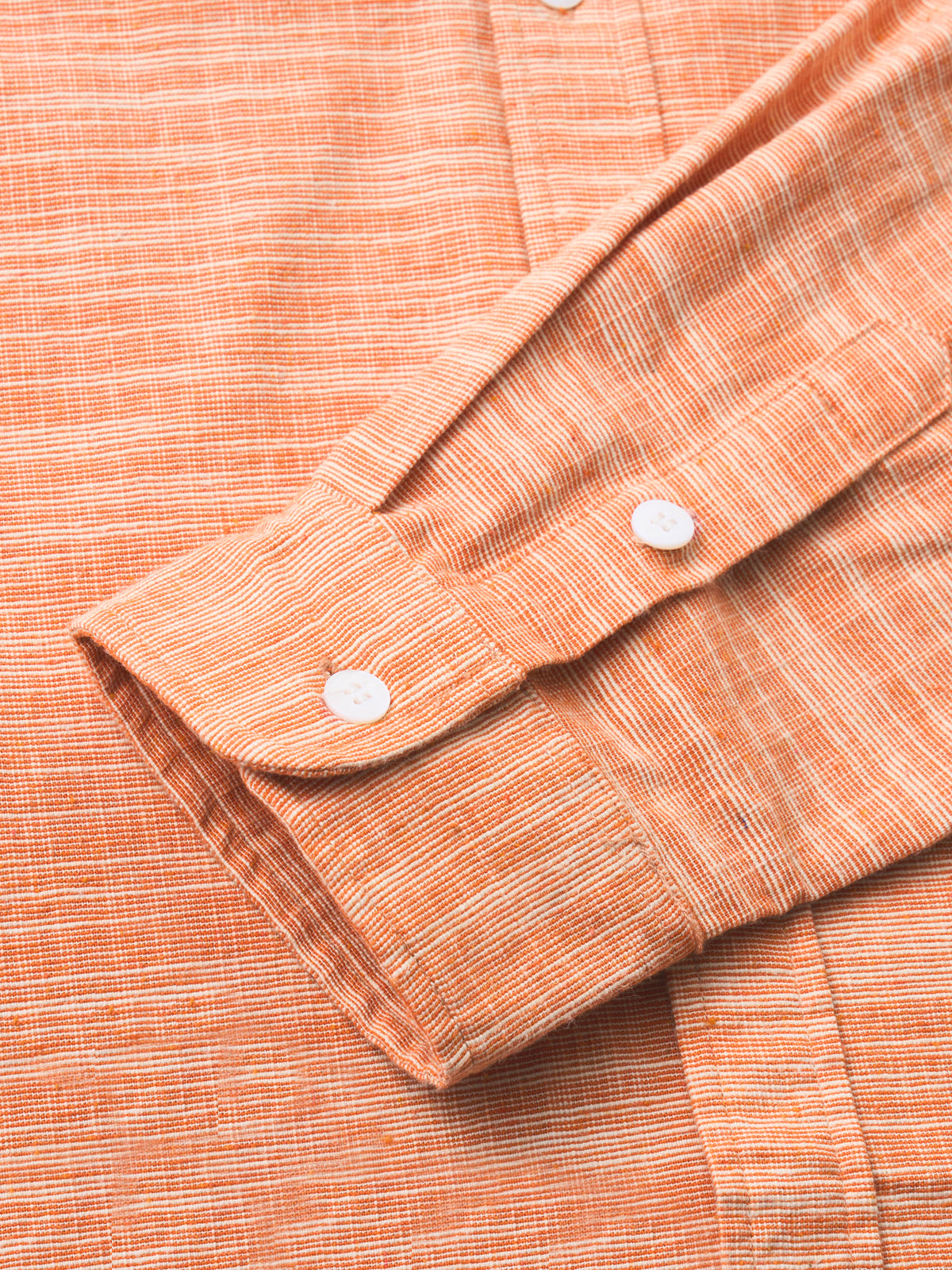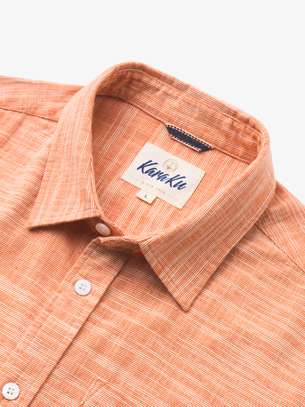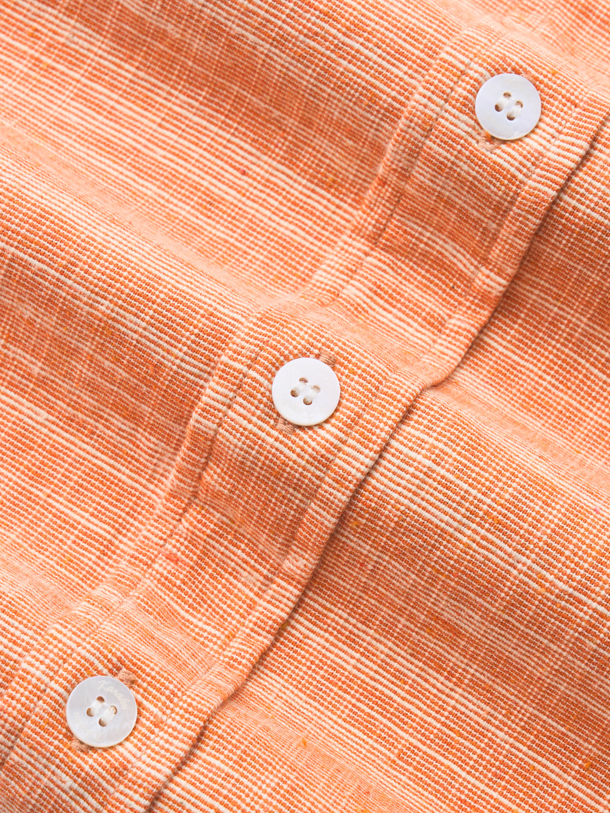 Vintage-Inspired Casual Orange Cotton Linen Shirt