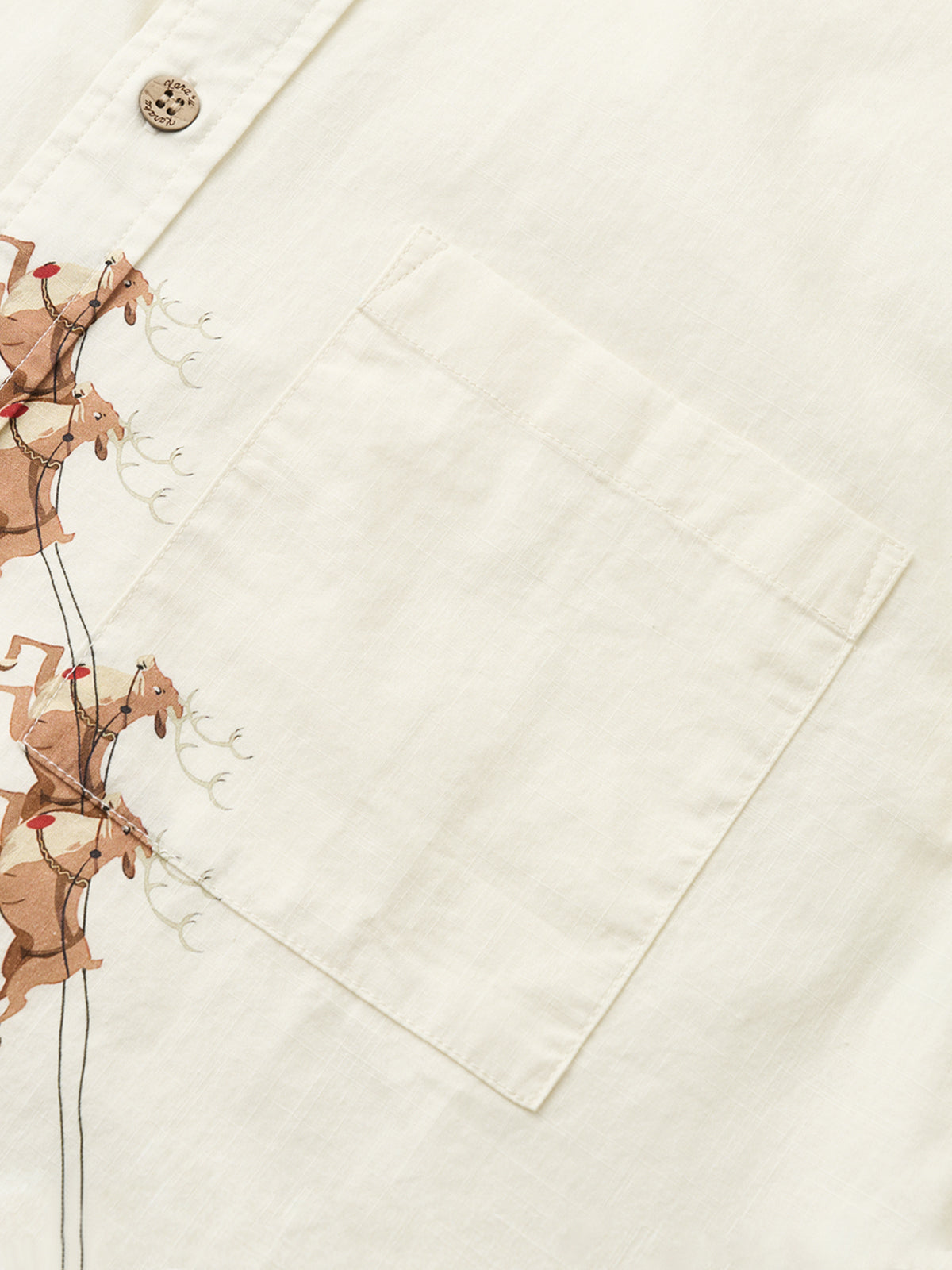��DUSTY RIDE�� Embroidered Cuban-Collar Short Sleeve Shirt
